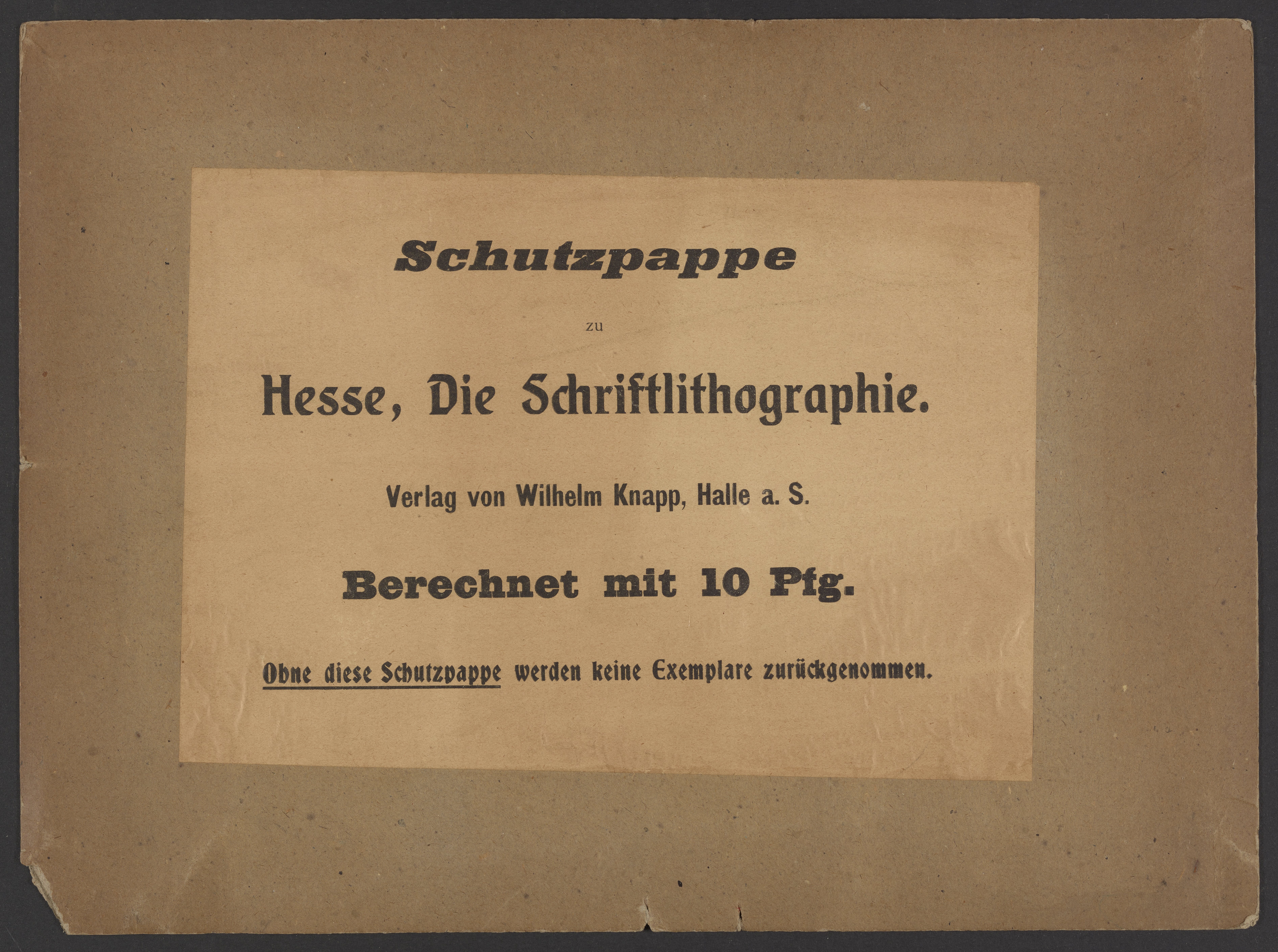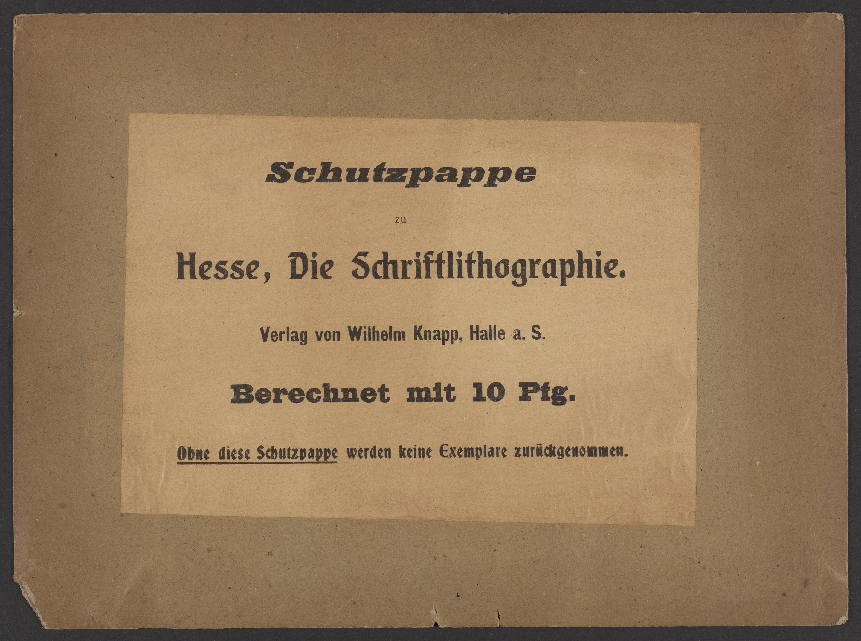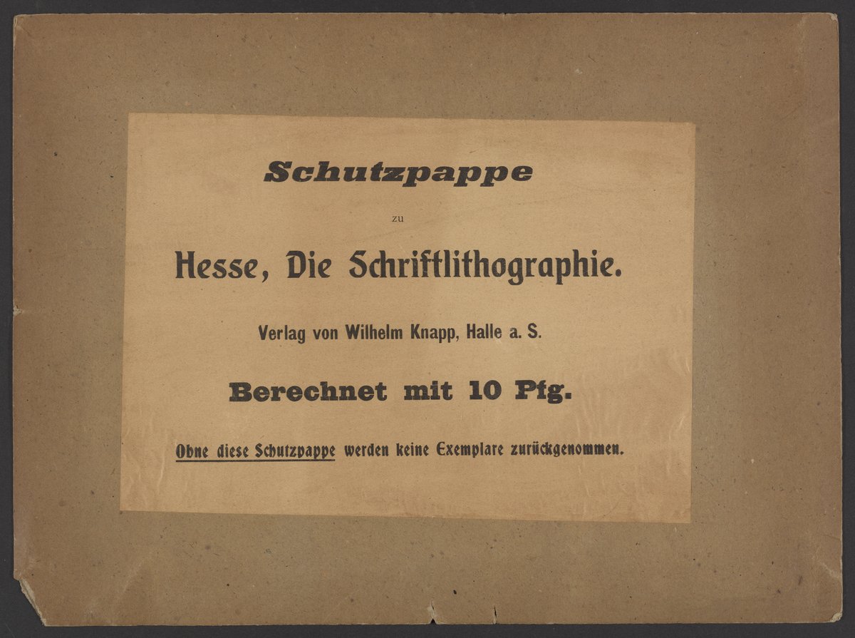 Protective cardboard for Die Schriftlithographie by Friedrich Hesse.
