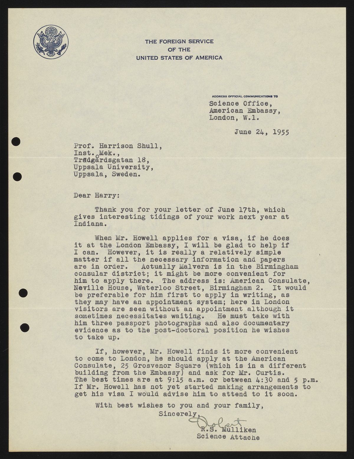 Letter from Robert S. Mulliken to Harrison Shull, 1955