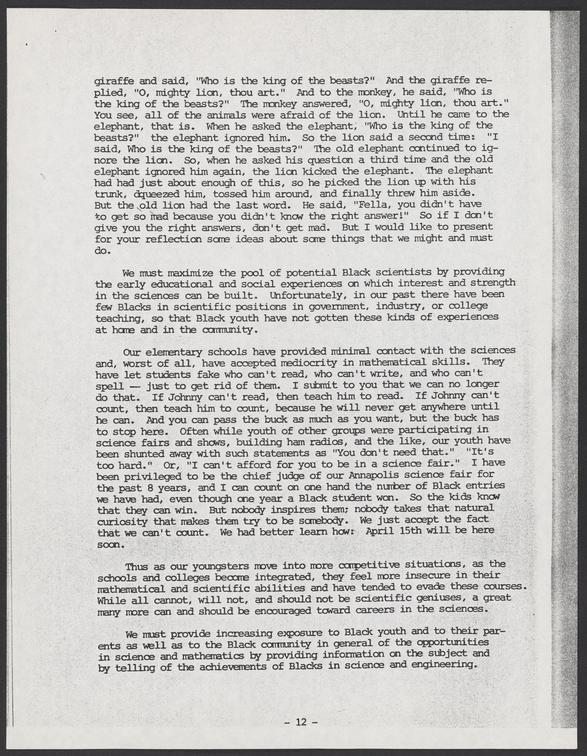 Maximizing Black Potential in Science & Technology: Toward the Year 2000