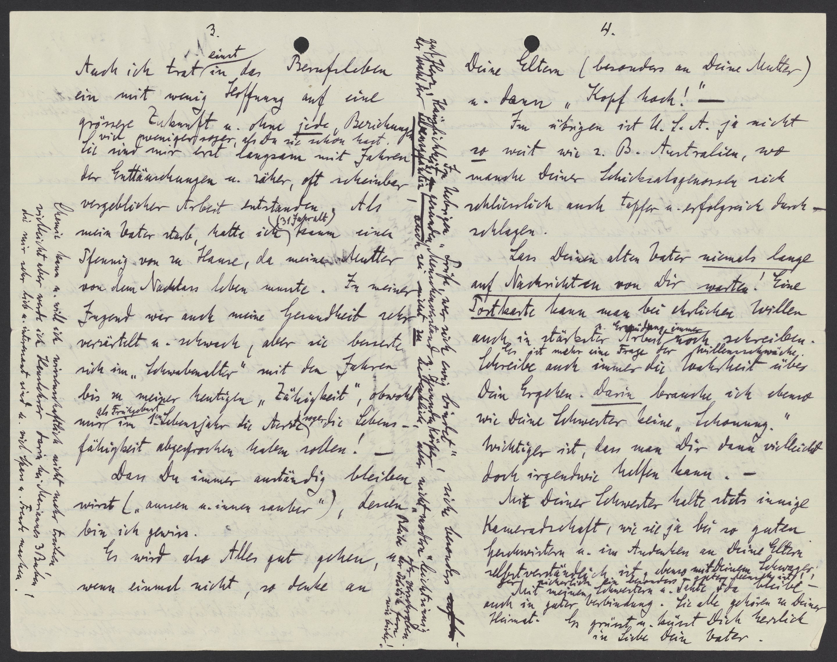 Never keep your old father waiting long for news from you! If you are strong-willed, you can still write a postcard, even if you are working a lot. It's more a question of decreasing willingness. In addition, always write honestly about your well-being. As is the case with your sister, I don’t need any “restraint.” It’s more important that we can help you in some way.
