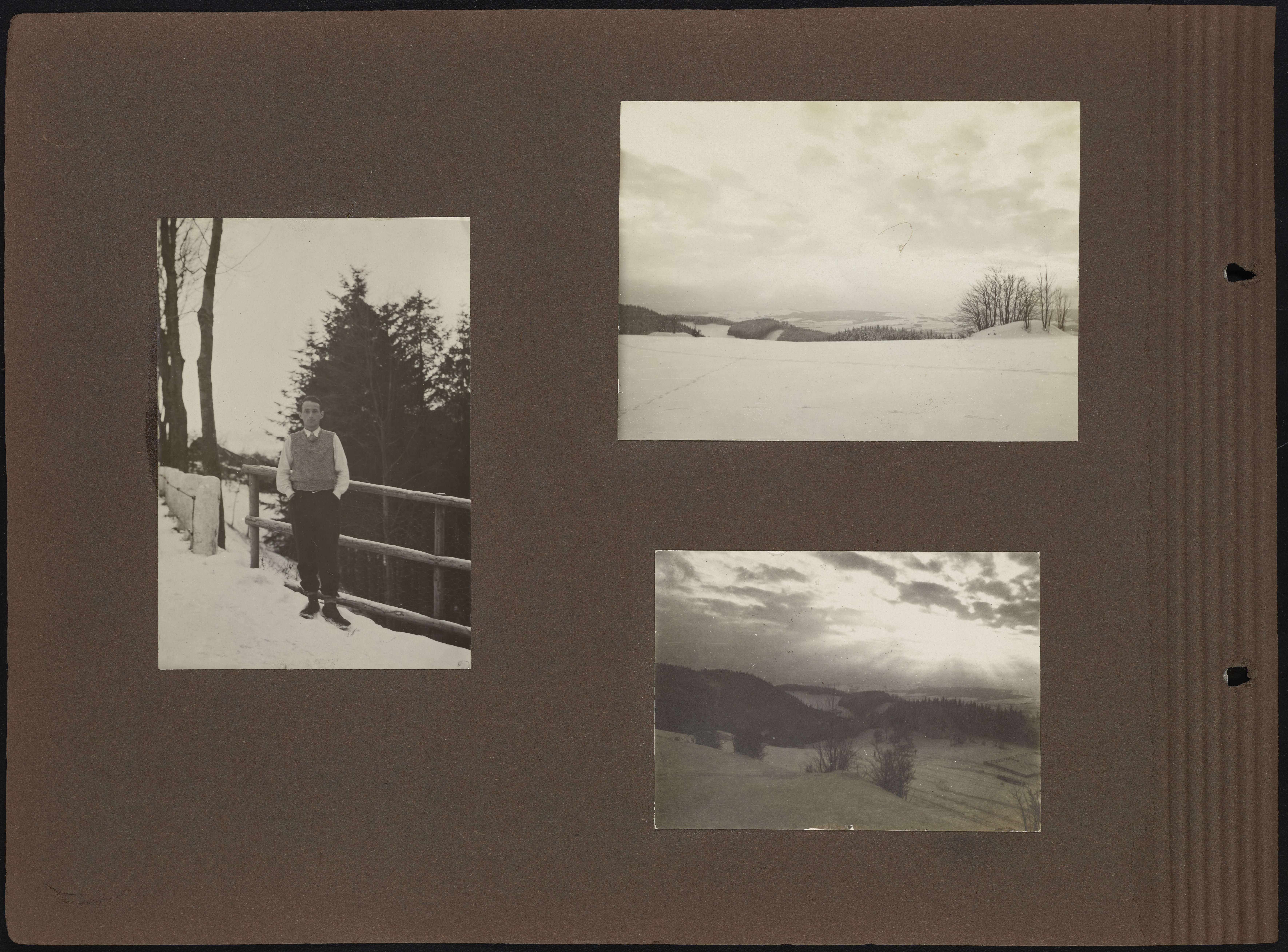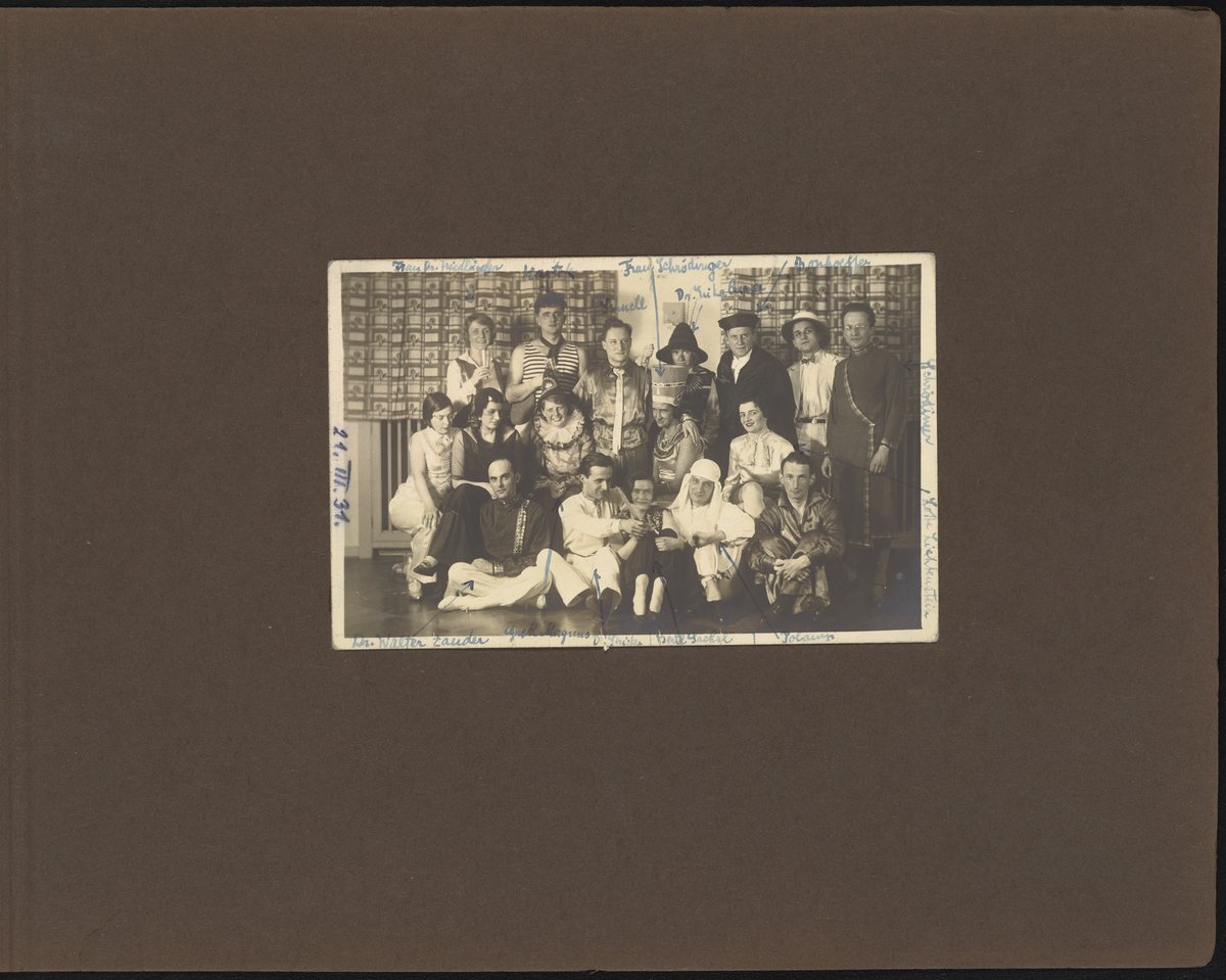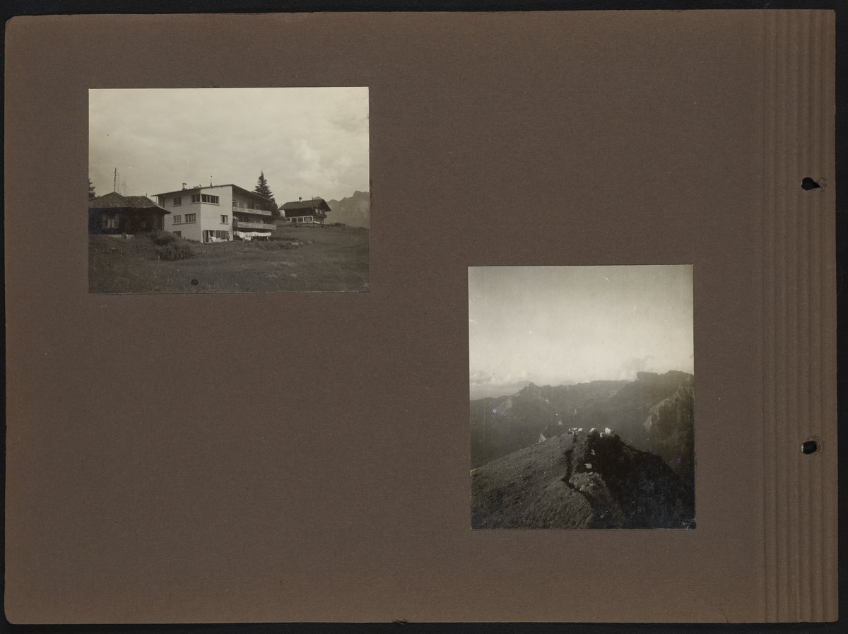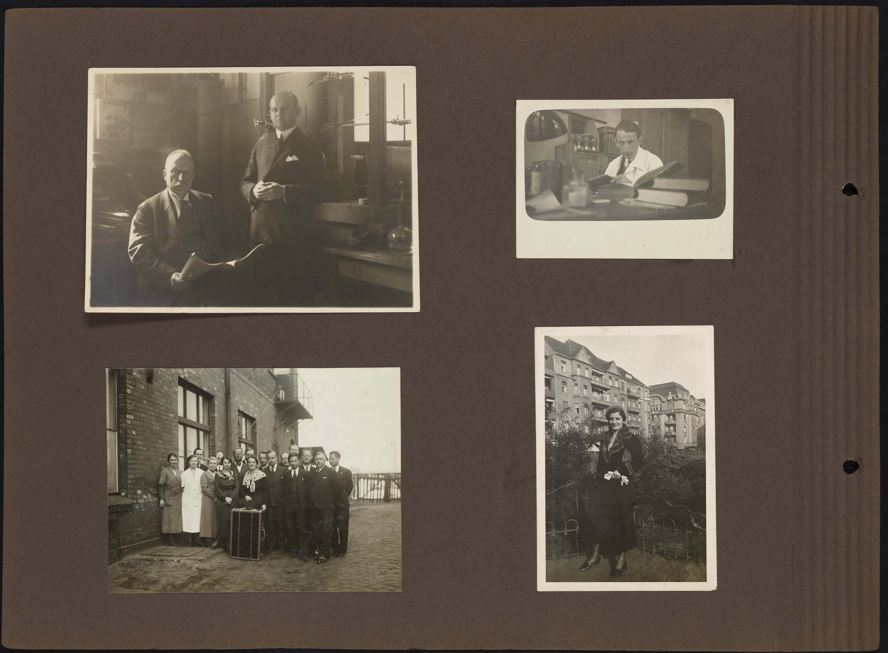Small JPG1200 x 883px — 137 KBLarge JPG2880 x 2120px — 961 KBFull-sized JPG7096 x 5224px — 6.3 MBOriginal fileTIFF — 7096 x 5224px — 106 MBPhotograph album belonging to Max Albert Bredig (1902-1977) and family. The album includes images of chemistry laboratories and apparatus as well as images of Max and his father, Georg Bredig (1868-1944), amongst their respective colleagues and while working in their labs. The majority of the album is filled with photographs of Max and his friends participating in recreational activities such as skiing, hiking, and sailing. On page three, there is a set of images depicting Max's sister, Marianne Bredig (1903-1985), with her father Georg.