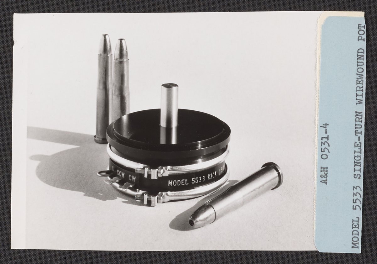 Armstrong & Hess. “Helipot Model 5533 Single-Turn Wirewound Potentiometer with Cartridges,” 1950–1969. Beckman Historical Collection, Box 86. Science History Institute. Philadelphia. https://digital.sciencehistory.org/works/6w924c27k.