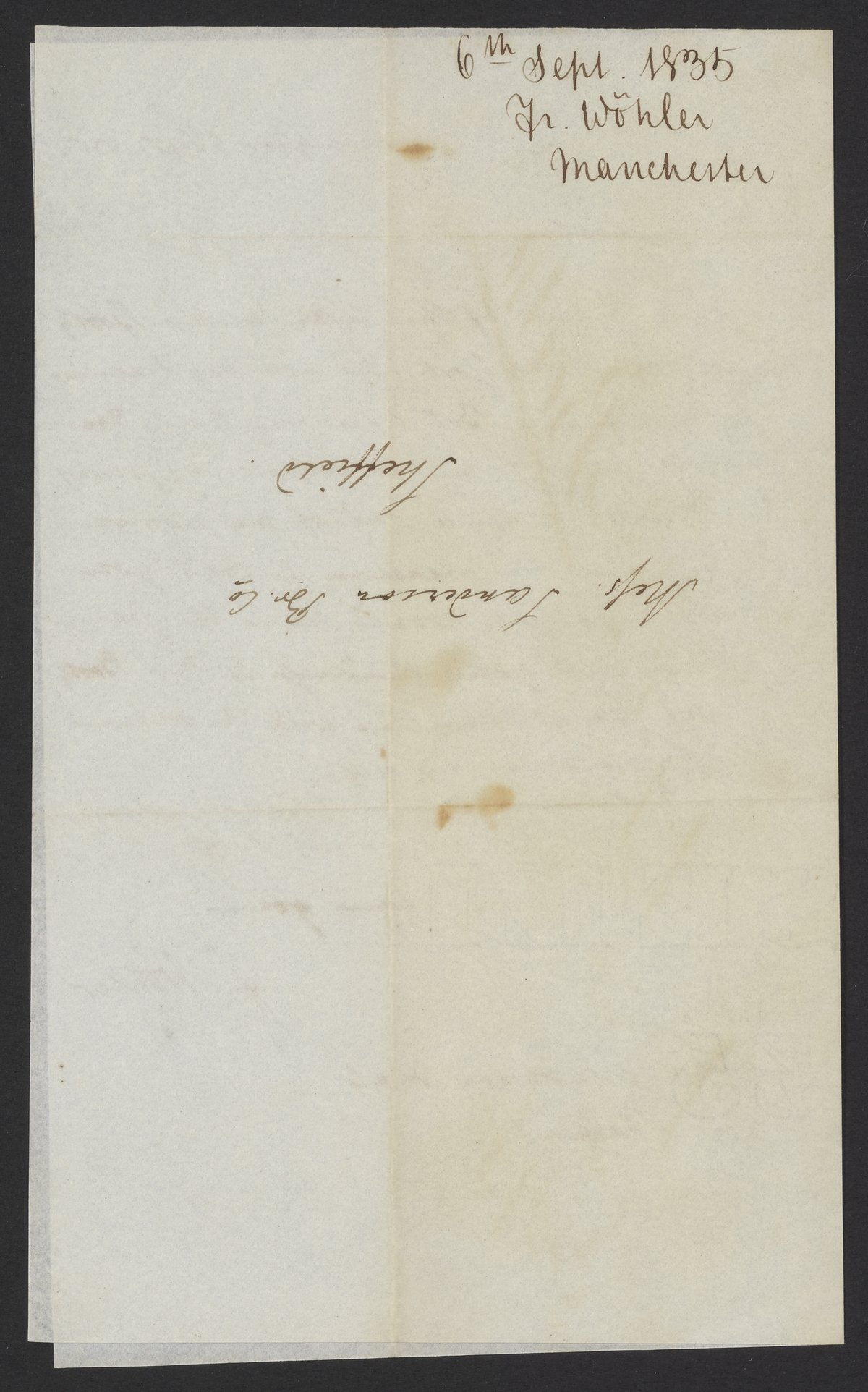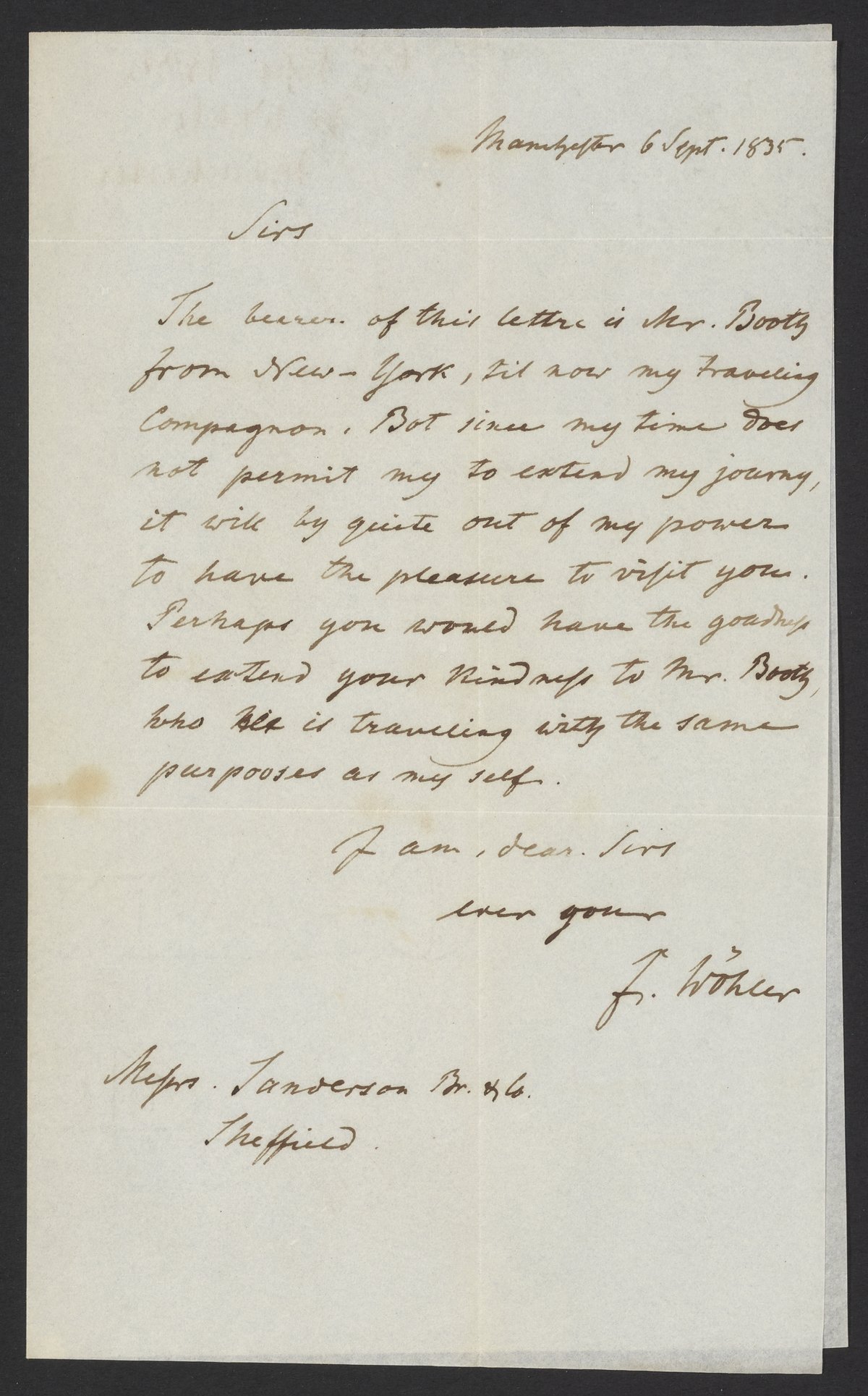 Letter from Friedrich Wöhler to James Curtis Booth, September 6th, 1835