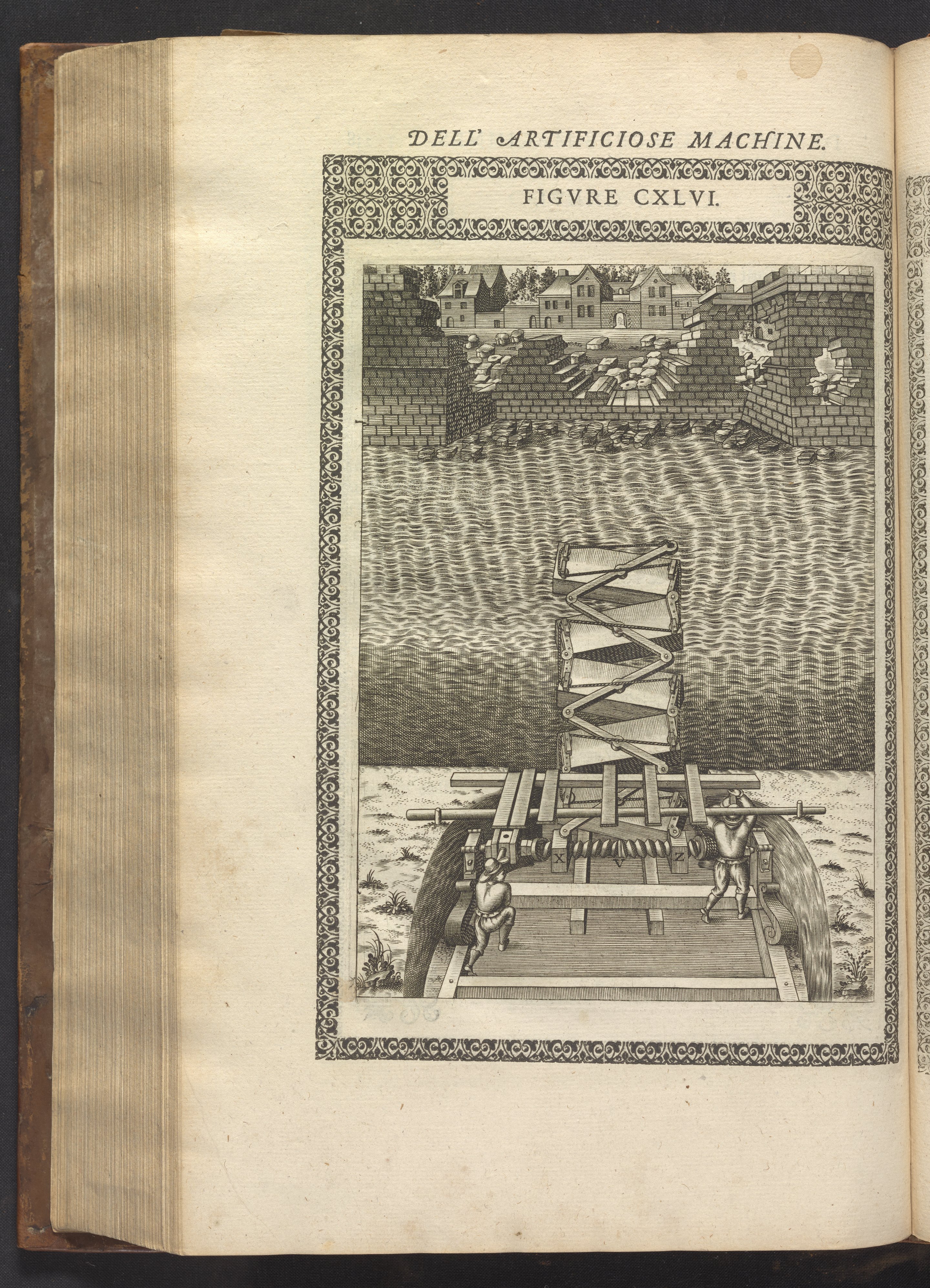 Ramelli, Agostino. “Plate 146: Bridge for Crossing a City or Fortress Water Moat.” In Le Diverse Et Artificiose Machine Del Capitano Agostino Ramelli. Paris, France, 1588. https://digital.sciencehistory.org/works/70795793h.