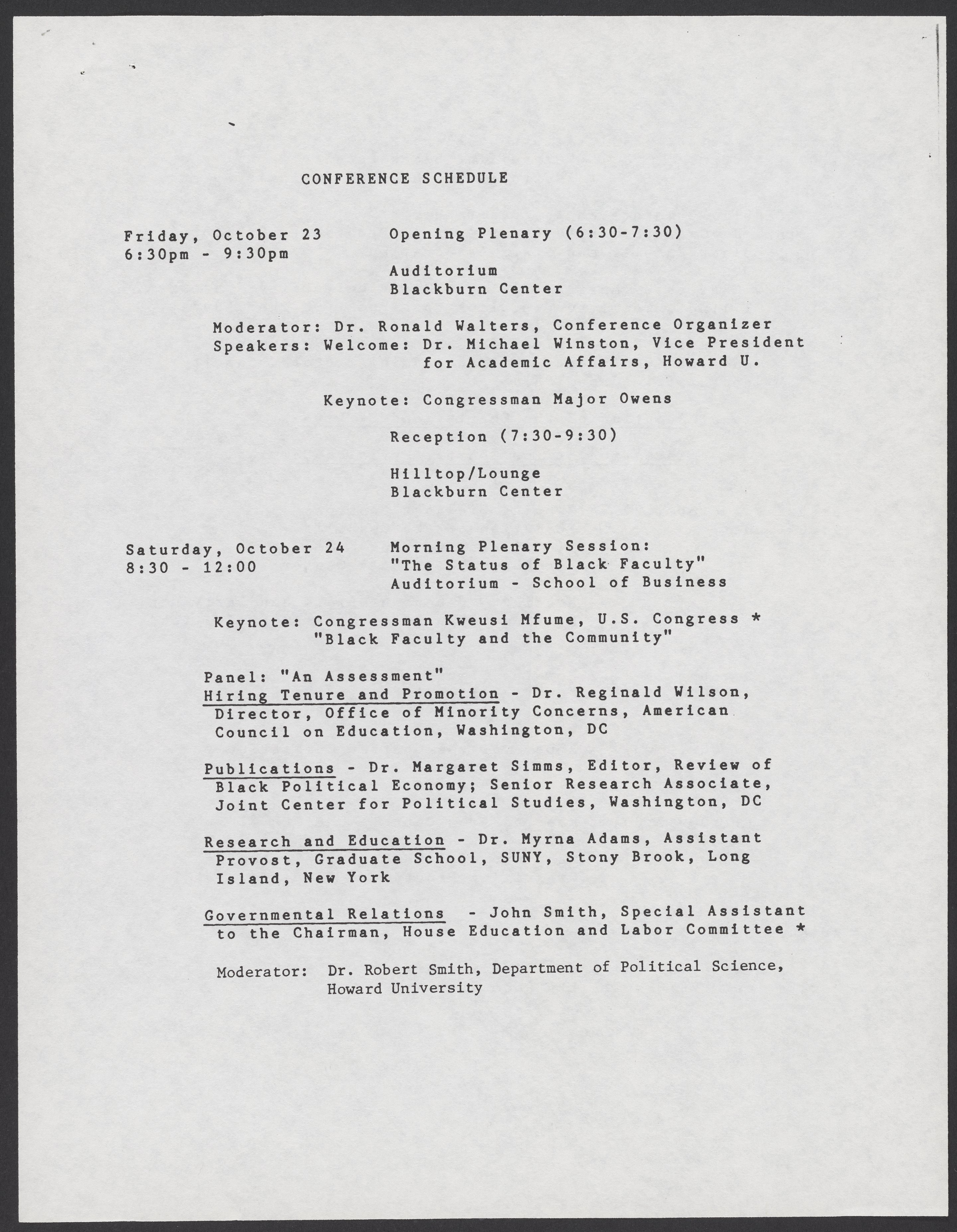Walters, Ronald W., and Robert C. Smith. “National Congress of Black Faculty Conference Information,” 1987. William A. Lester, Jr. Papers, Box 26, Folder 8. Science History Institute. Philadelphia. https://digital.sciencehistory.org/works/70iap41.