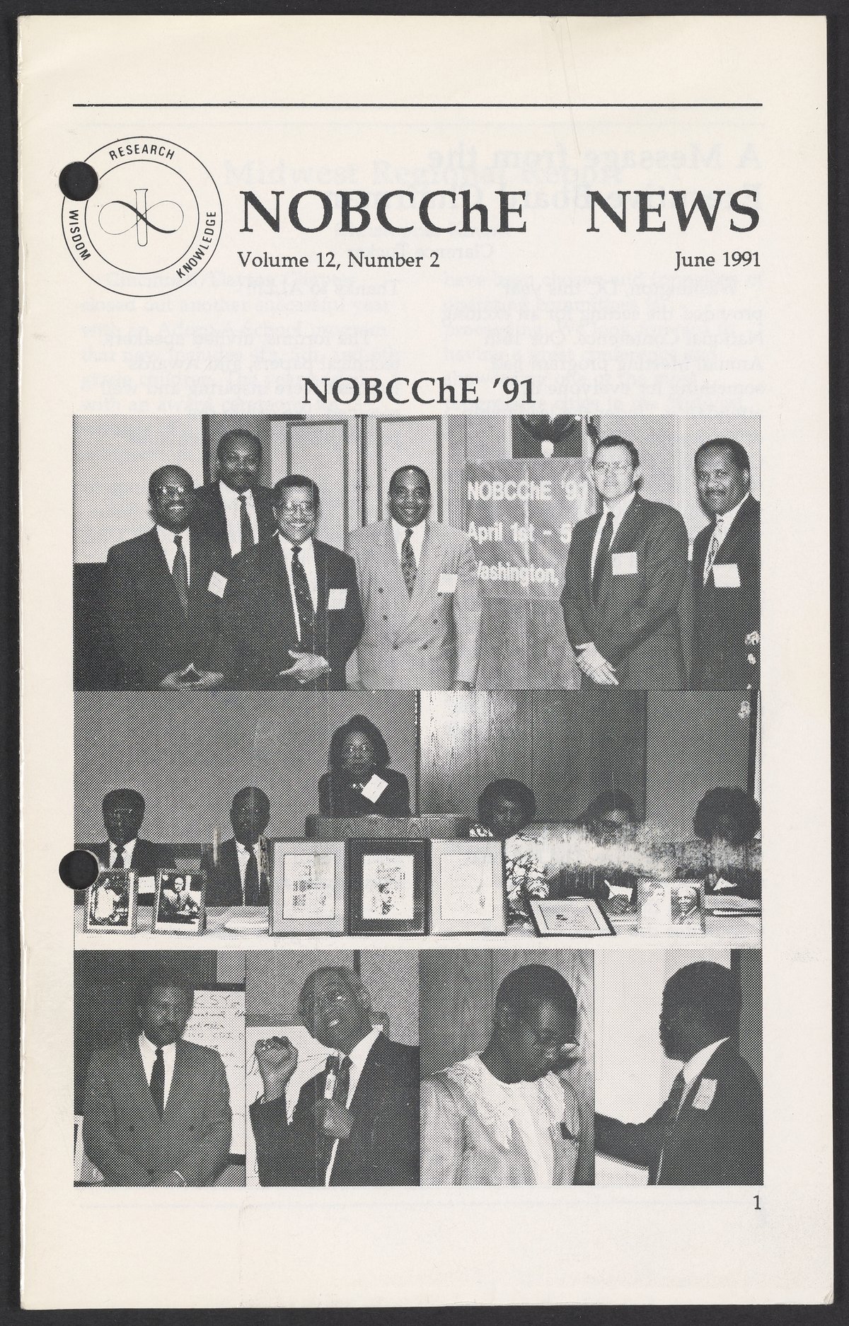 “NOBCChE News, Volume 12, Number 2.” Washington (D.C.): National Organization for Black Chemists and Chemical Engineers, June 1991. William A. Lester, Jr. Papers, Box 46, Folder 26. Science History Institute. Philadelphia. https://digital.sciencehistory.org/works/70p55lr.