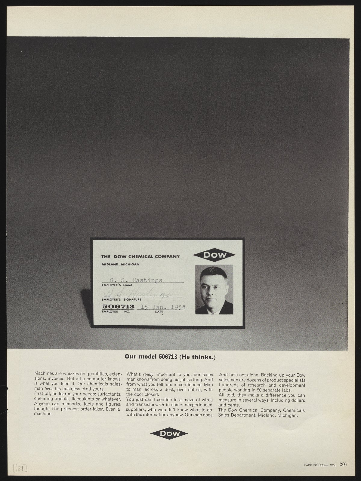 Advertisement for Dow Chemical Sales Department