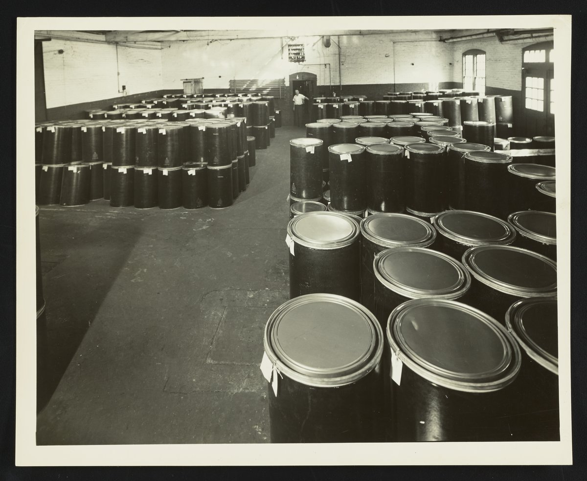 “Shipping and Storage Room at Althouse Chemical Company Plant,” 1952. Photographs from the Records of the Althouse, Bates, and Crompton Chemical Companies, Box 1. Science History Institute. Philadelphia. https://digital.sciencehistory.org/works/76537136c.