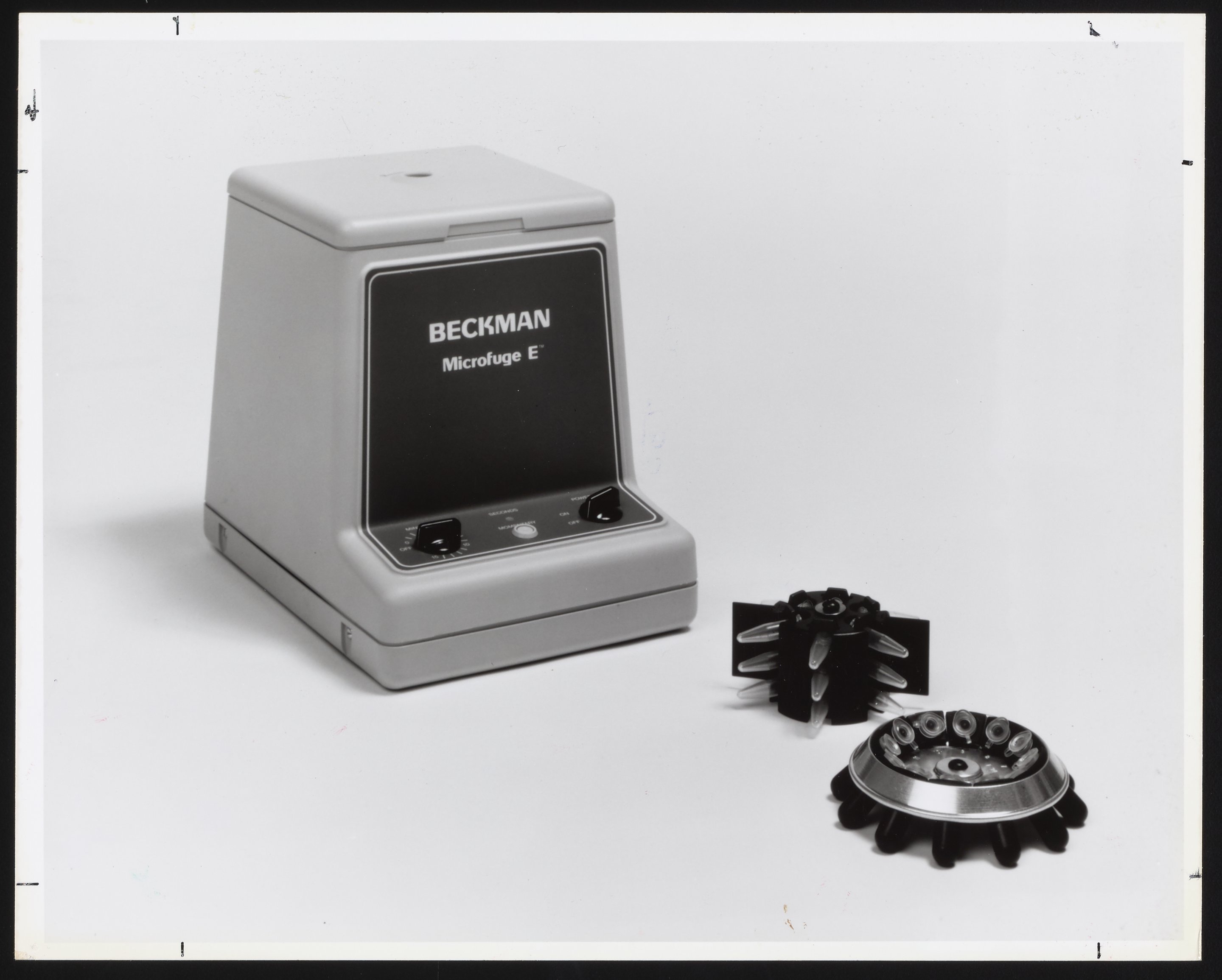 “Beckman Microfuge E,” 1980–1989. Beckman Historical Collection, Box 82. Science History Institute. Philadelphia. https://digital.sciencehistory.org/works/76537145b.