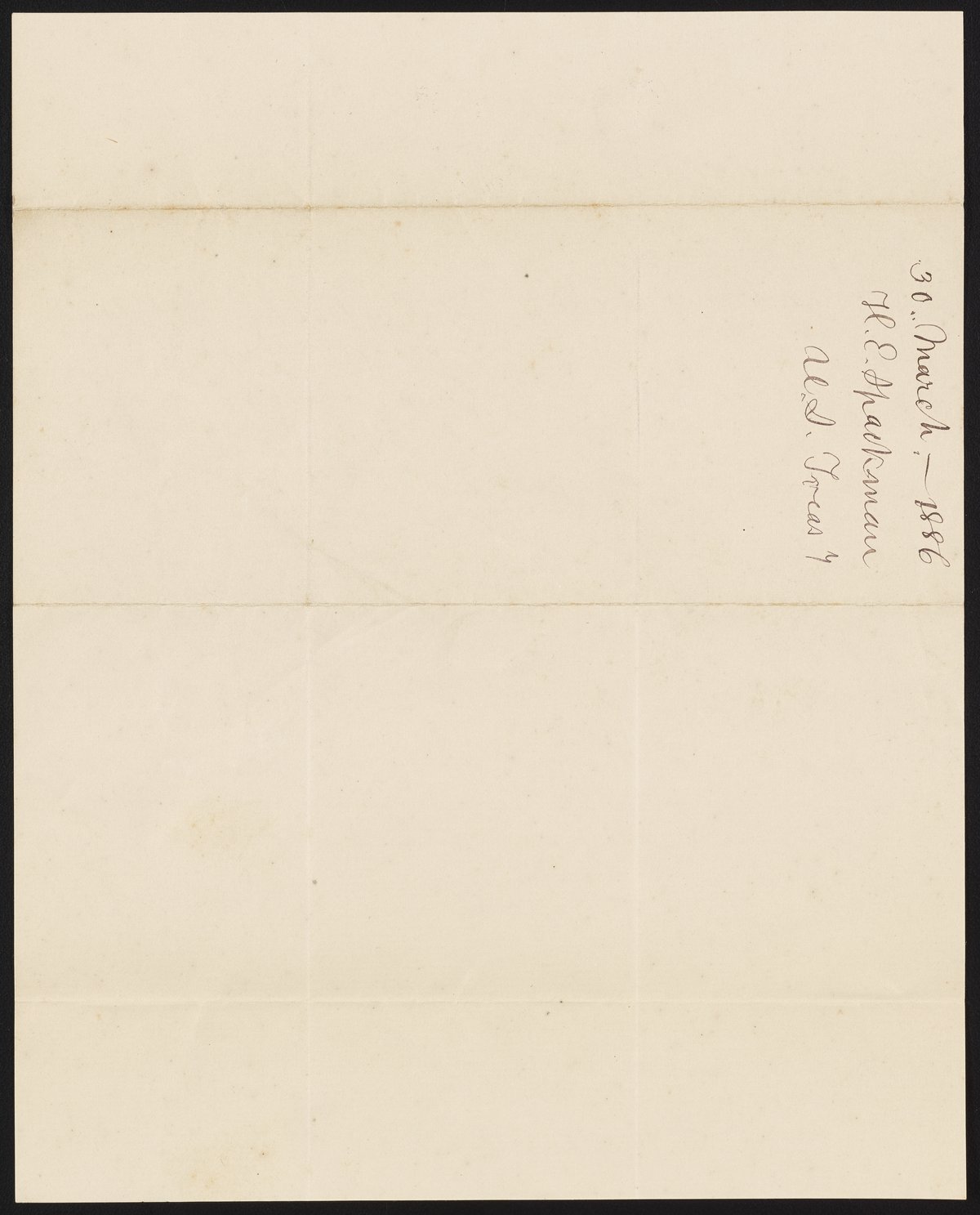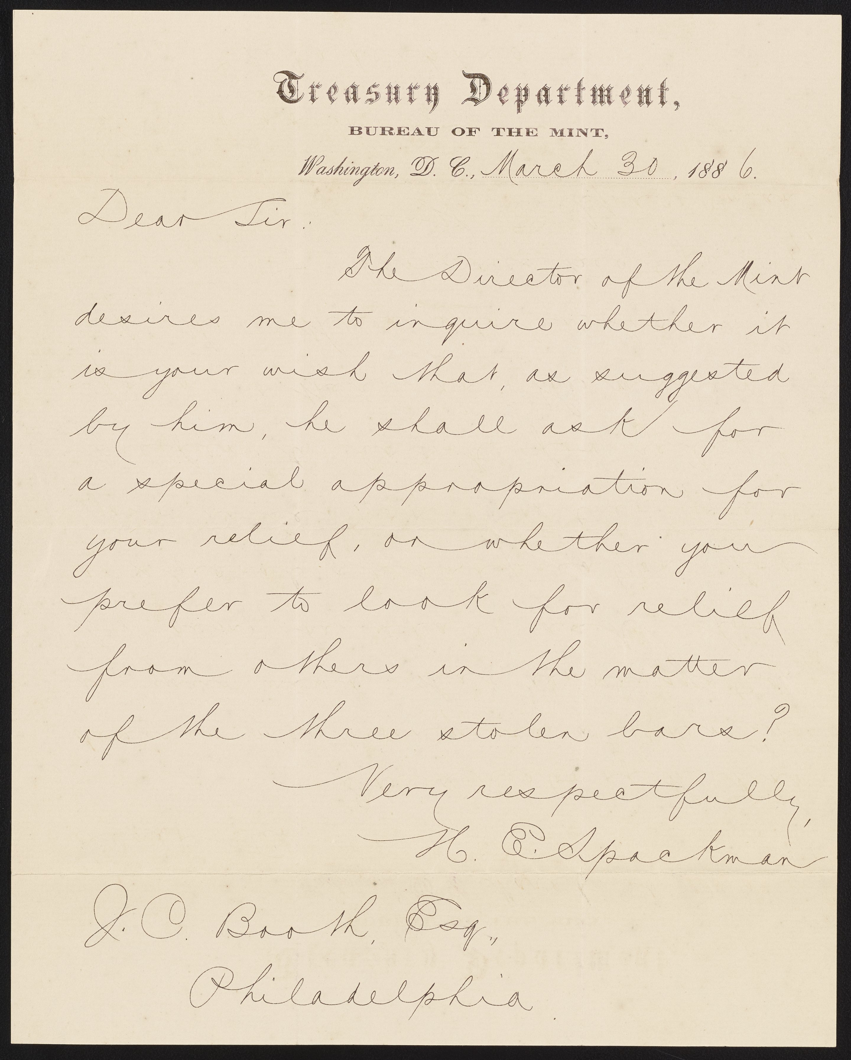 Letter from H.E. Spackman to James Curtis Booth, March 30, 1886