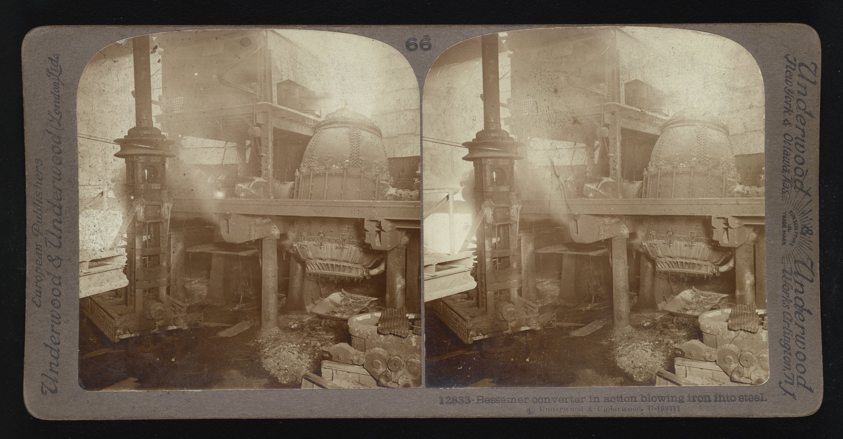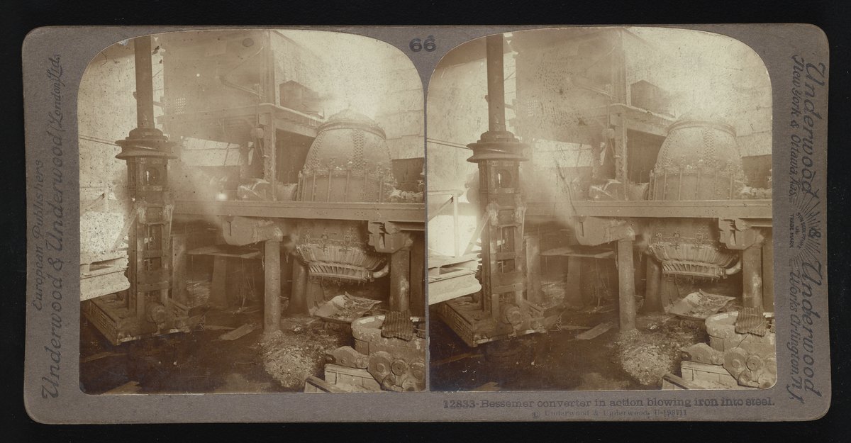 Bessemer converter in action blowing iron into steel