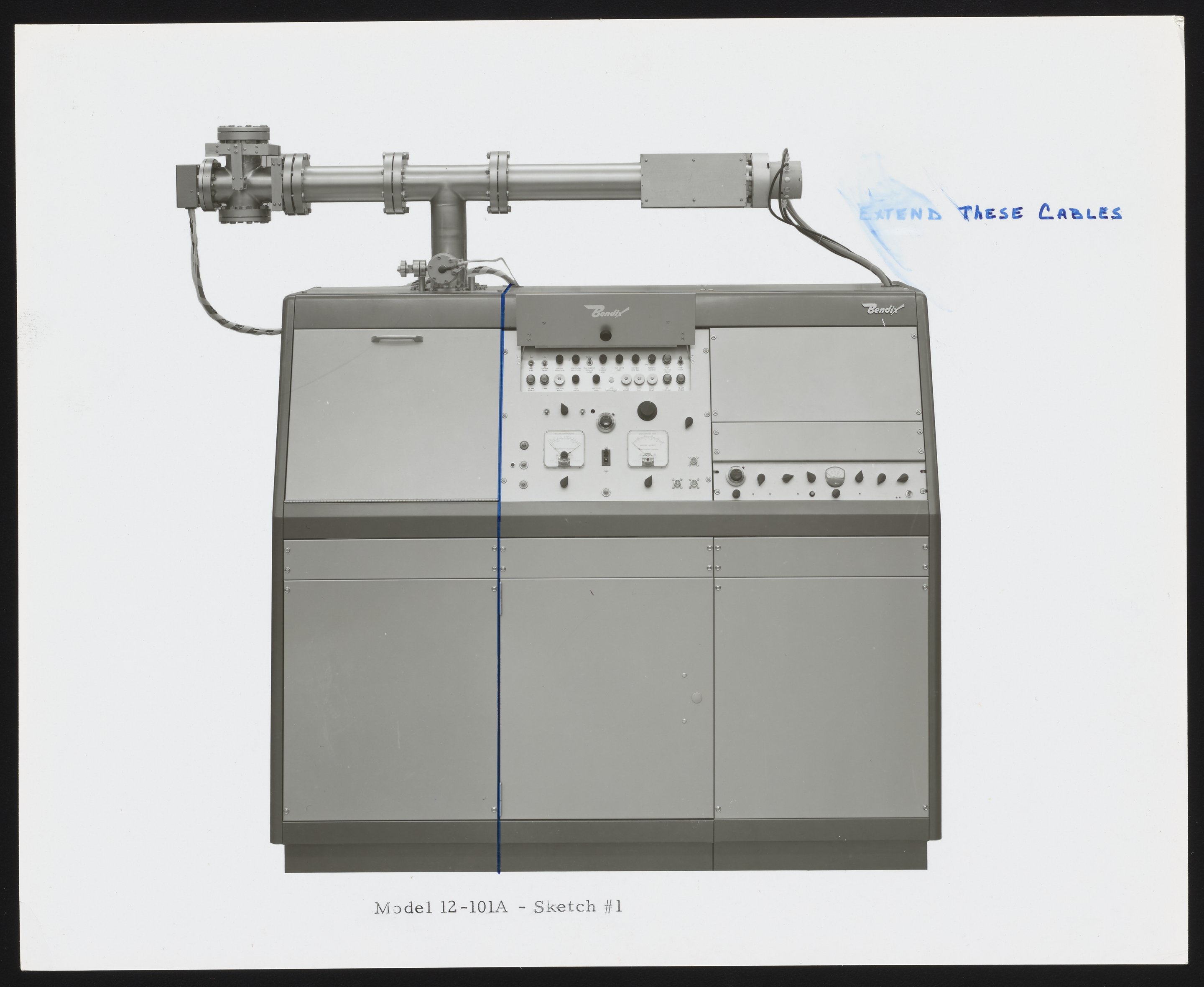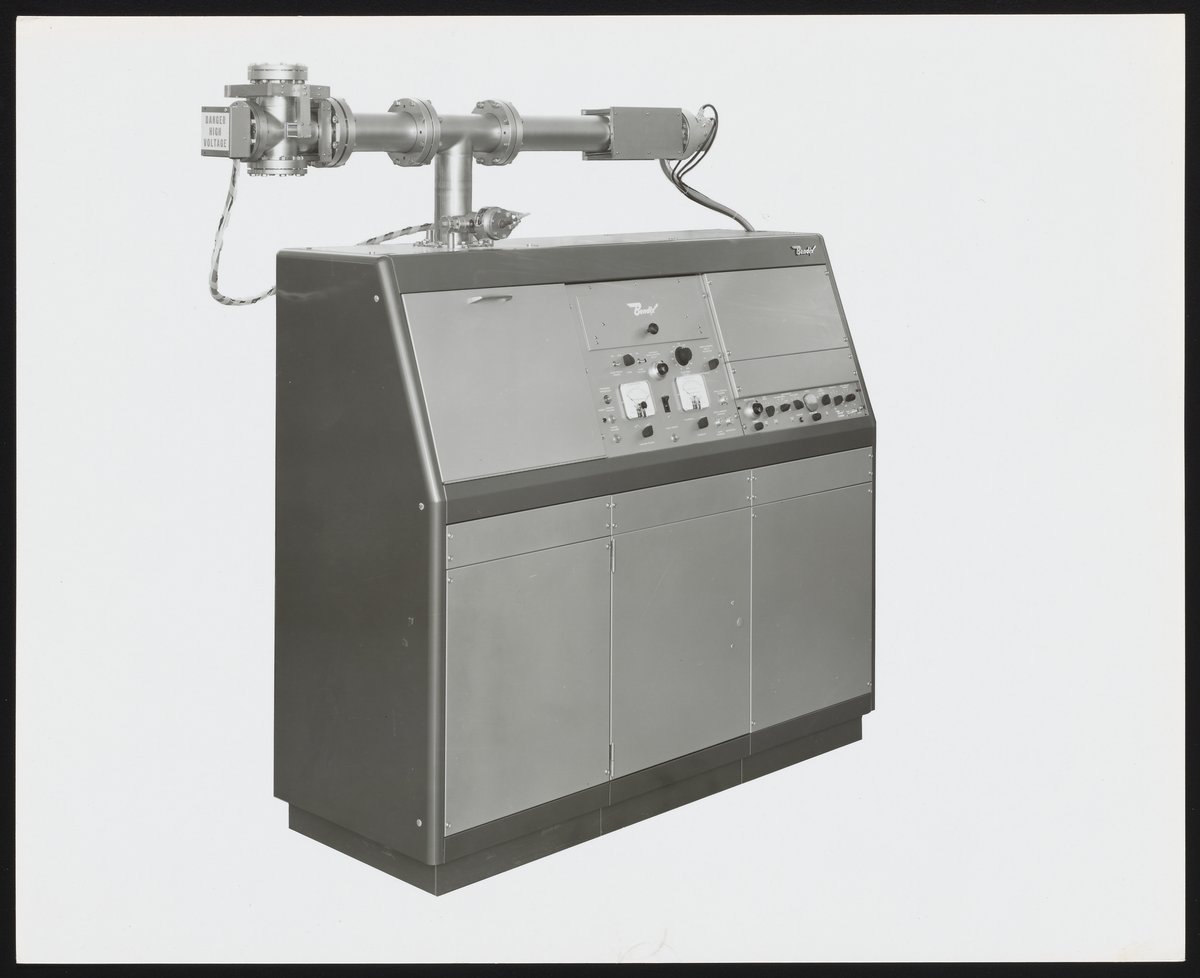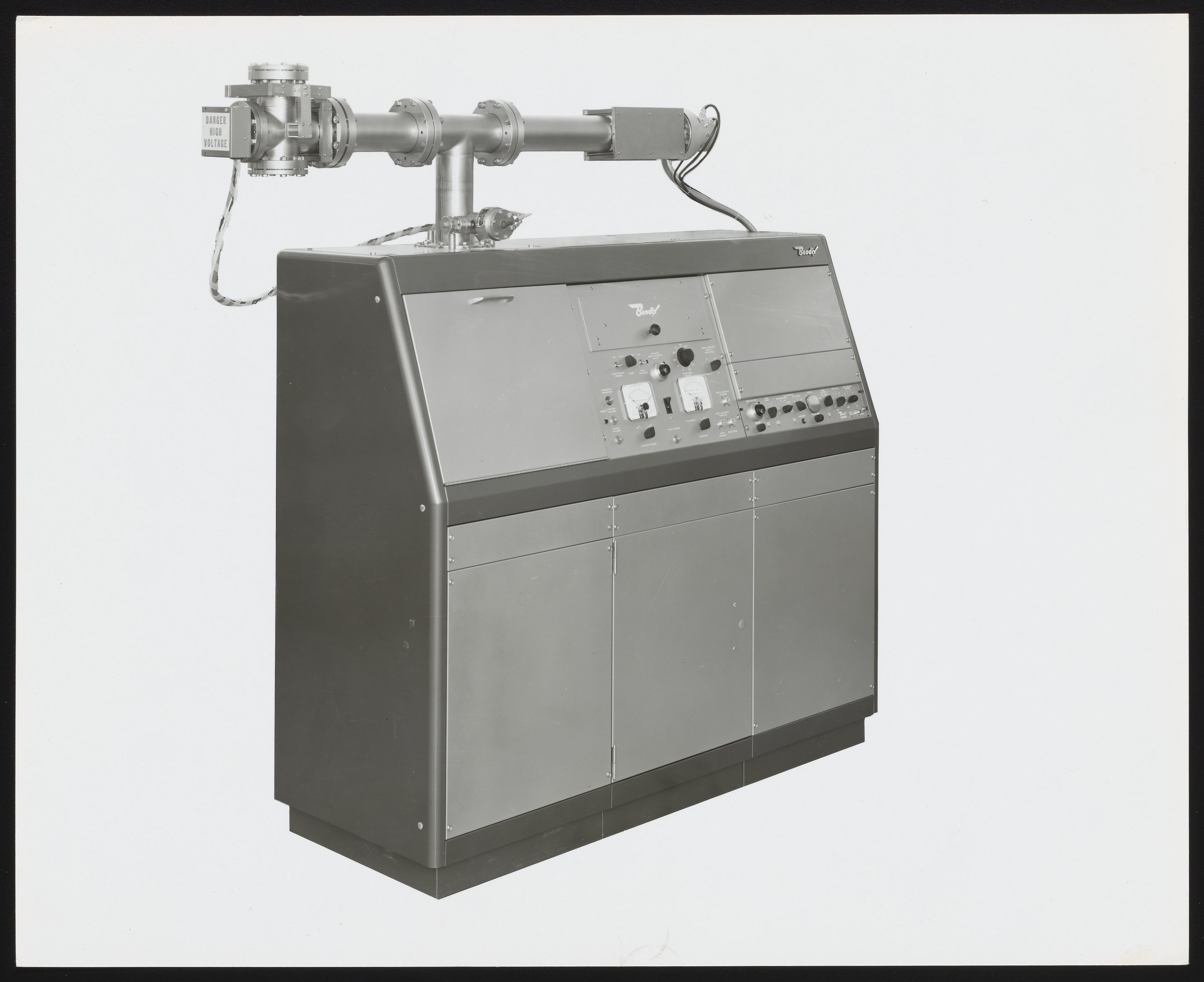 Small JPG1200 x 978px — 87.3 KBLarge JPG2880 x 2348px — 348 KBFull-sized JPG4244 x 3460px — 692 KBOriginal fileTIFF — 4244 x 3460px — 42.0 MBTwo views of a Bendix Model 12-101A Time-of-Flight Mass Spectrometer, with view of the ion source, vacuum system, and assorted control panels and gauges. The Time-of-Flight Mass Spectrometer (TOFMS) was the flagship analytical instrument of the Bendix Corporation.