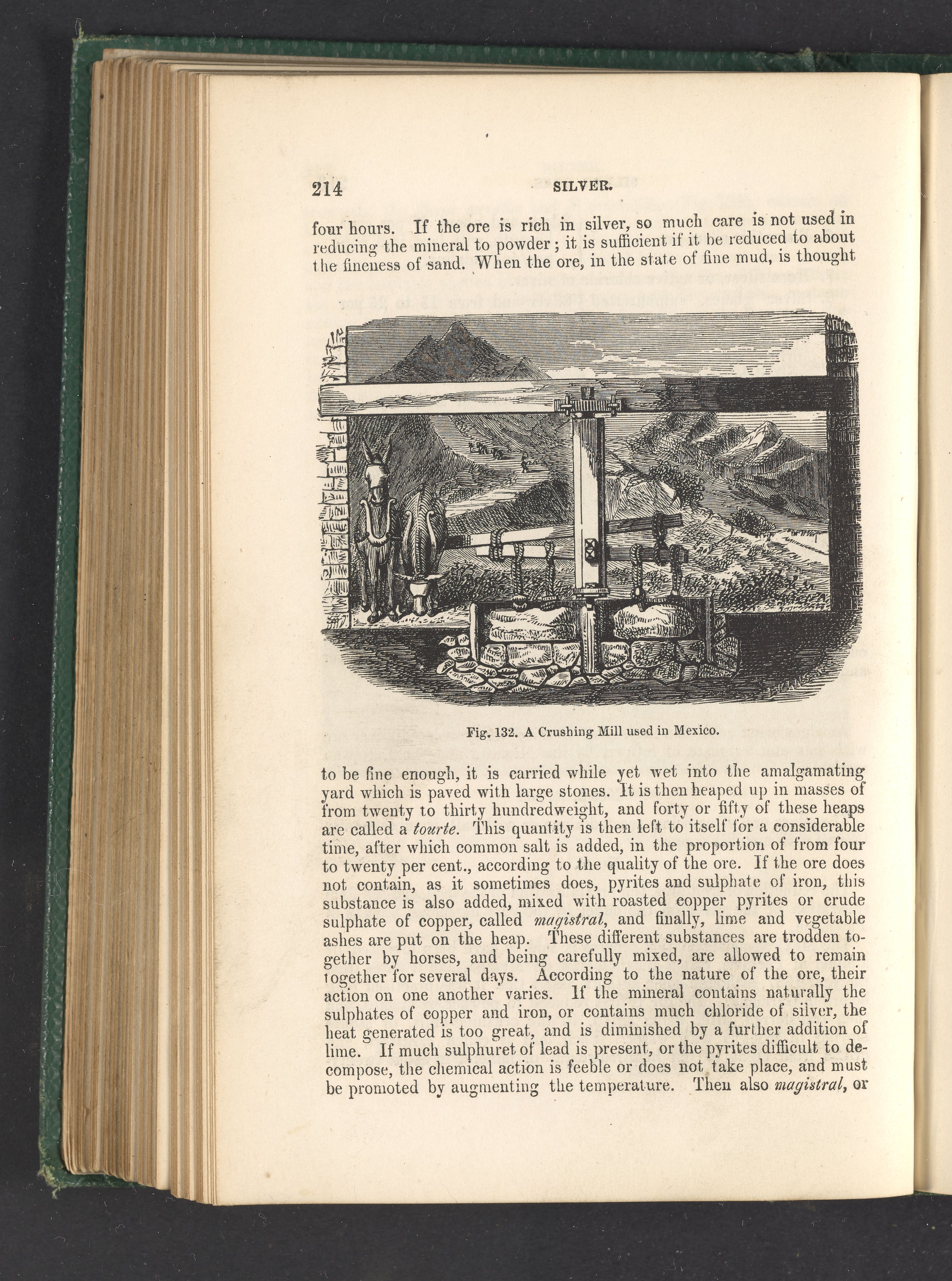 Pepper, John Henry. “Figure 132. A Crushing Mill Used in Mexico.” The Playbook of Metals : Including Personal Narratives of Visits to Coal, Lead, Copper, and Tin Mines; with a Large Number of Interesting Experiments Relating to Alchemy and the Chemistry of Fifty Metallic Elements. London, England, 1862. https://digital.sciencehistory.org/works/7egtann.