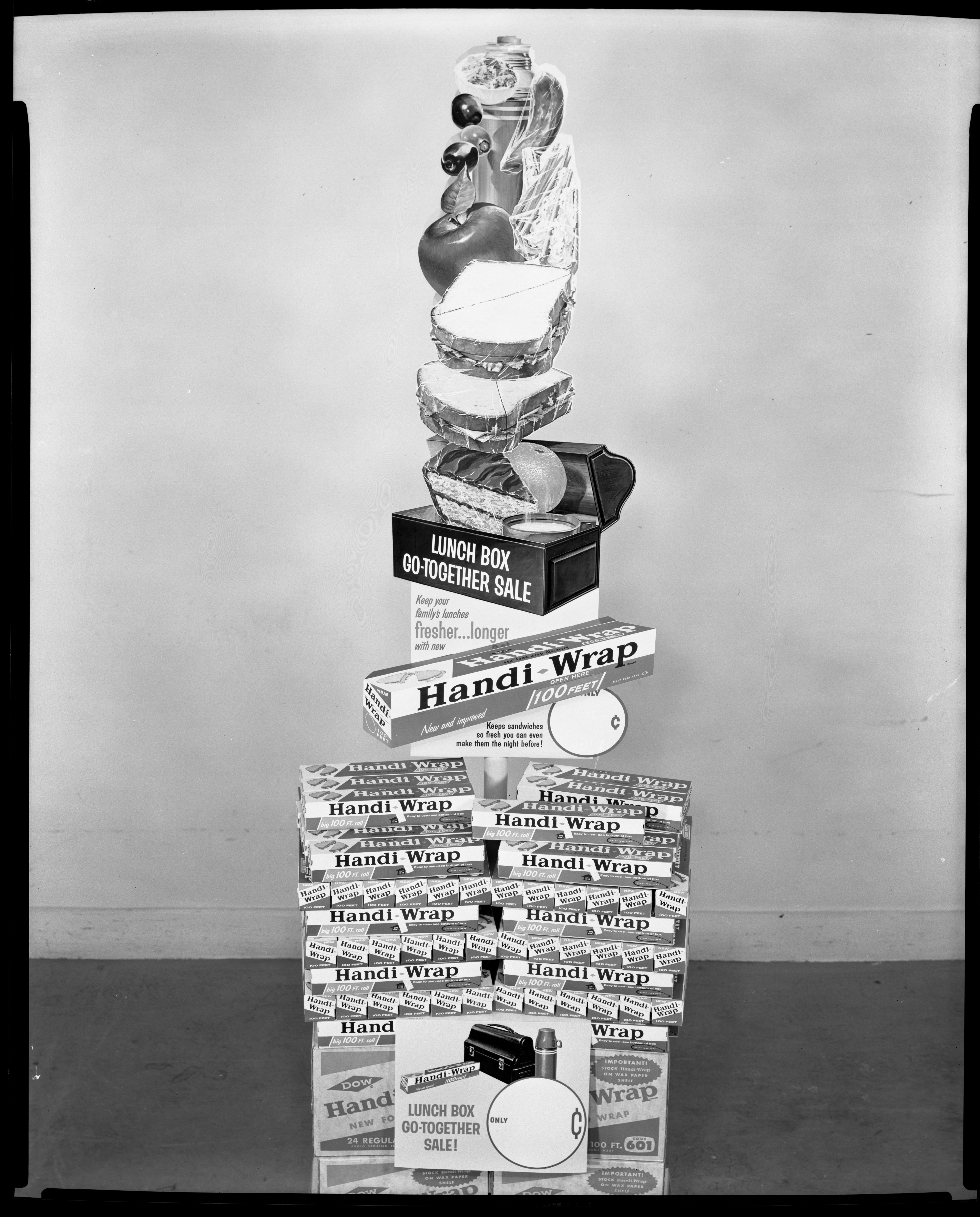 Dow Chemical Company. “Handi-Wrap Lunch Box Go-Together Sale Display,” 1964. Dow Chemical Company Historical Image Collection, Box 2, Folder Products--Handiwrap. Science History Institute. Philadelphia. https://digital.sciencehistory.org/works/7h149p88r.
