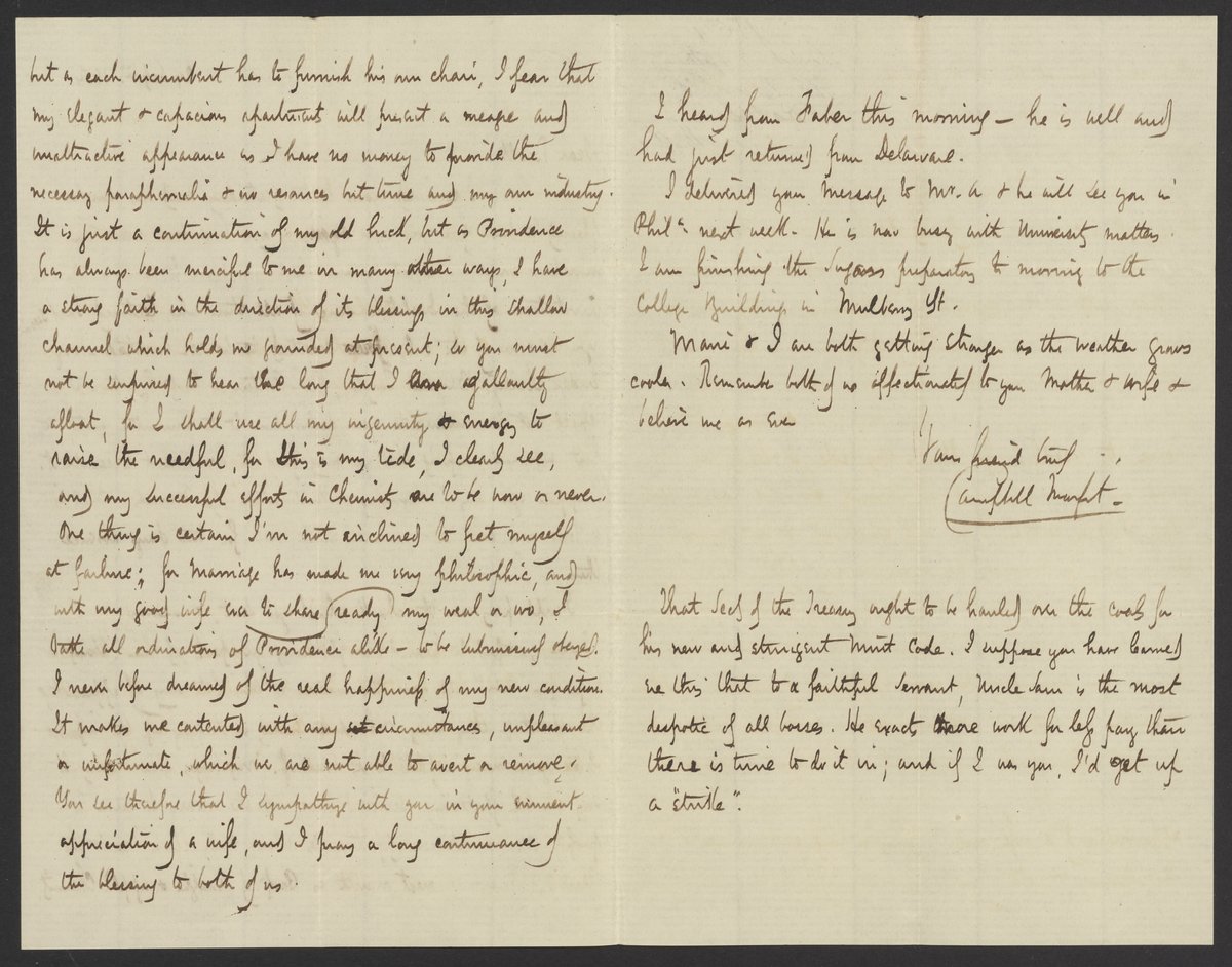 Small JPG1200 x 1808px — 305 KBFull-sized JPG2154 x 3246px — 756 KBOriginal fileTIFF — 2154 x 3246px — 20.1 MBCampbell Morfit (1820-1897), a distinguished chemist and co-editor with James Curtis Booth (1810-1888) of the Encyclopedia of Chemistry (1850), writes on the vicissitudes of being a new professor.