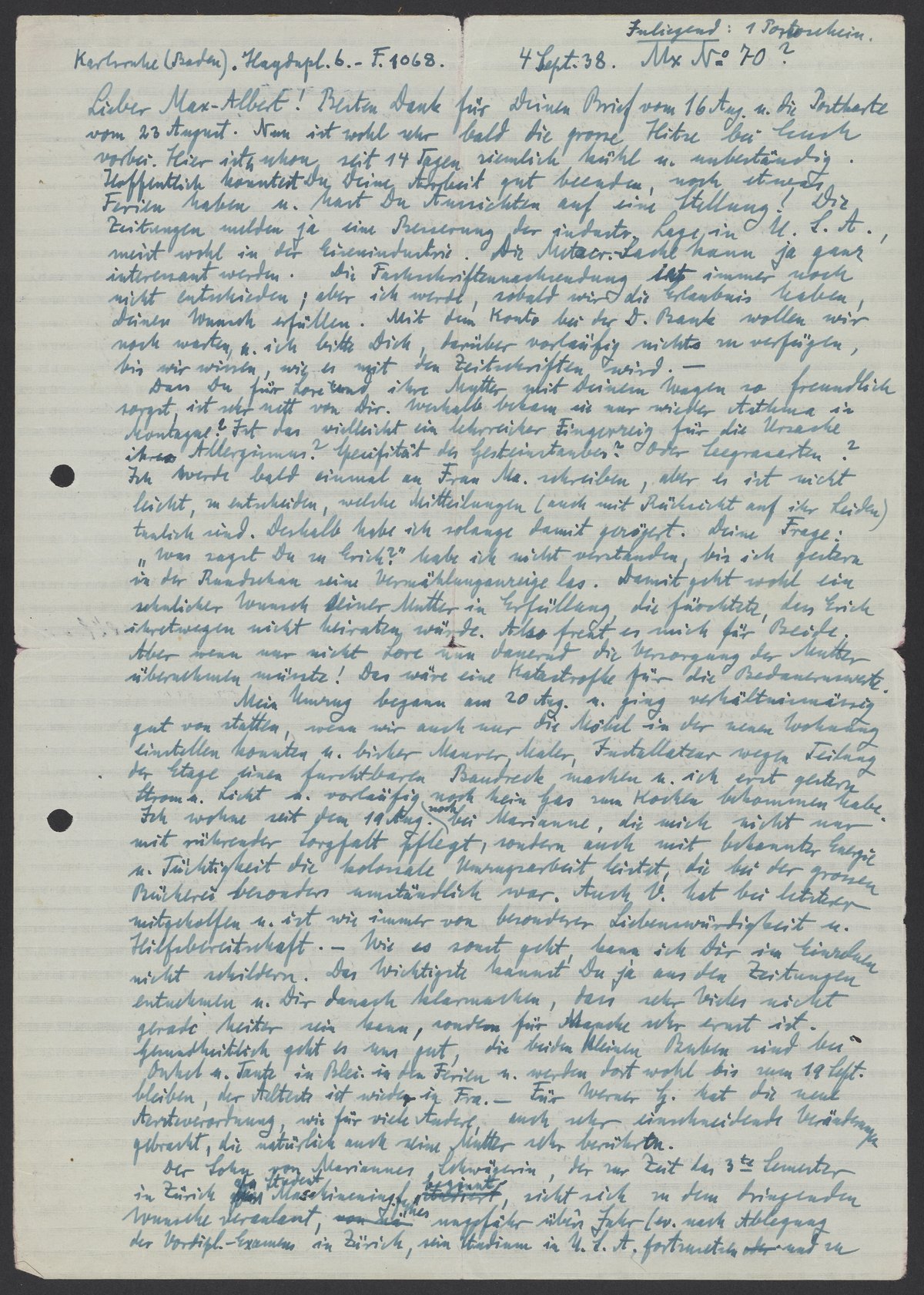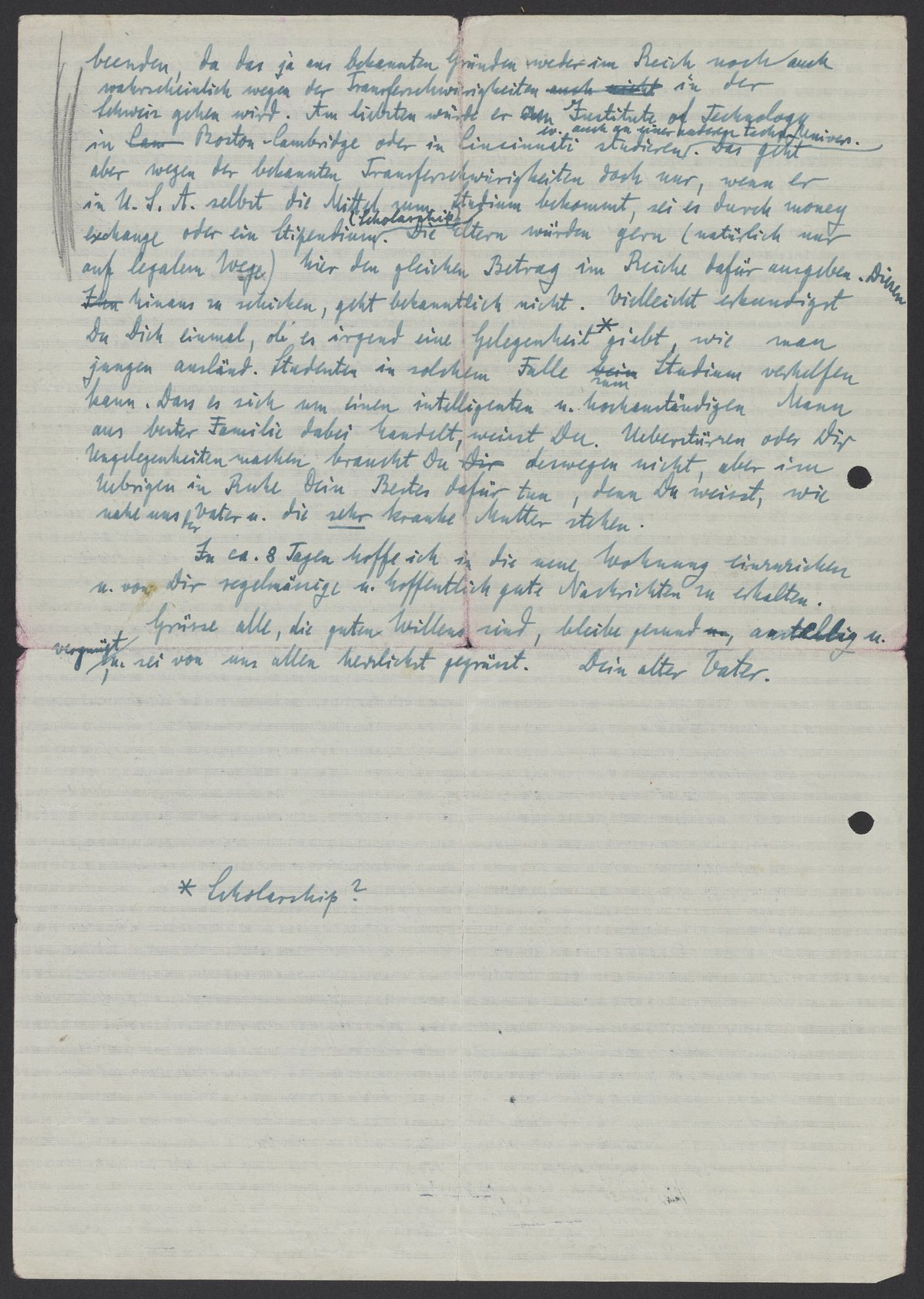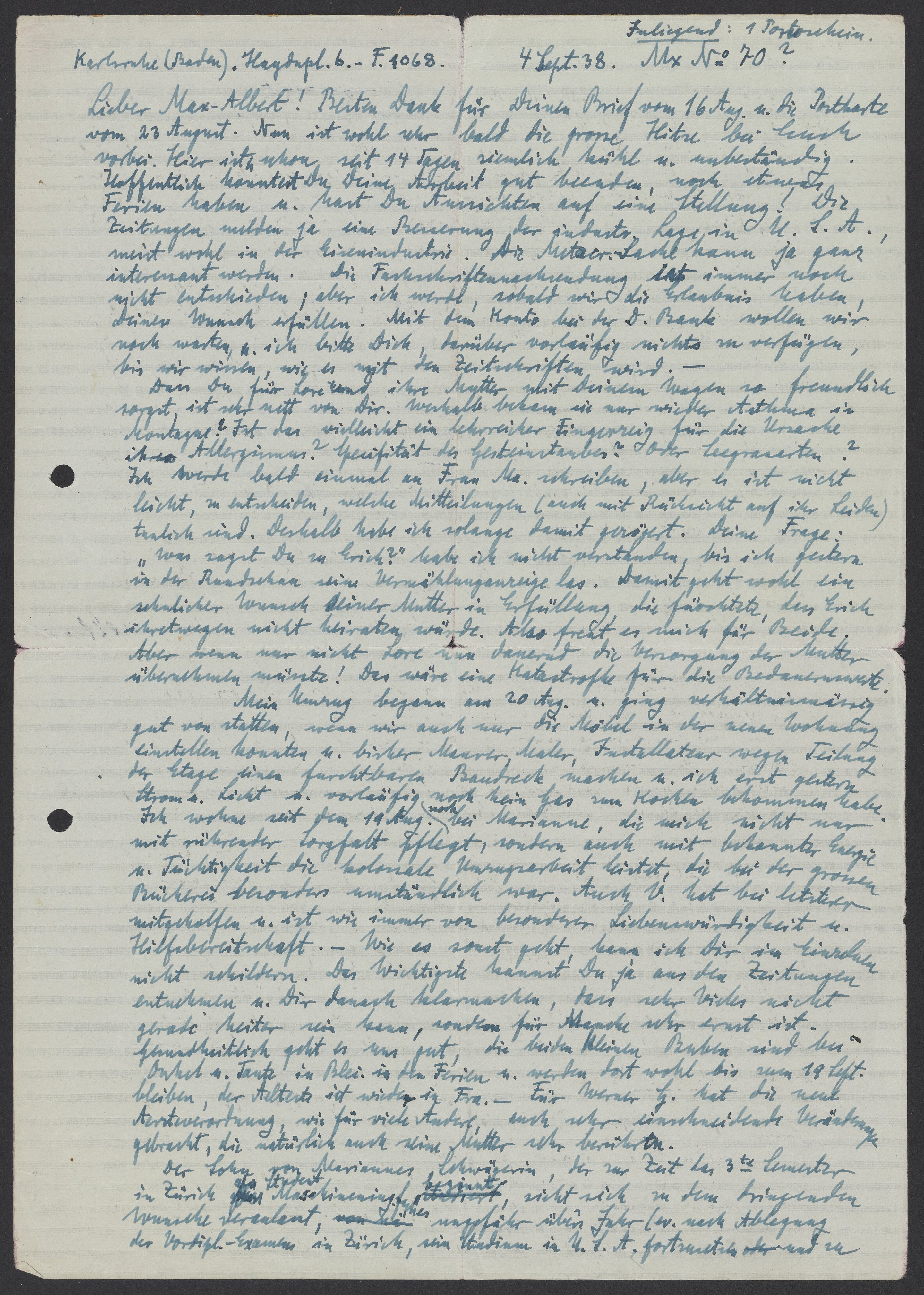 Letter from Georg Bredig to Max Bredig, September 4, 1938