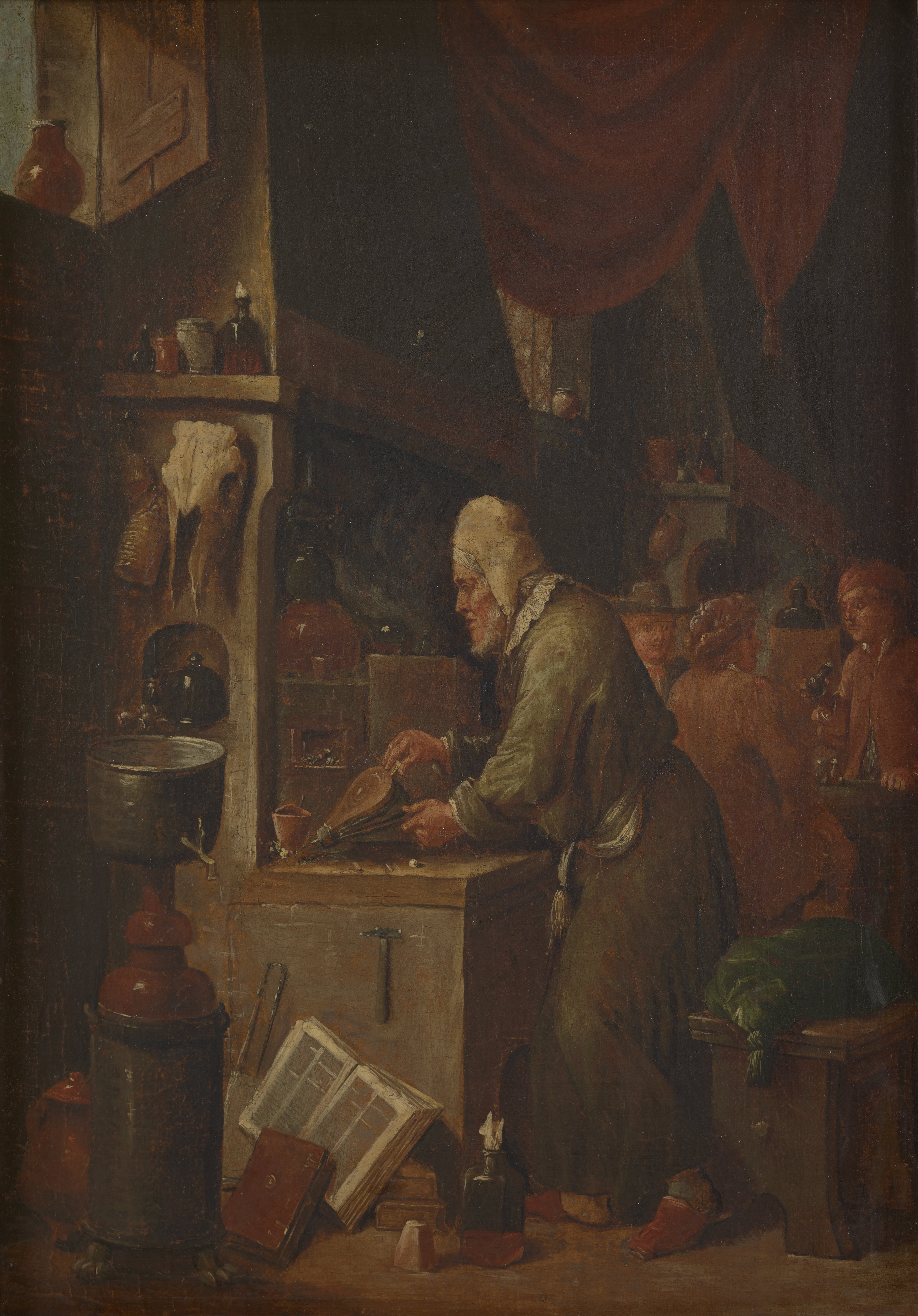 The Alchemist. Oil paint (paint), canvas (textile material), 1600–1699. Science History Institute. Philadelphia. https://digital.sciencehistory.org/works/7m01bm932.
