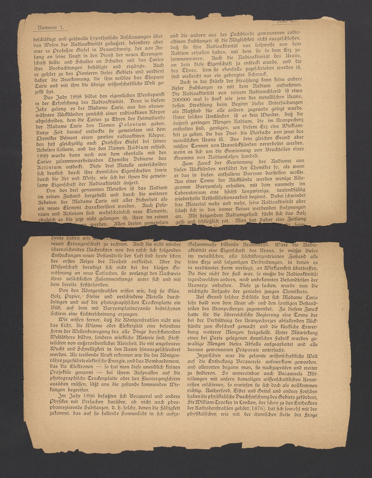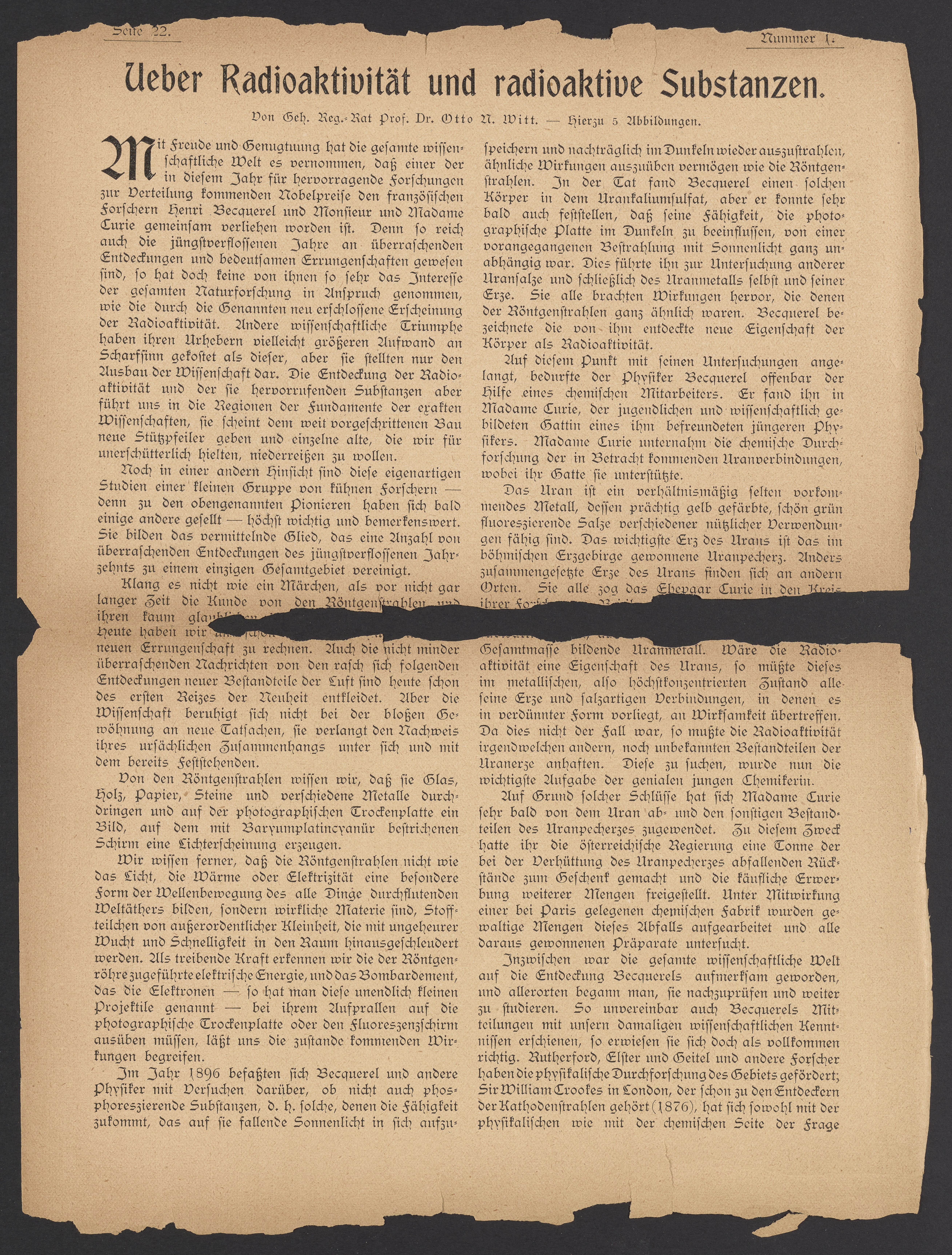 Witt, Otto N. (Otto Nicolaus). “Ueber Radioaktivität Und Radioaktive Substanzen,” circa 1900. Papers of Georg and Max Bredig, Box 4, Folder 14. Science History Institute. Philadelphia. https://digital.sciencehistory.org/works/7oge229.