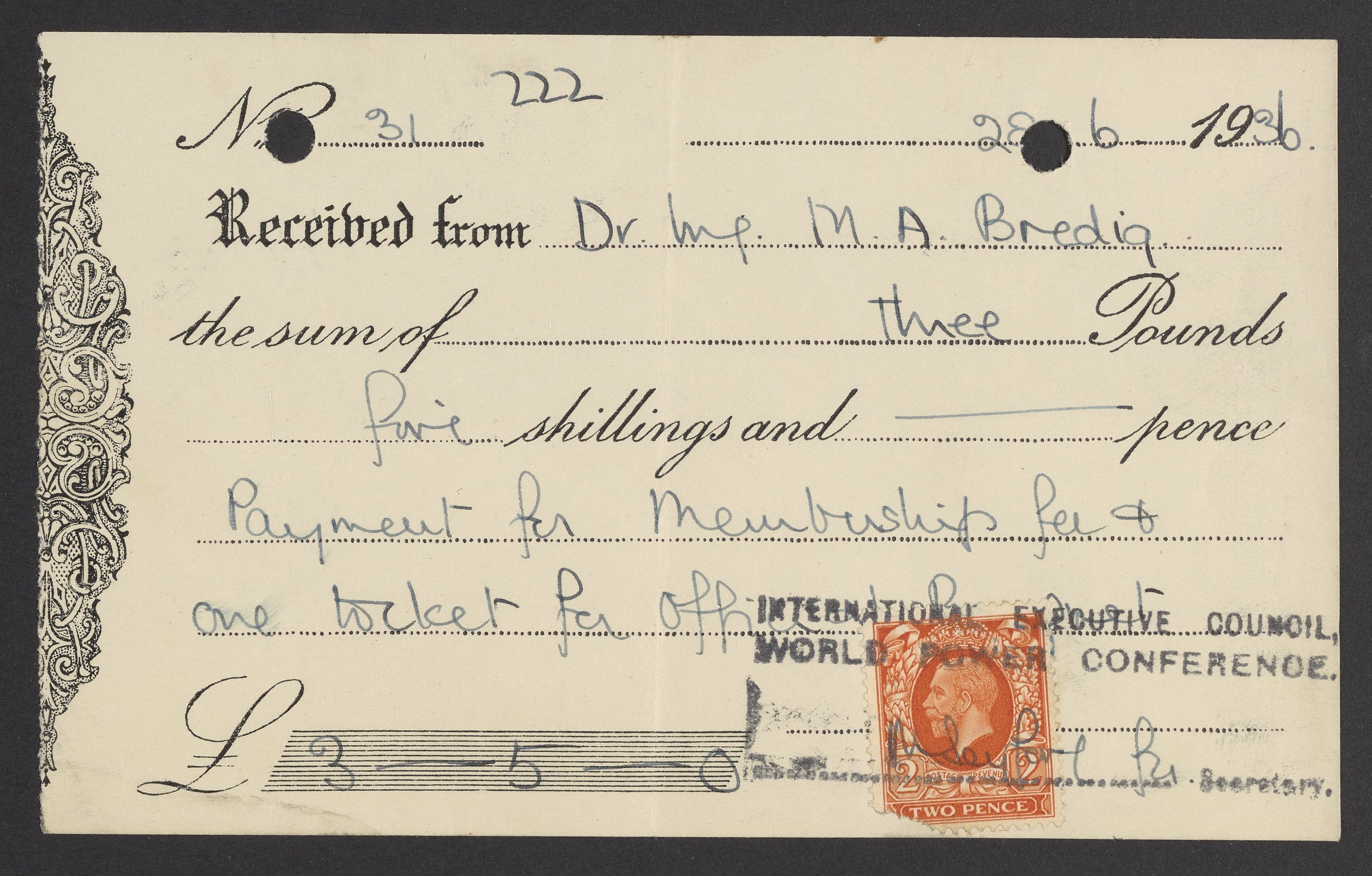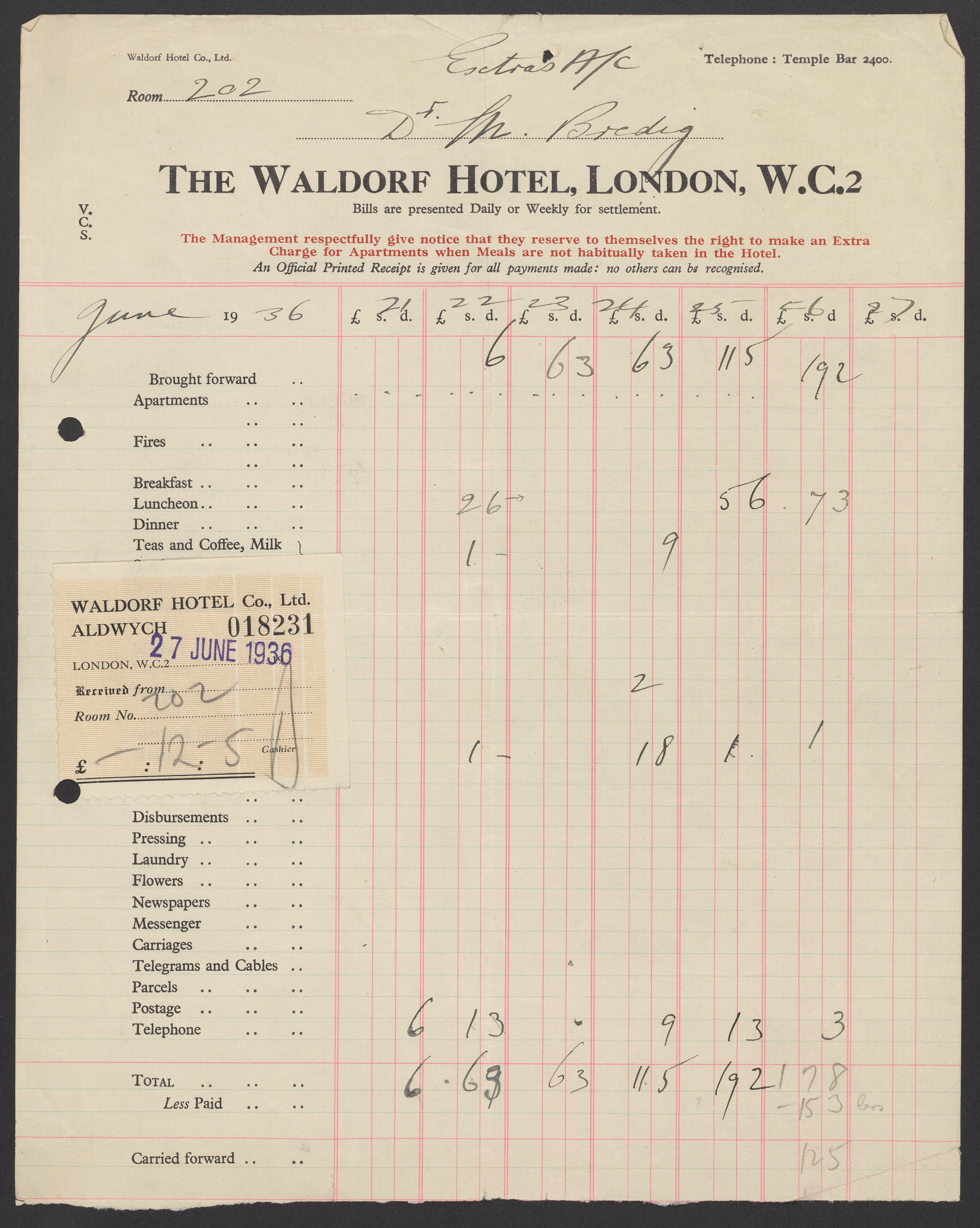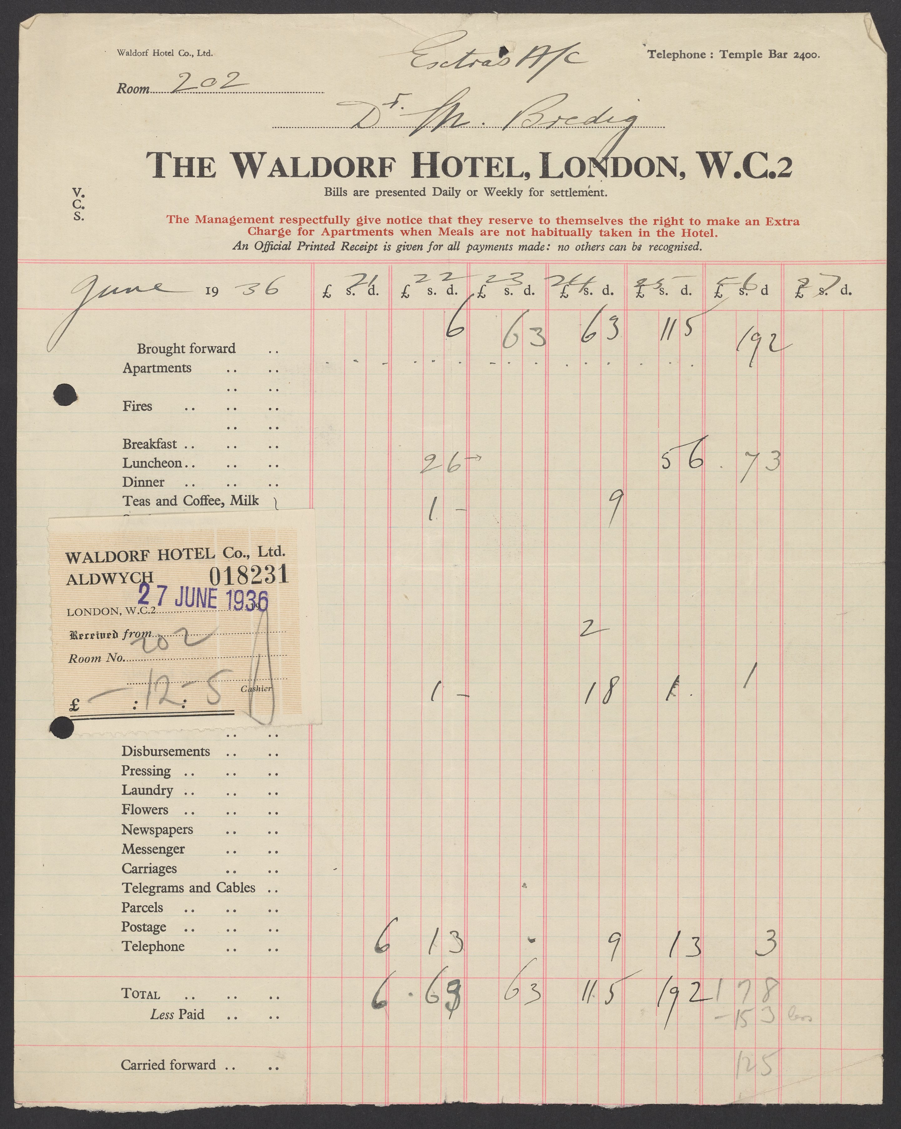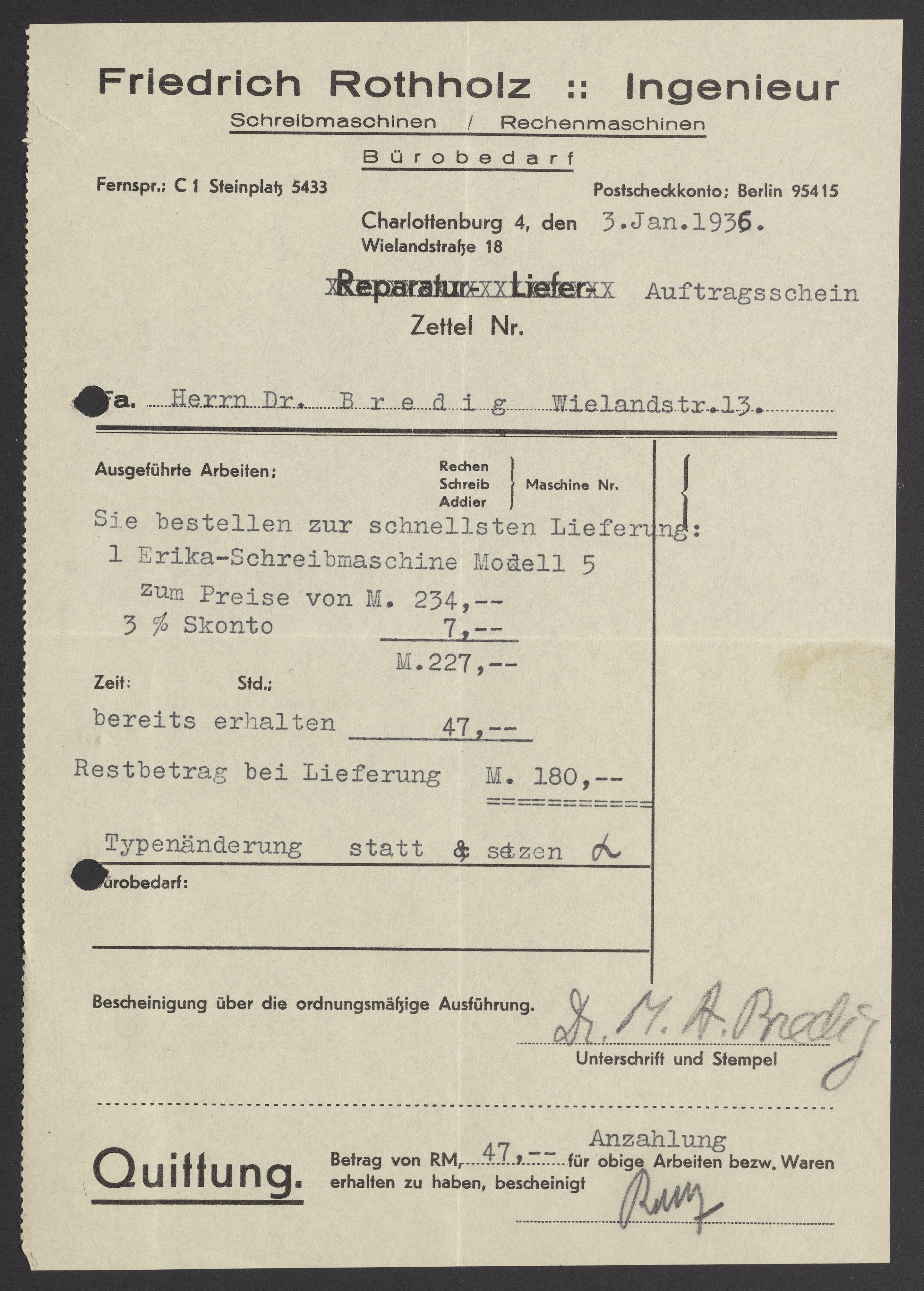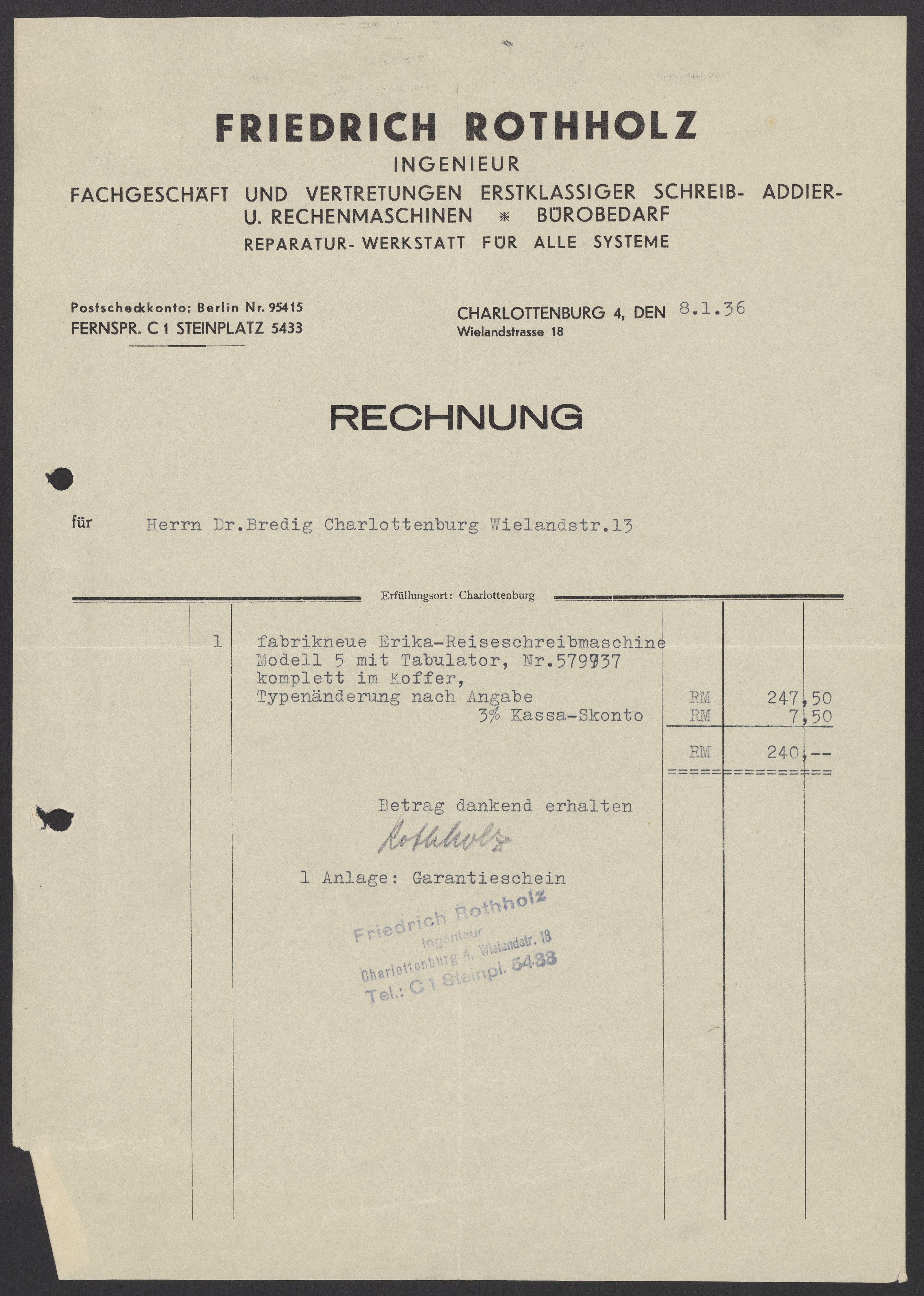 Invoices and receipts kept by Max Bredig, 1936-1937