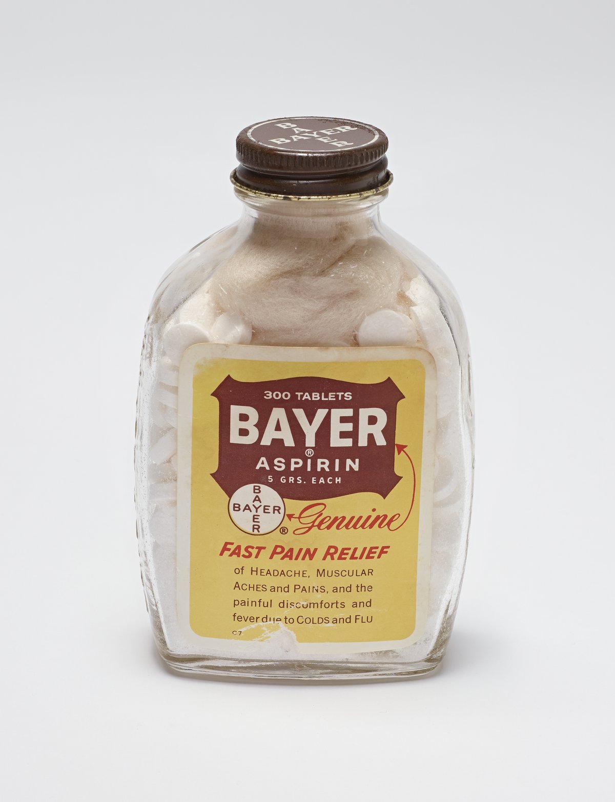 Science History Institute. Glass Bayer Aspirin Bottle, 300 Tablet Size. Photograph, 2017. Science History Institute. Philadelphia. https://digital.sciencehistory.org/works/7p88cg990.