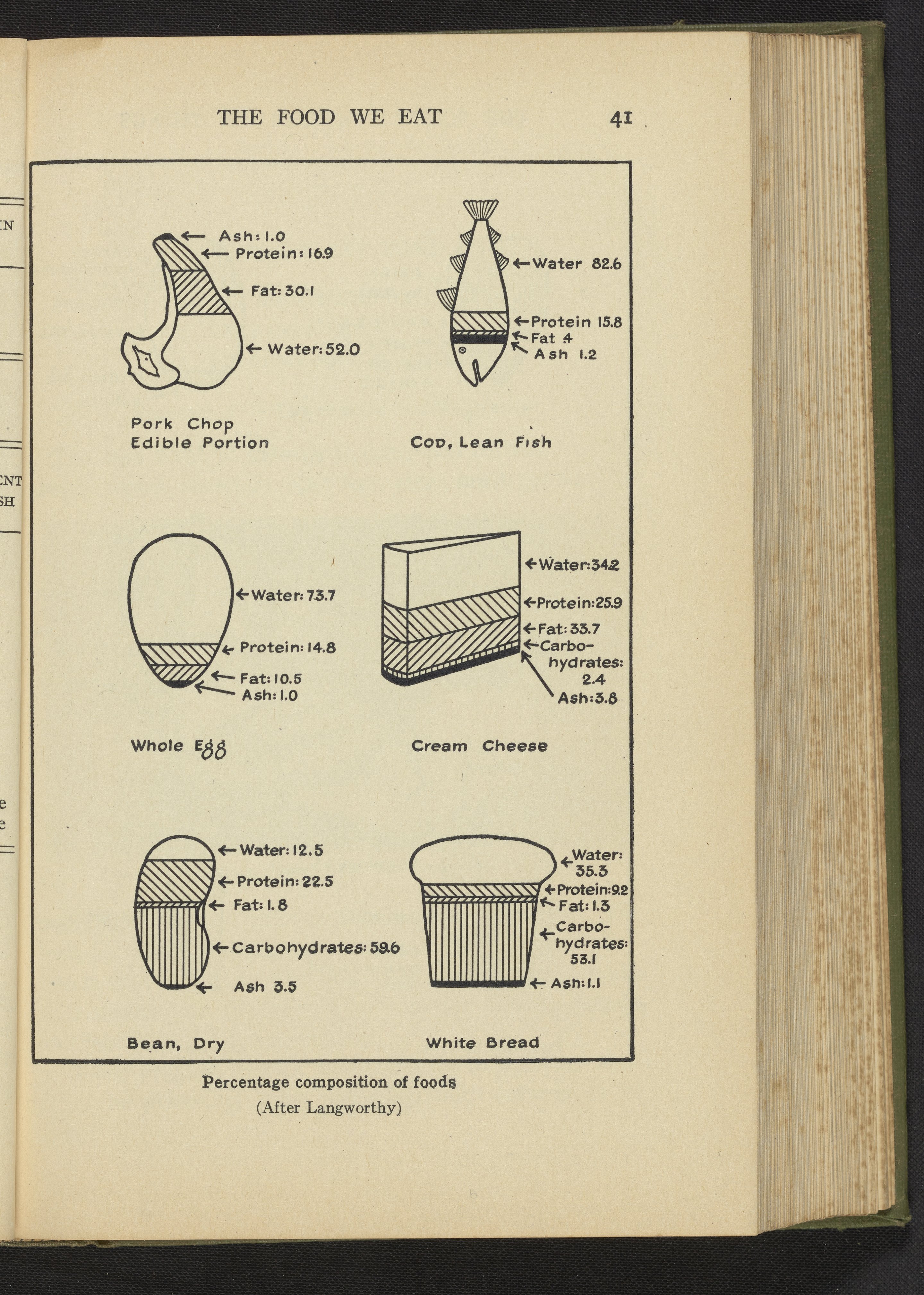 Tower, Samuel Francis. “Percentage Composition of Foods.” The Science of Common Things; a Textbook of General Science. New York, New York: D.C. Heath and Company, 1922. https://digital.sciencehistory.org/works/7s75dd607.