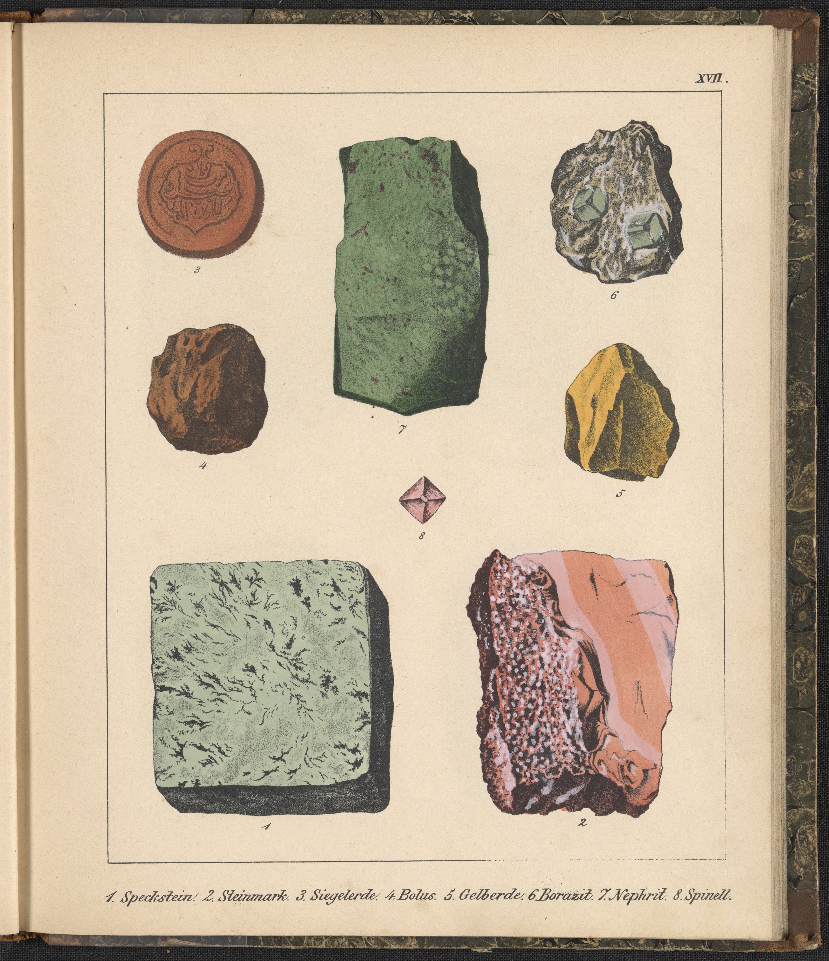 Schmidt, F.A., active 19th century. Mineralienbuch. Stuttgart, Germany: Krais & Hoffmann, 1855. https://digital.sciencehistory.org/works/7tvggnr.