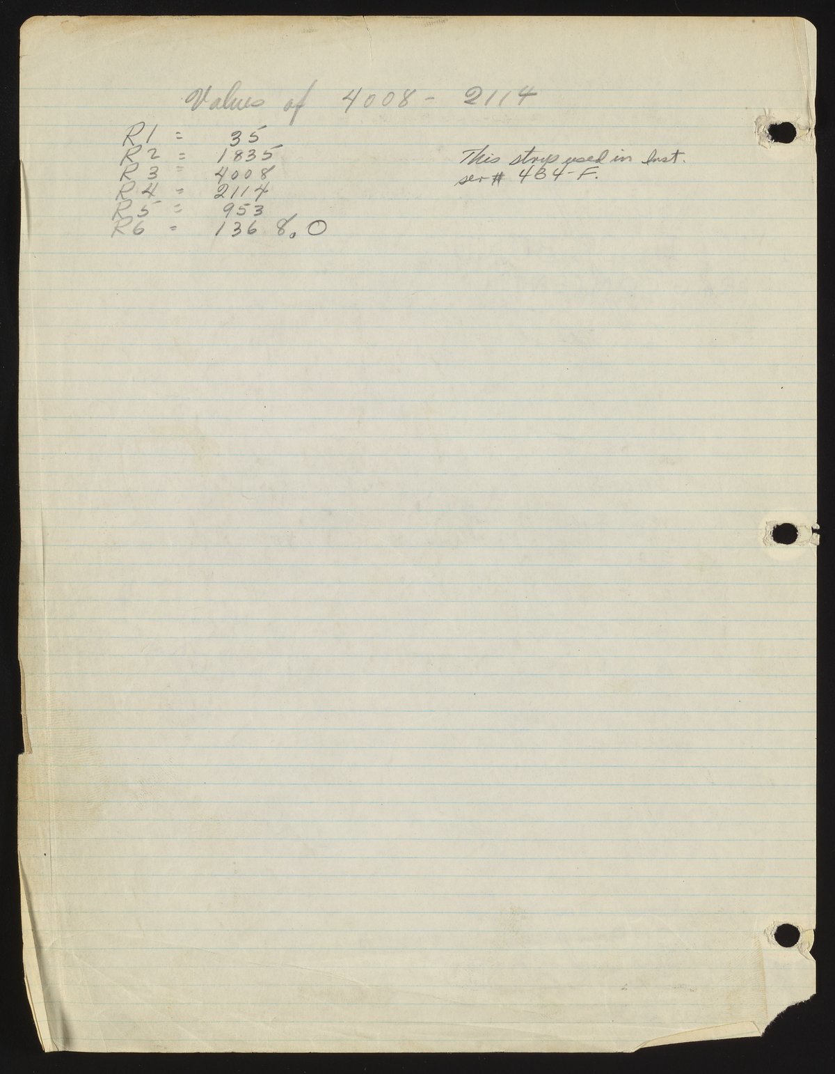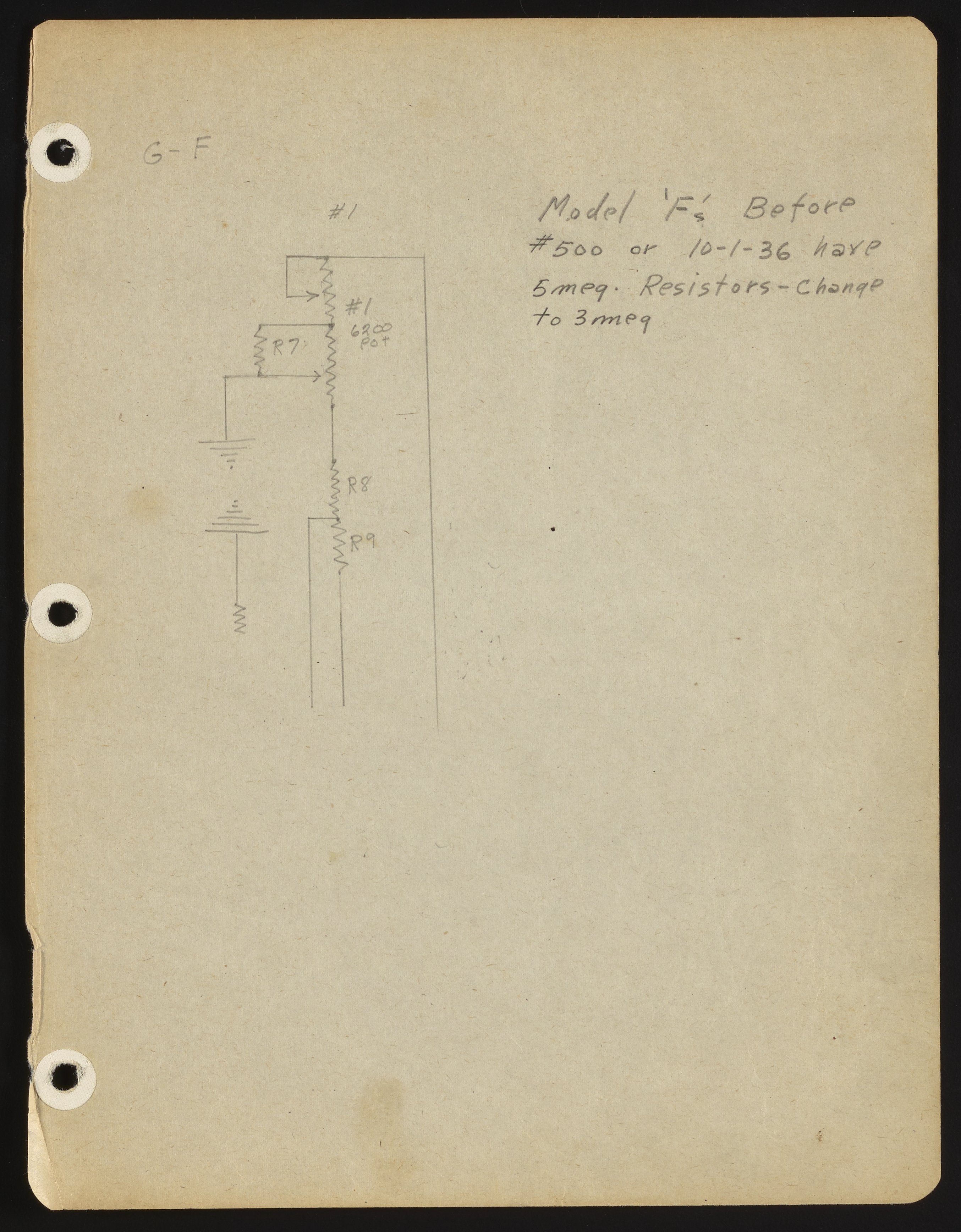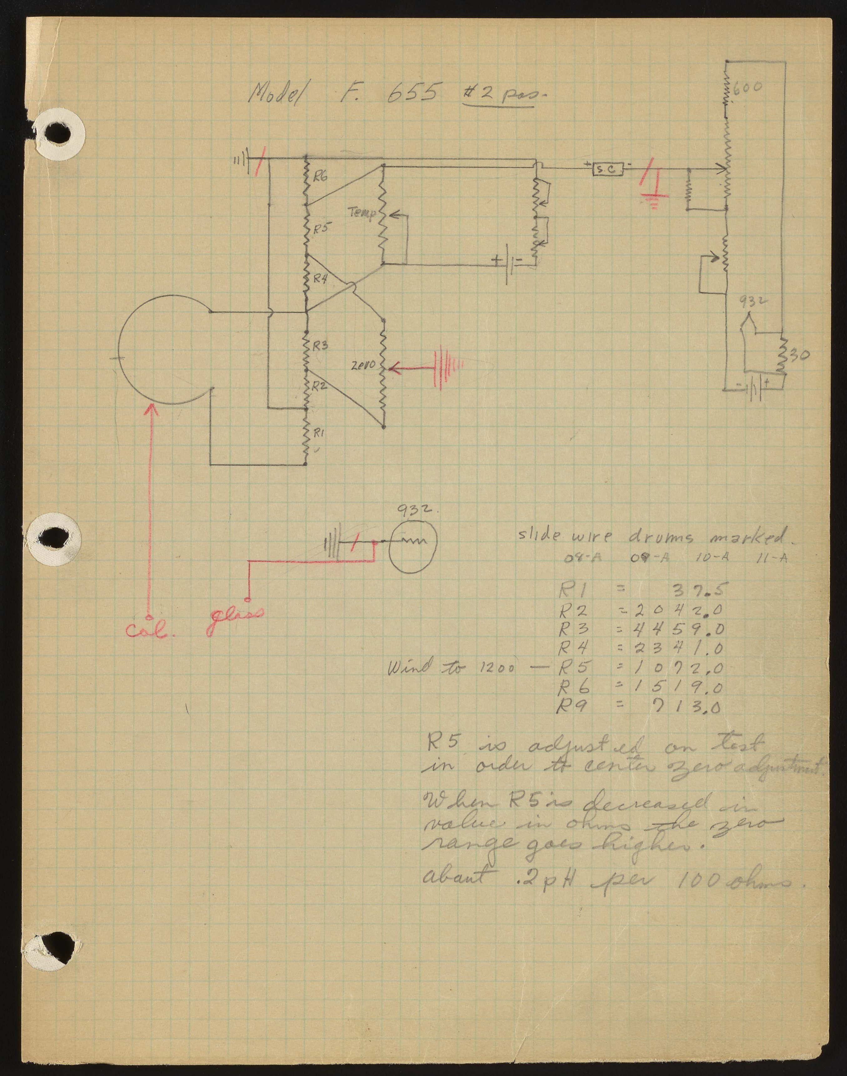 Small JPG1200 x 1540px — 231 KBFull-sized JPG2714 x 3482px — 976 KBOriginal fileTIFF — 2714 x 3482px — 27.1 MBHandwritten and -drawn notes detail the resistors used in the Model F pH meter.