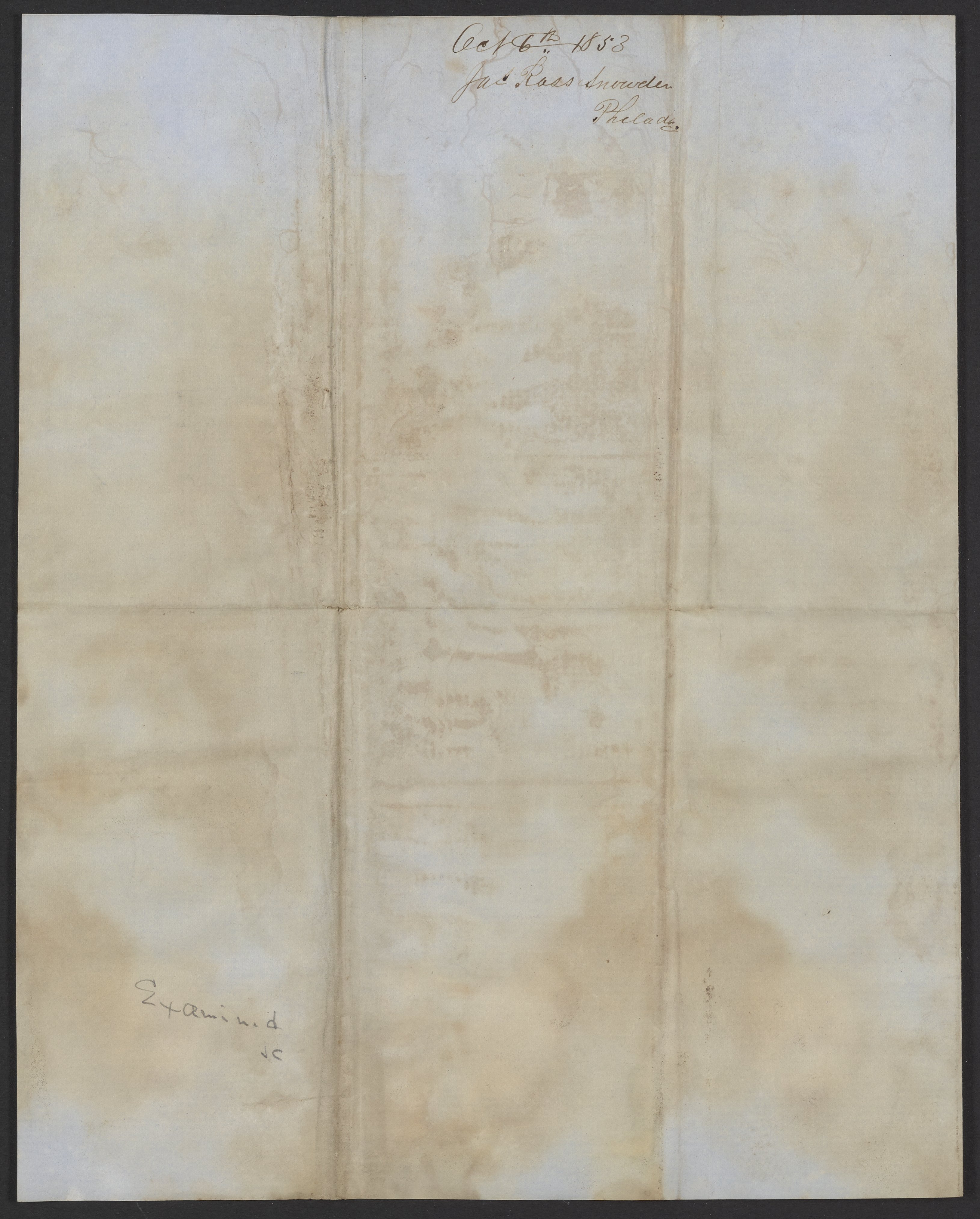 Letter from J. Ross Snowden to James Curtis Booth, October 6, 1853