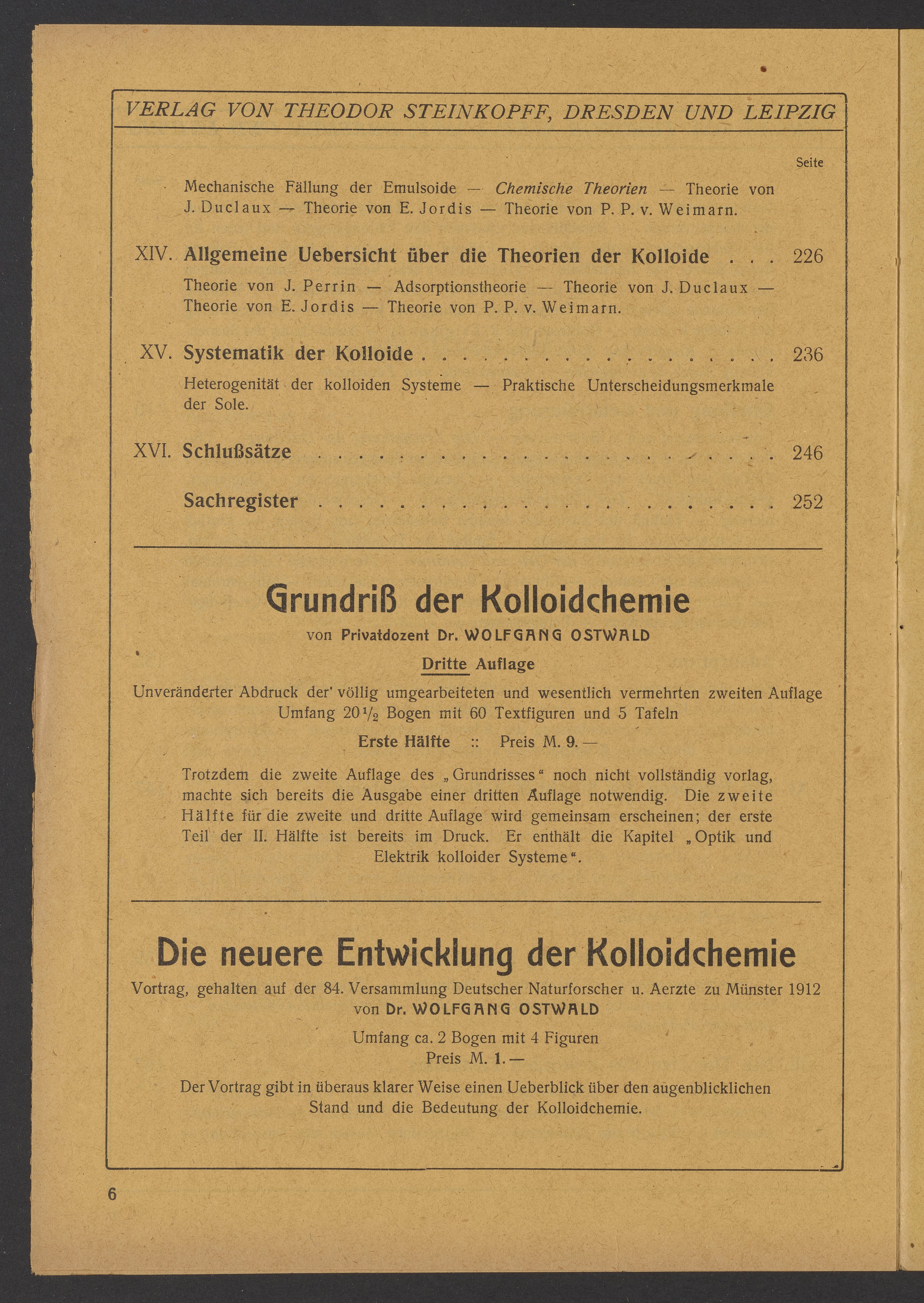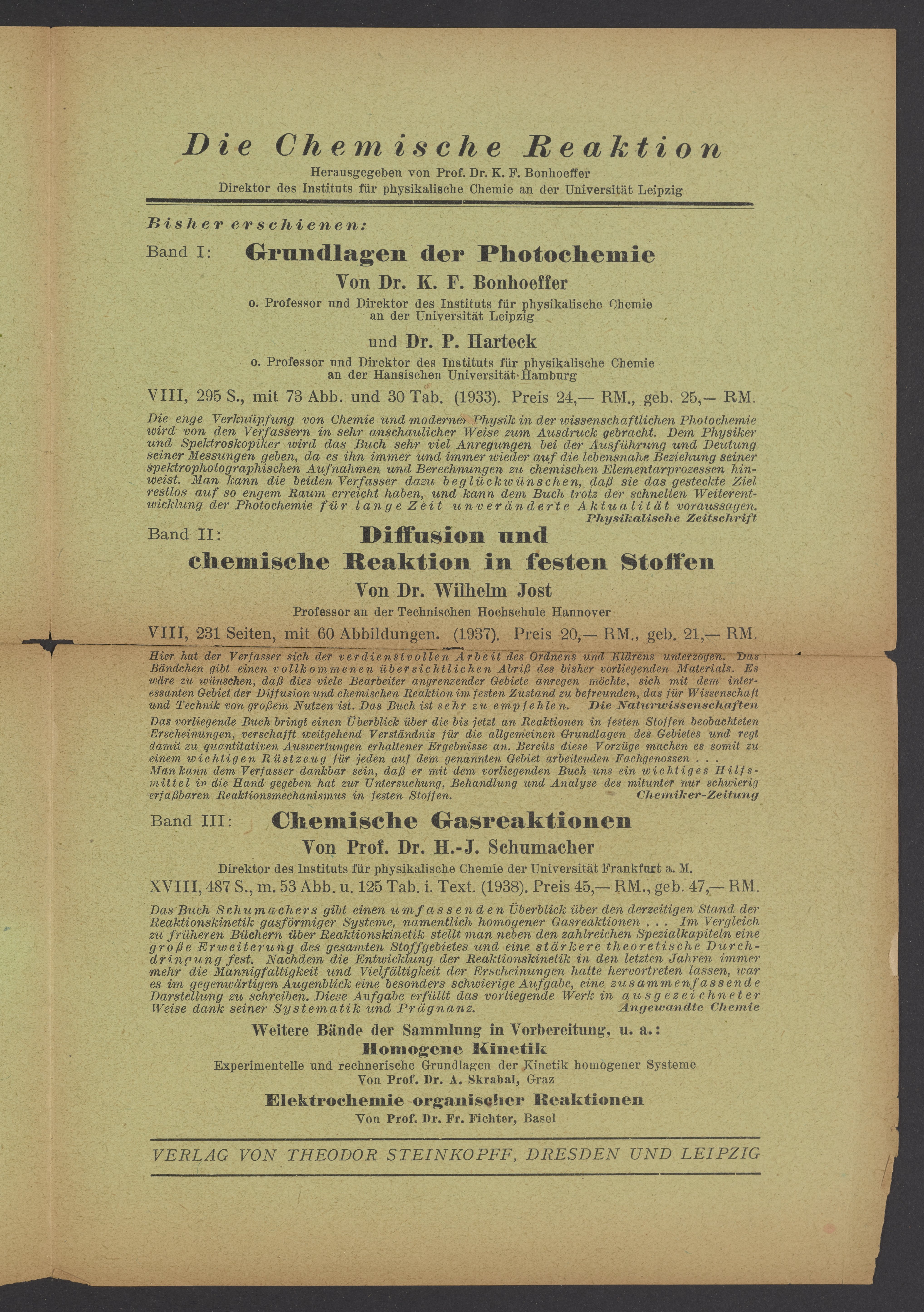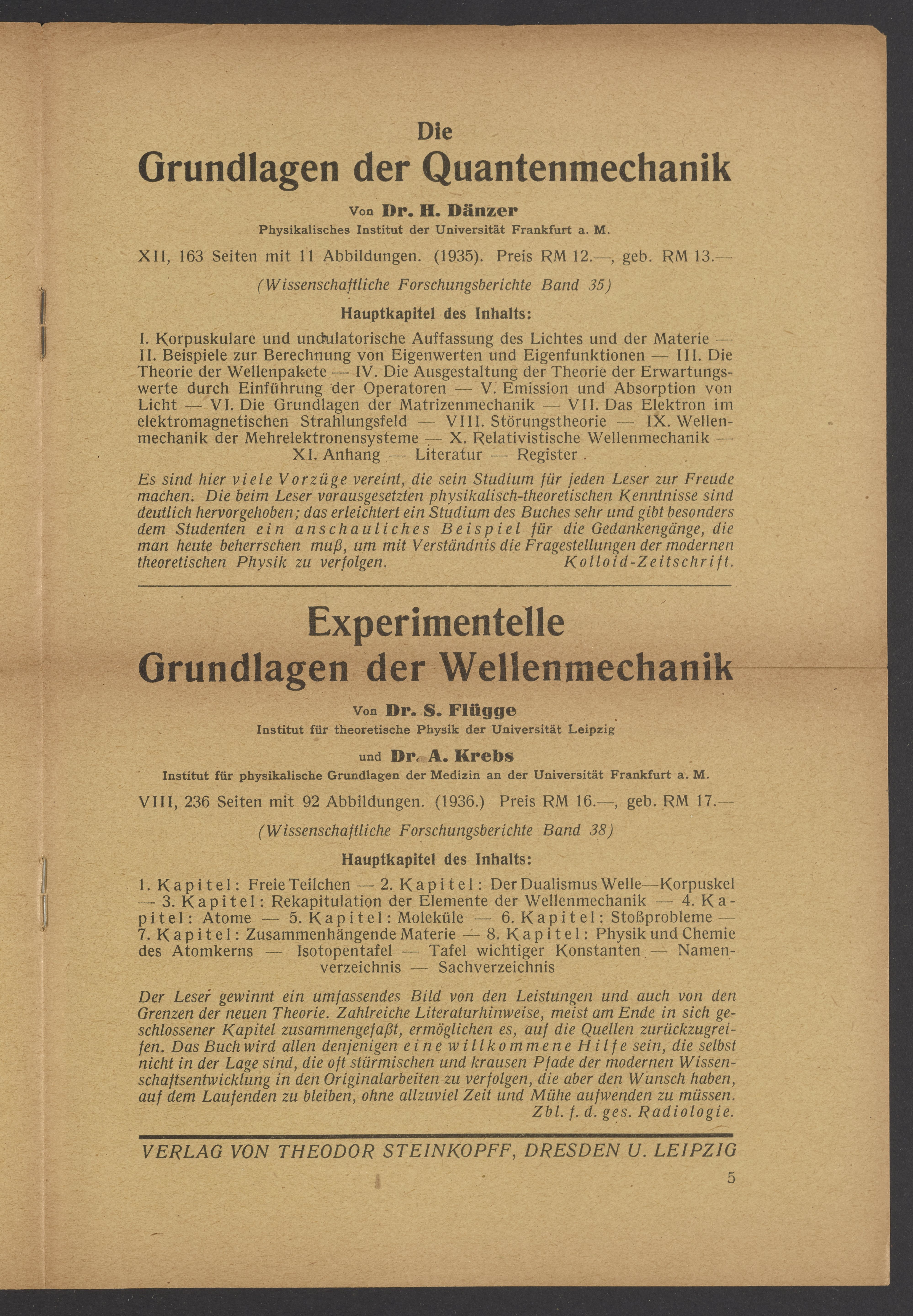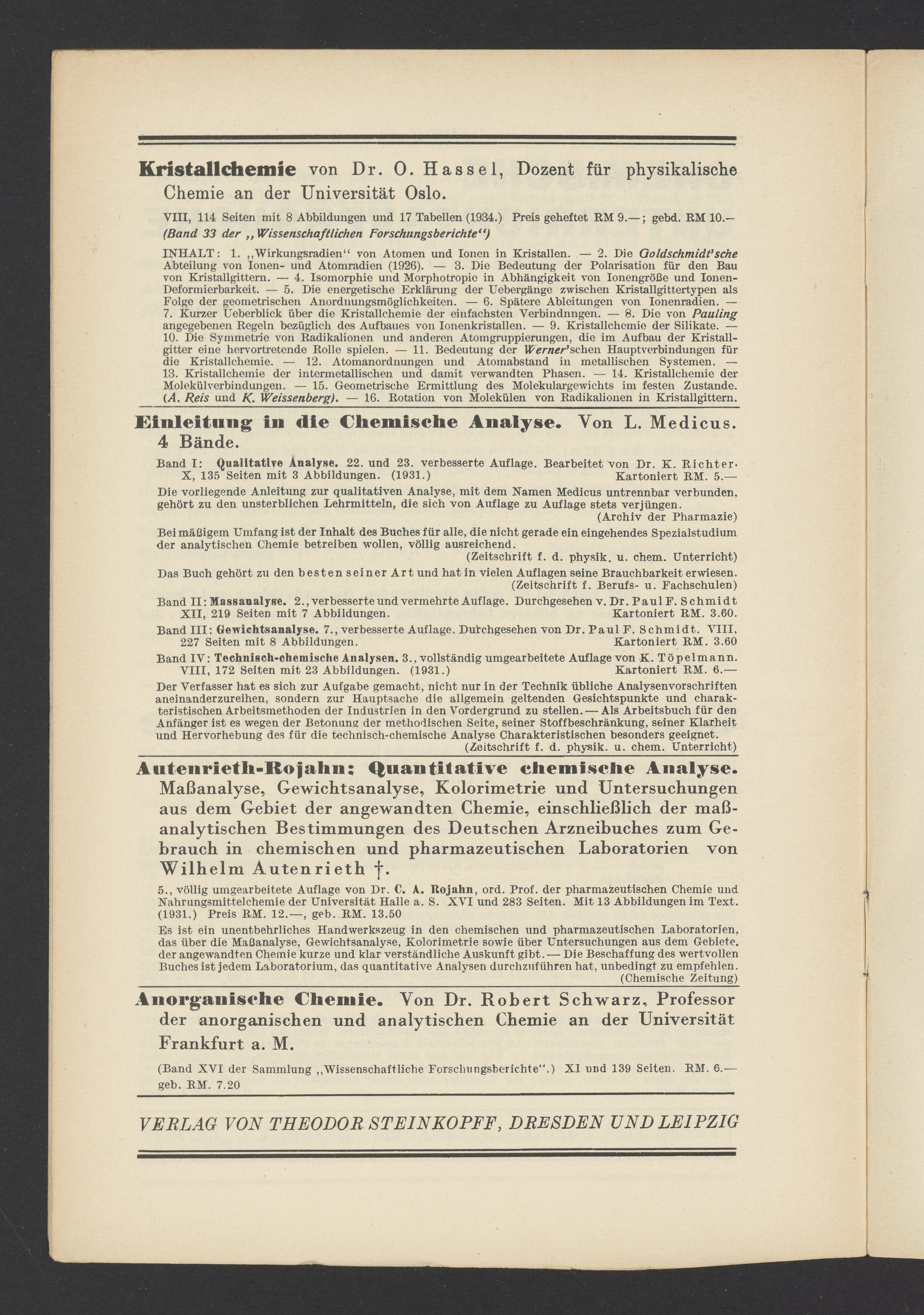 Advertisements for publications from Verlag von Theodor Steinkopff