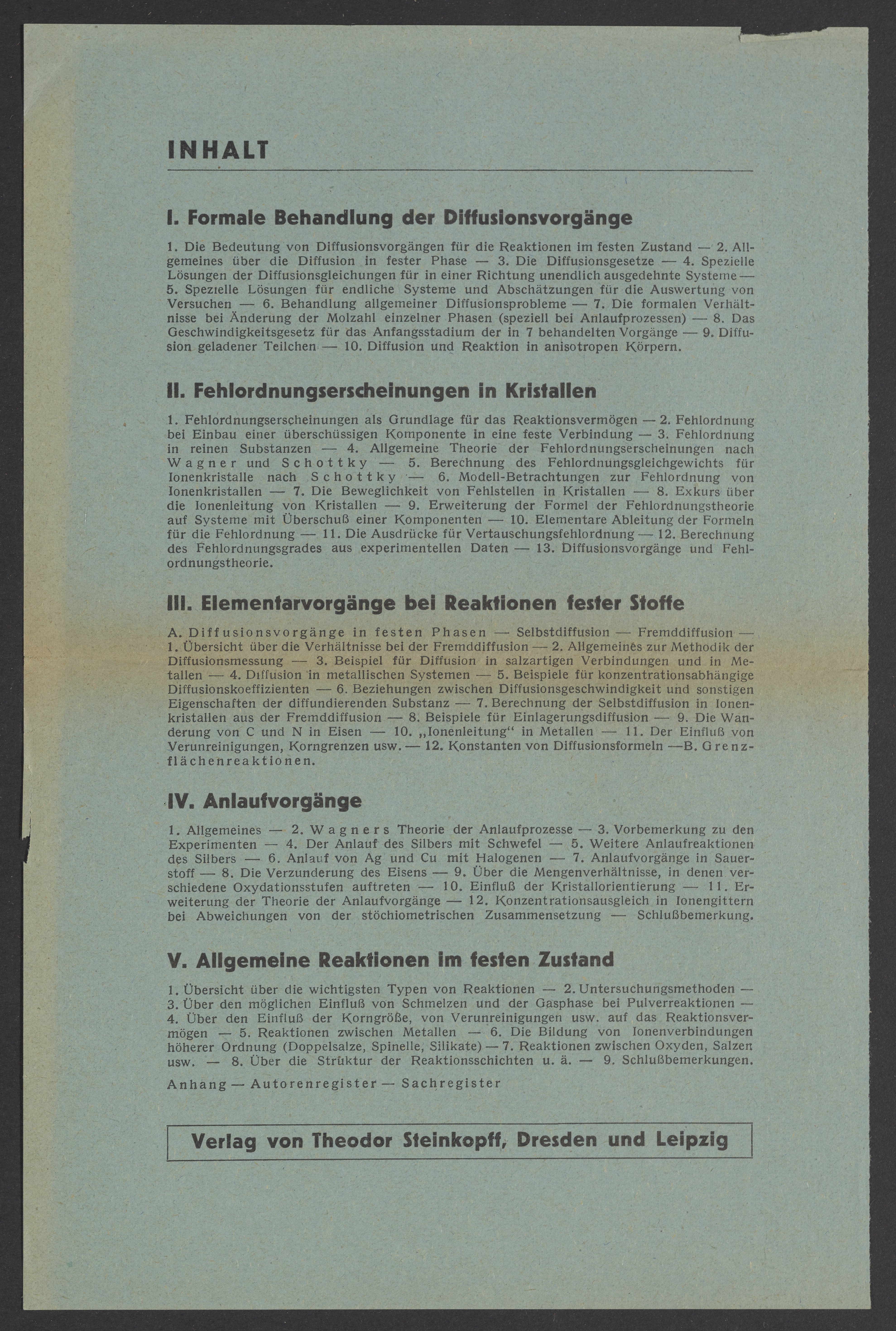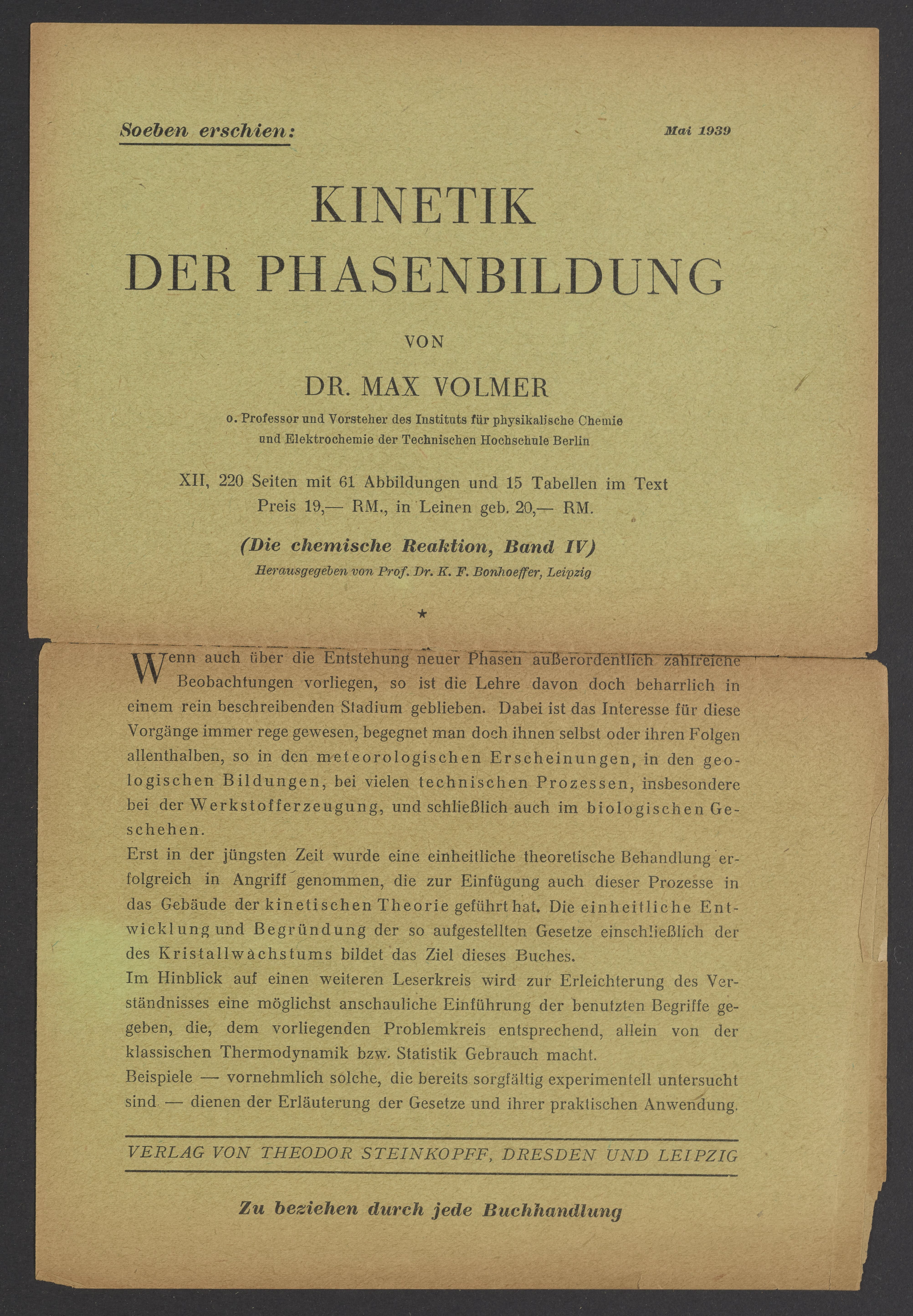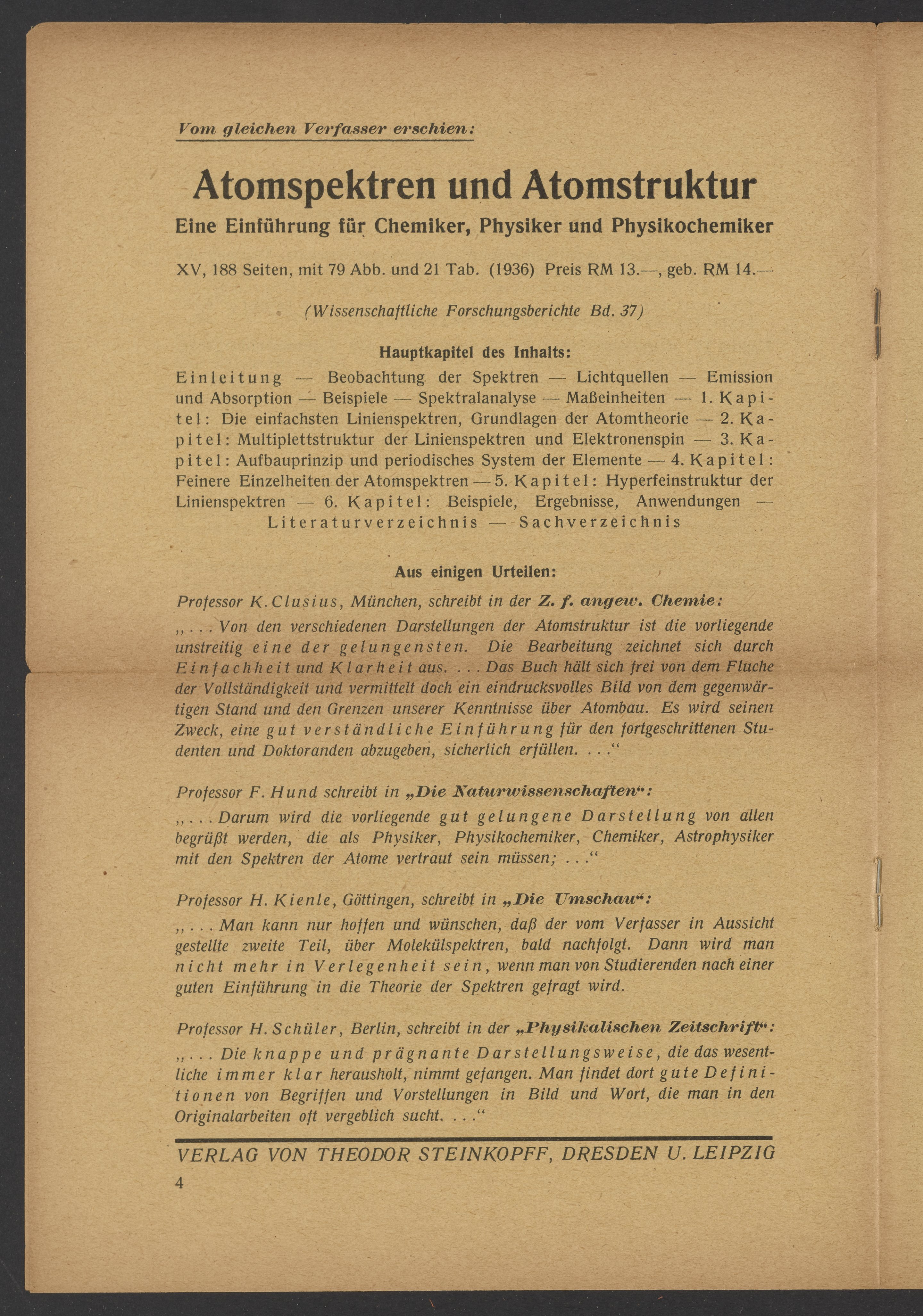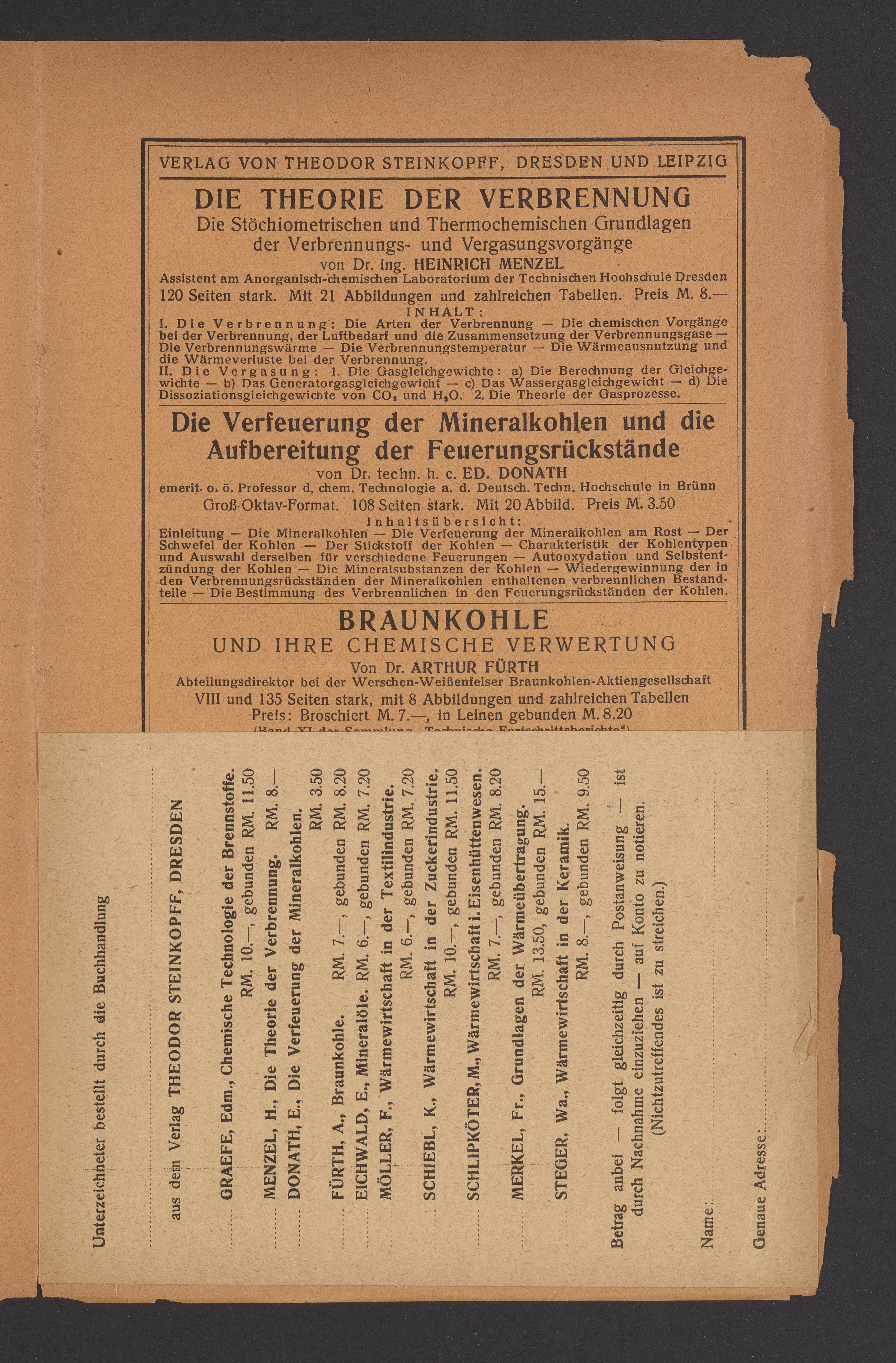 Advertisements for publications from Verlag von Theodor Steinkopff