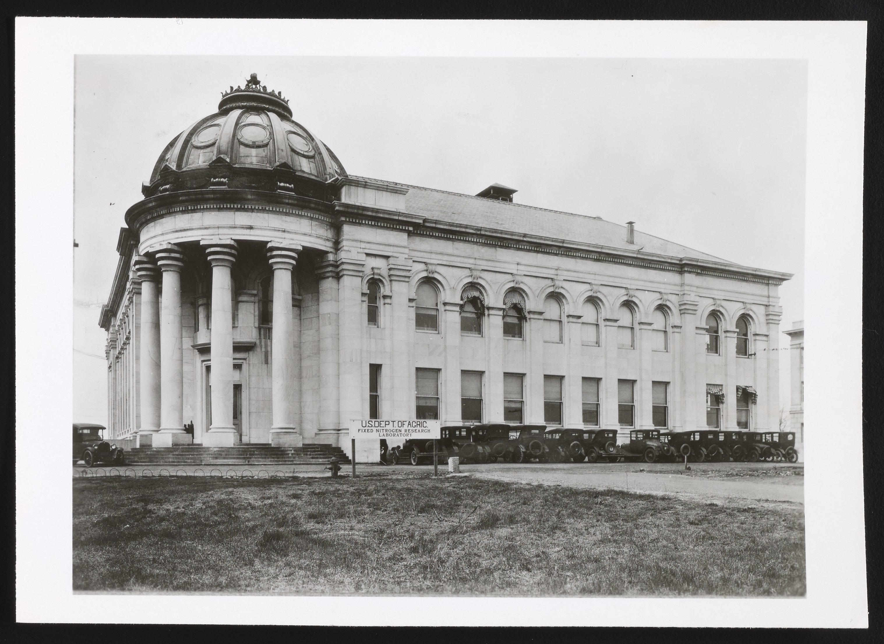 “Exterior View of the Fixed Nitrogen Research Laboratory,” April 1926. Travis P. Hignett Collection of Fixed Nitrogen Research Laboratory Photographs, Box 3. Science History Institute. Philadelphia. https://digital.sciencehistory.org/works/8049g524z.