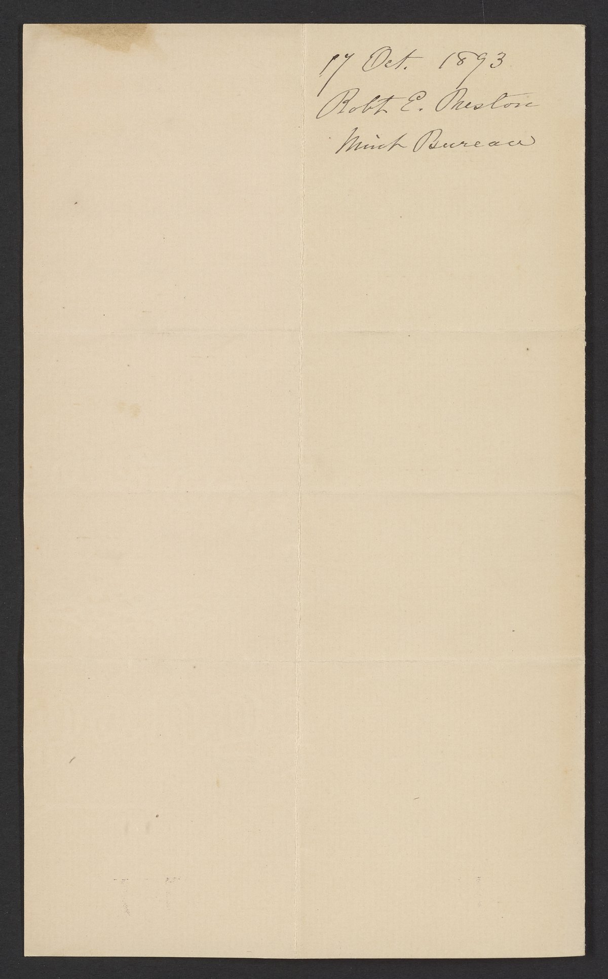 Letter from R.E. Preston to Margaret M. Booth, October 17, 1890