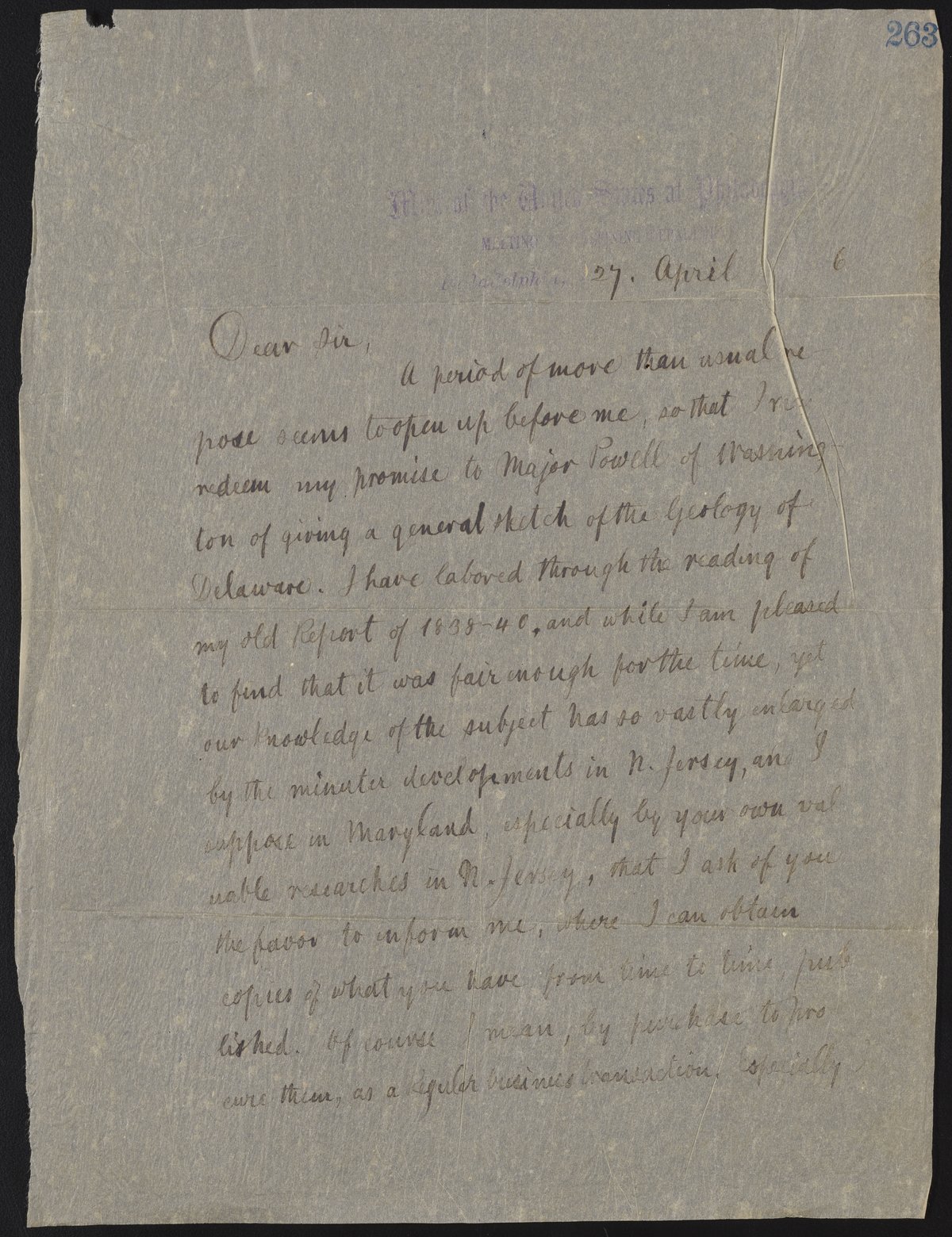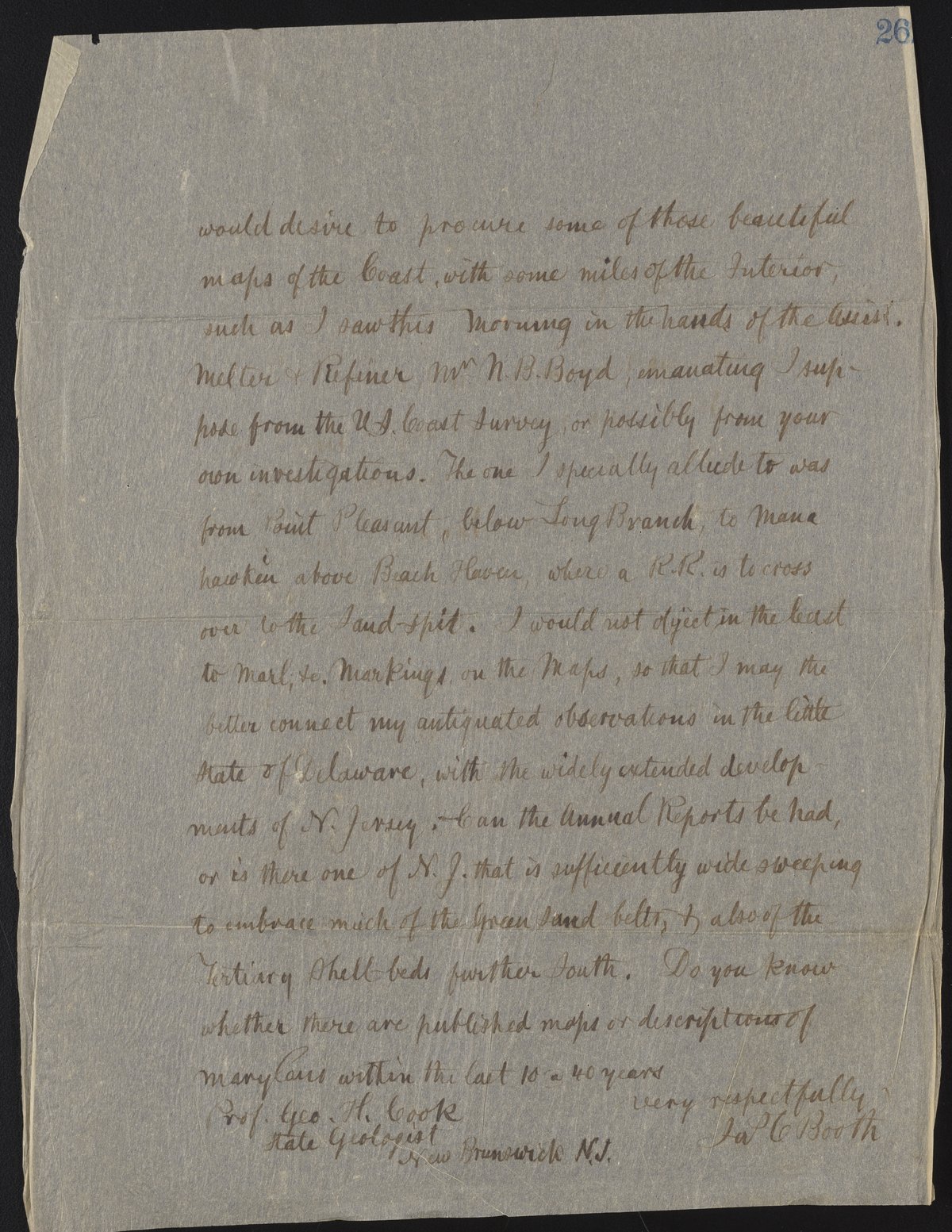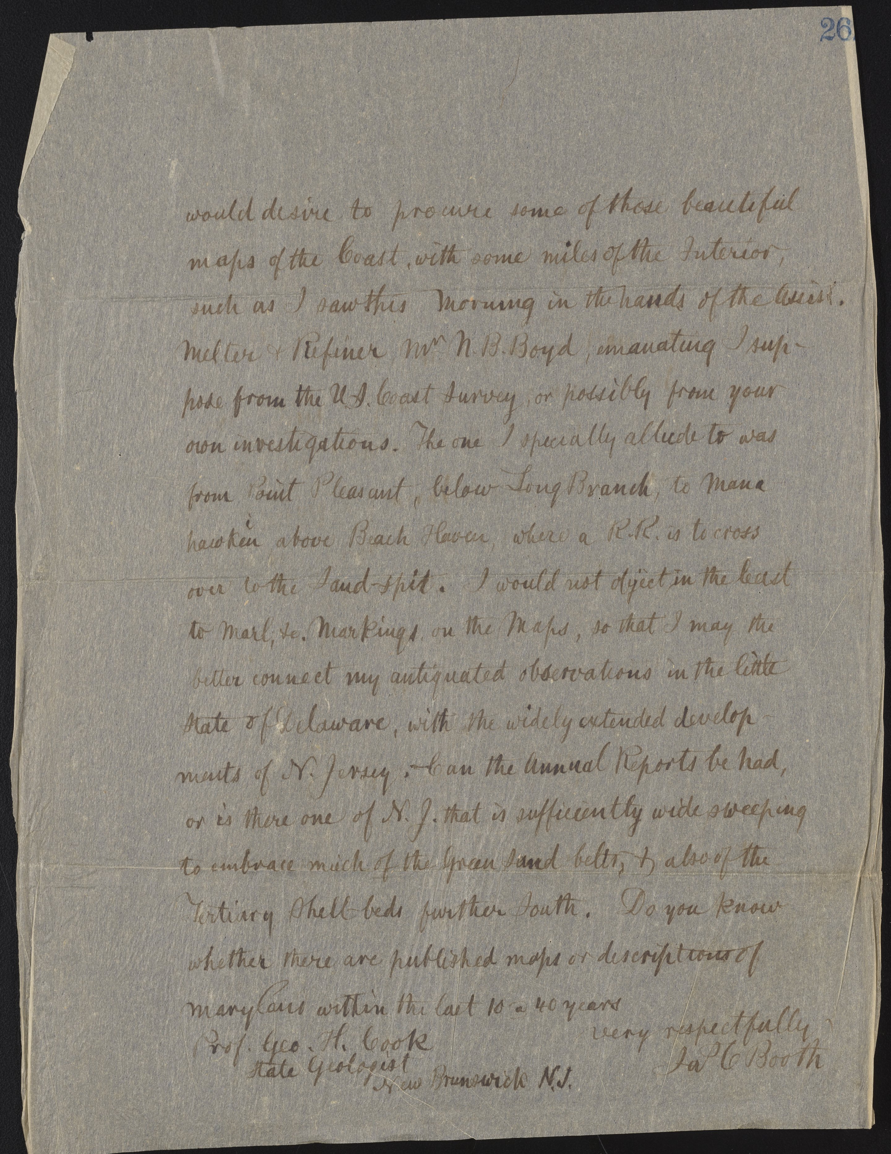Letter from James Curtis Booth to George H. Cook