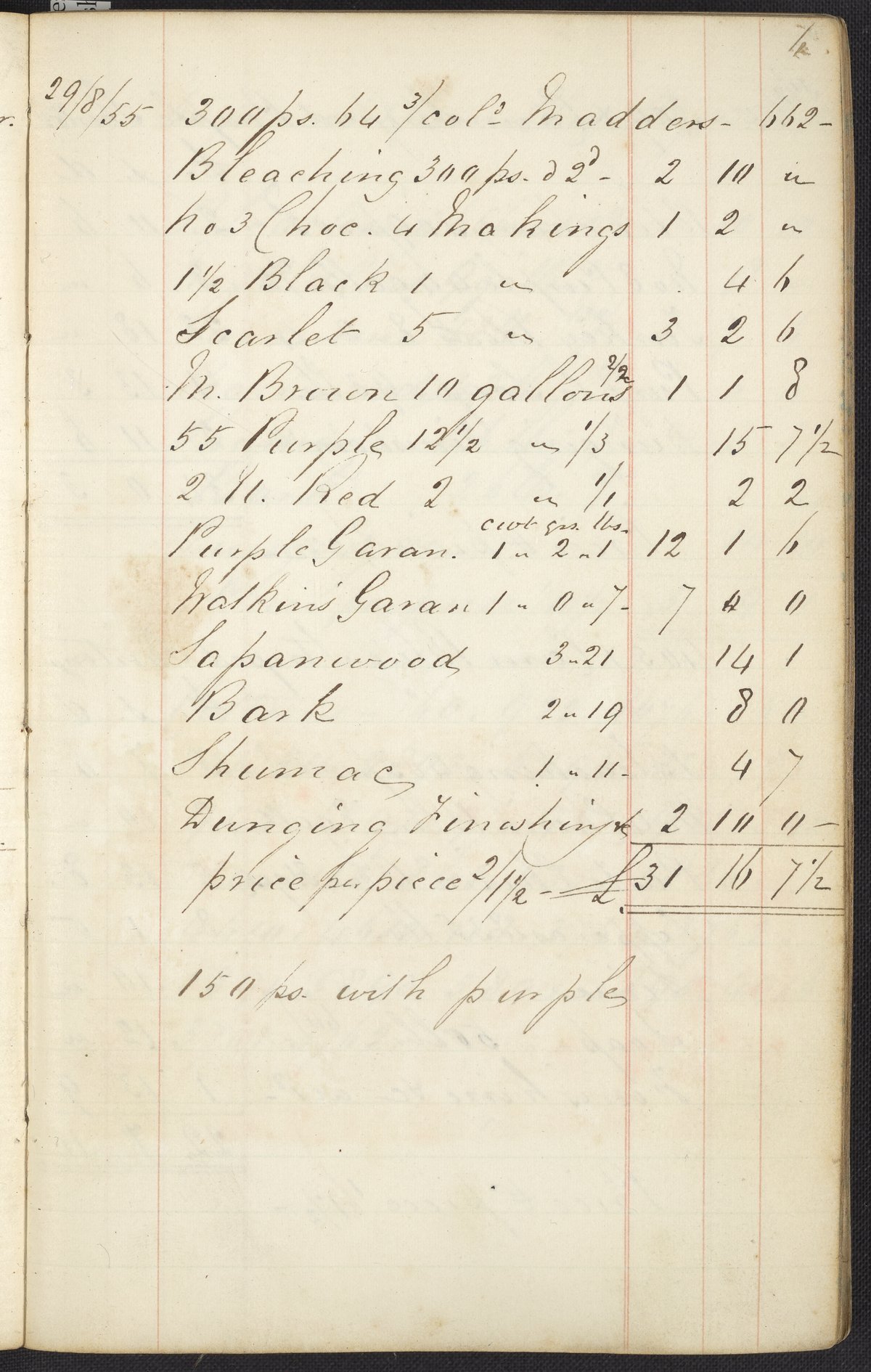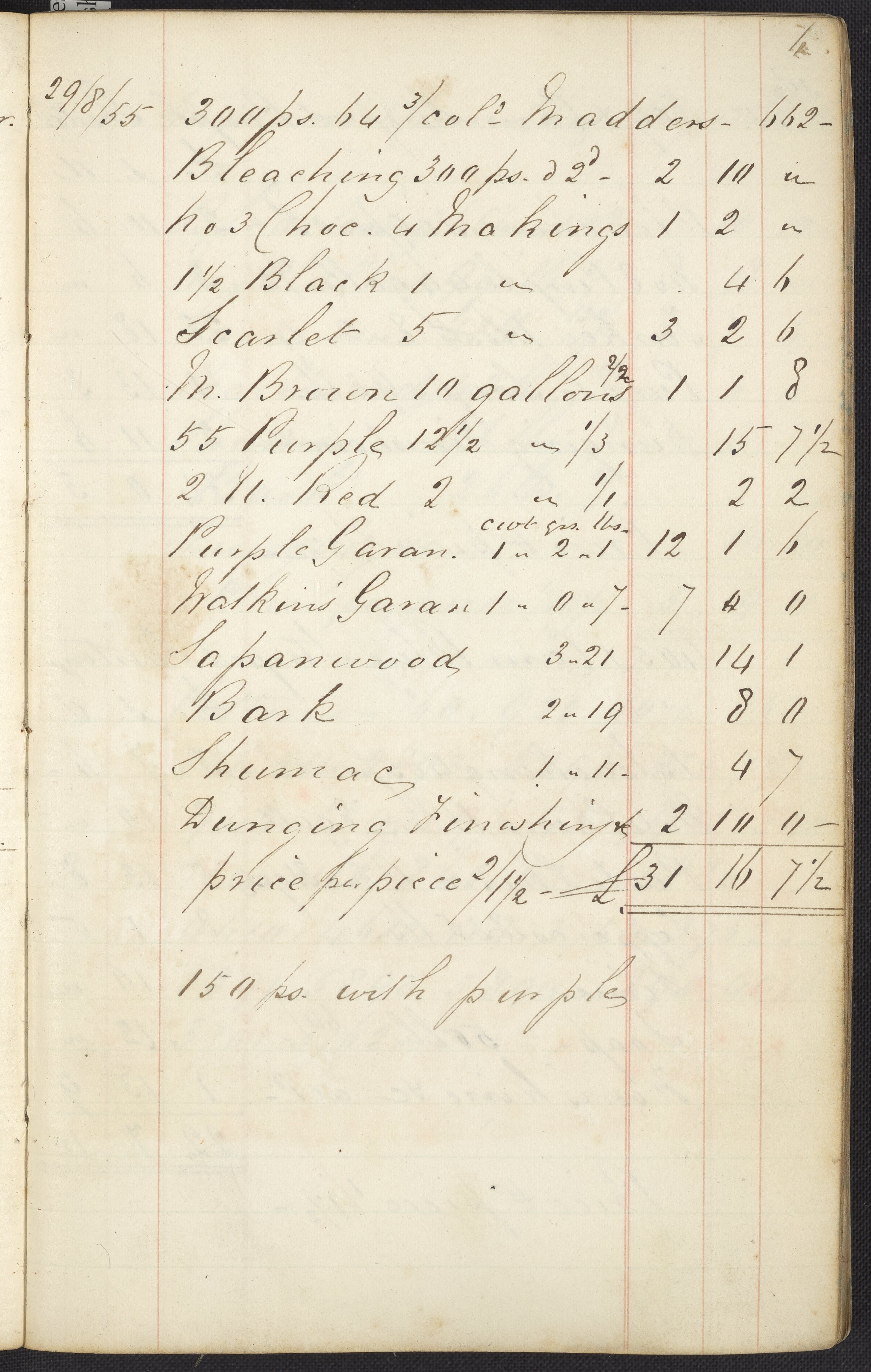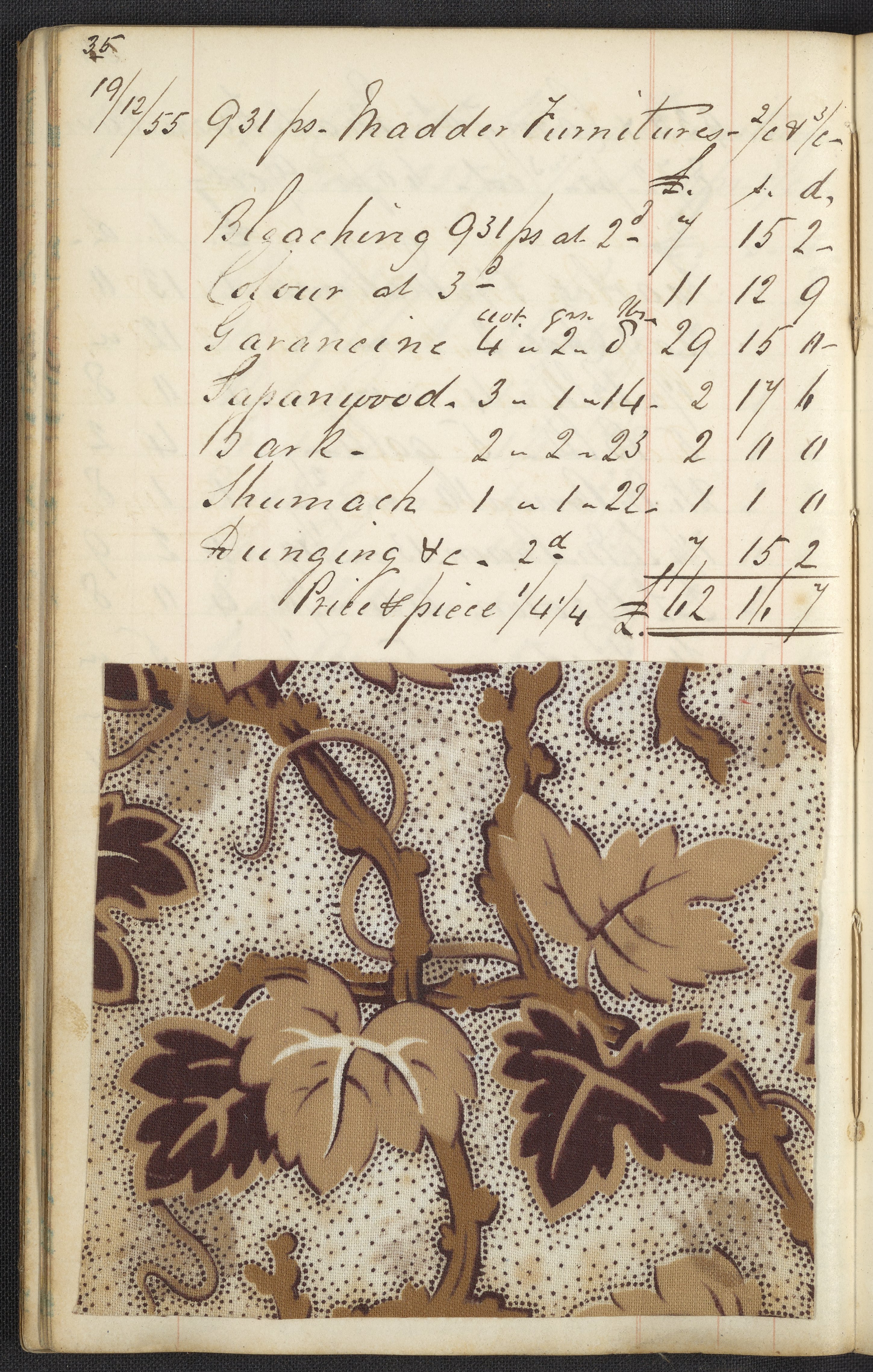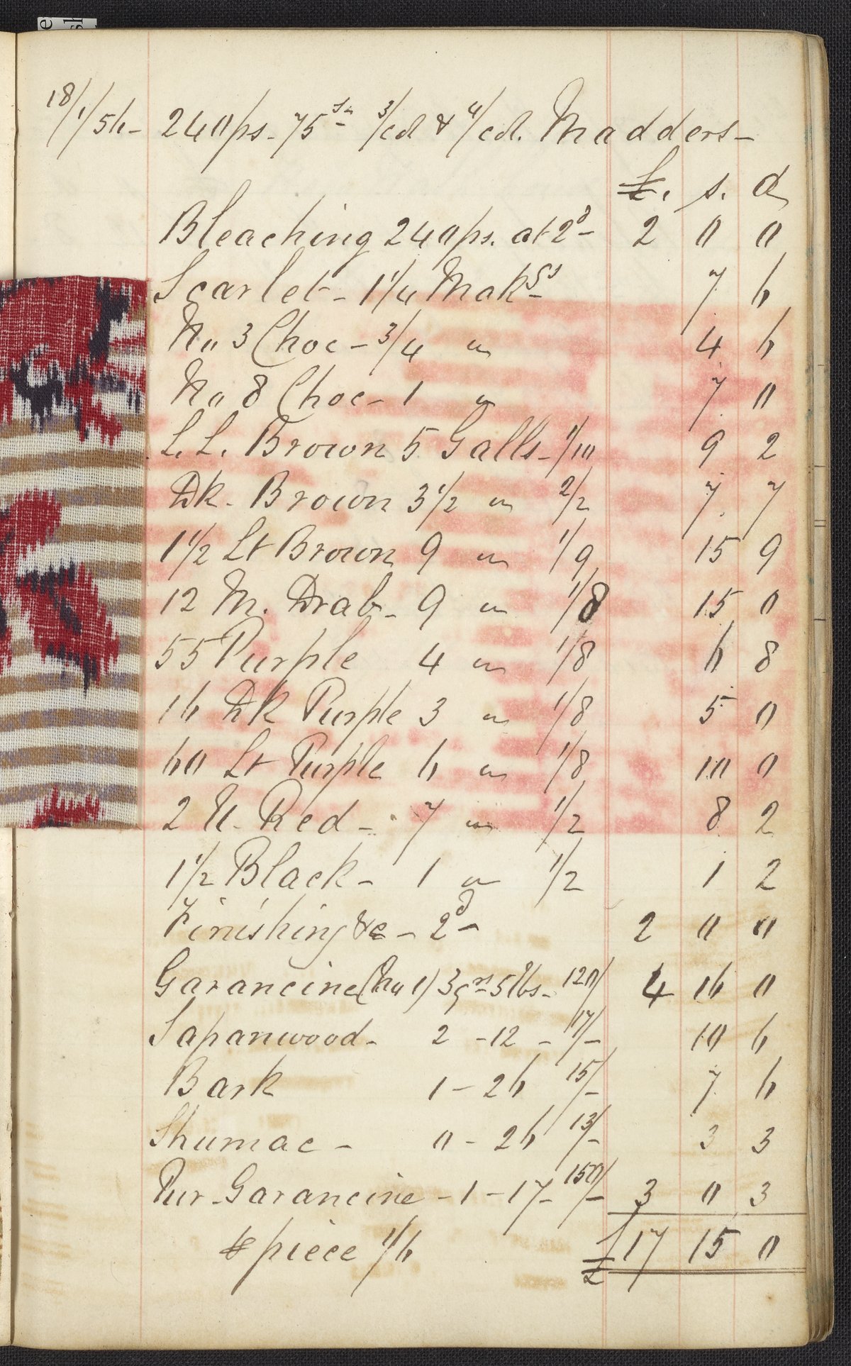 Dyer's account book, Volume 1