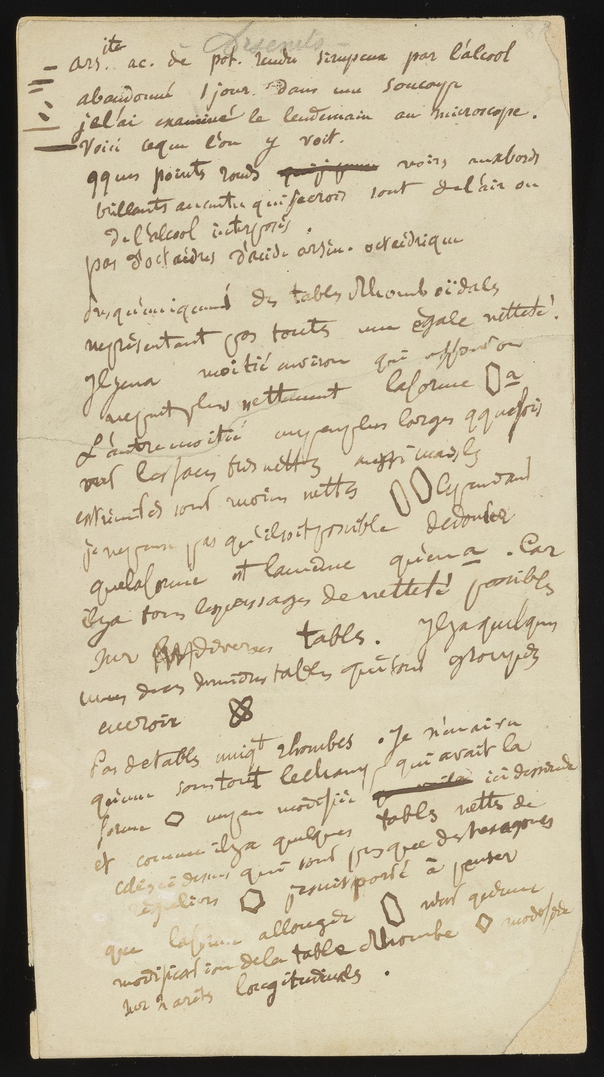 Pasteur, Louis. “Louis Pasteur Lecture Notes on Crystal Structure, Tartaric Acid, and Arsenites (3 of 4).” Louis Pasteur Lecture Notes on Crystal Structure, Tartaric Acid, and Arsenites, n.d. Fisher-Pasteur Memorial Collection, Box 1, Folder 3. Science History Institute. Philadelphia. https://digital.sciencehistory.org/works/8623hx80d.