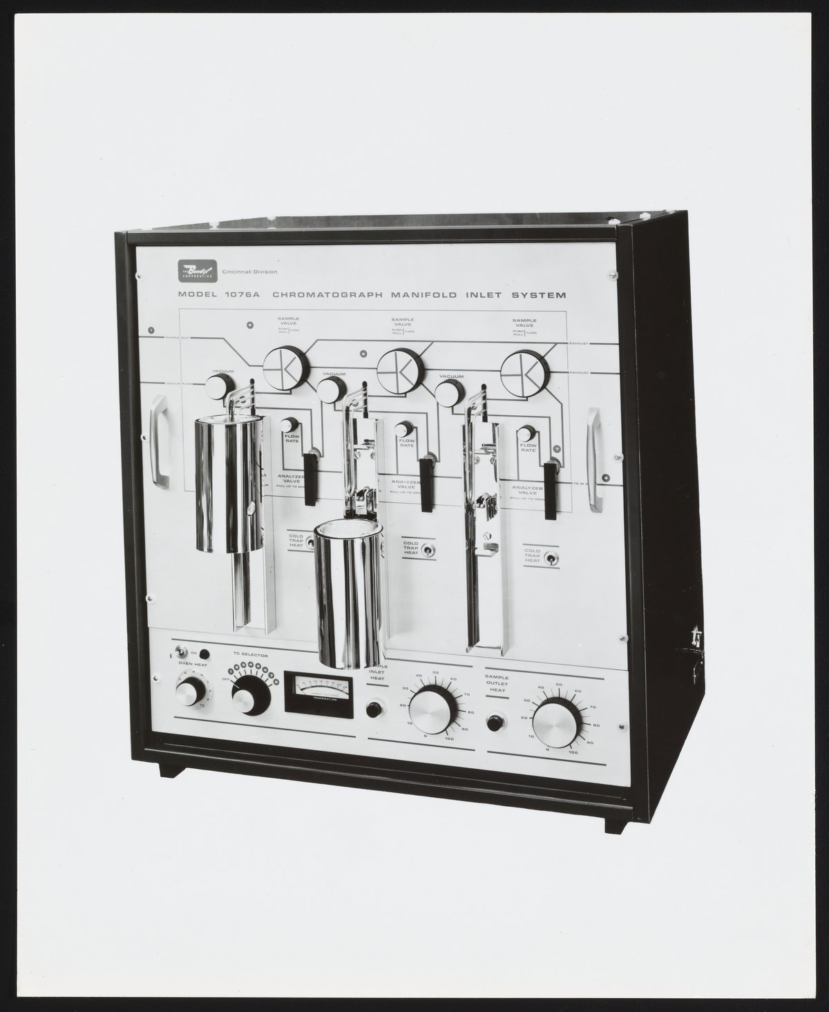 Bendix Corporation. “Bendix Model 1076A Chromatograph Manifold Inlet System,” 1970–1979. Photographs from the Bendix Time-of-Flight Mass Spectrometer Collection, Box 2. Science History Institute. Philadelphia. https://digital.sciencehistory.org/works/8623hz06b.