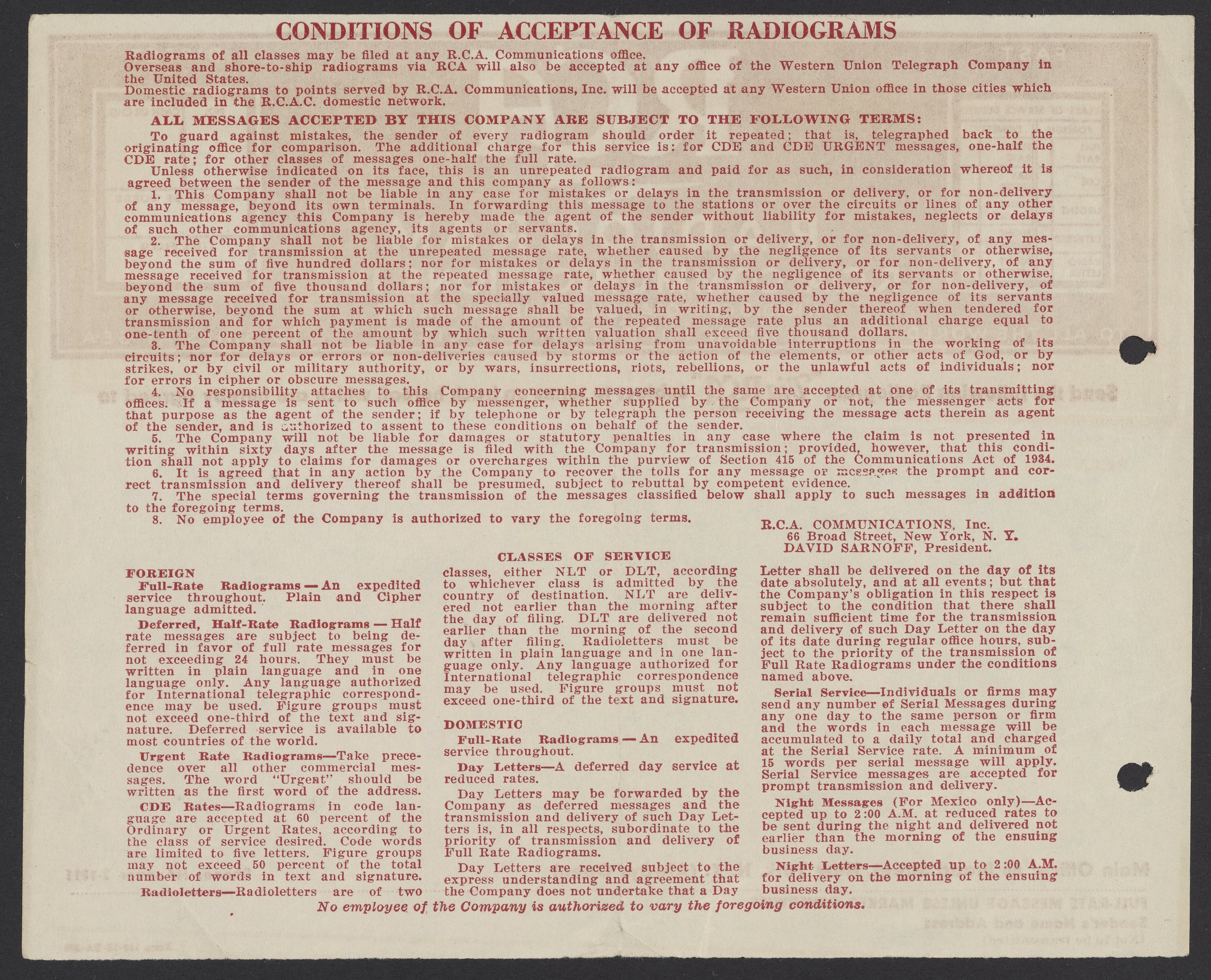 Radiogram from Max Bredig to Georg Bredig, September 18, 1939