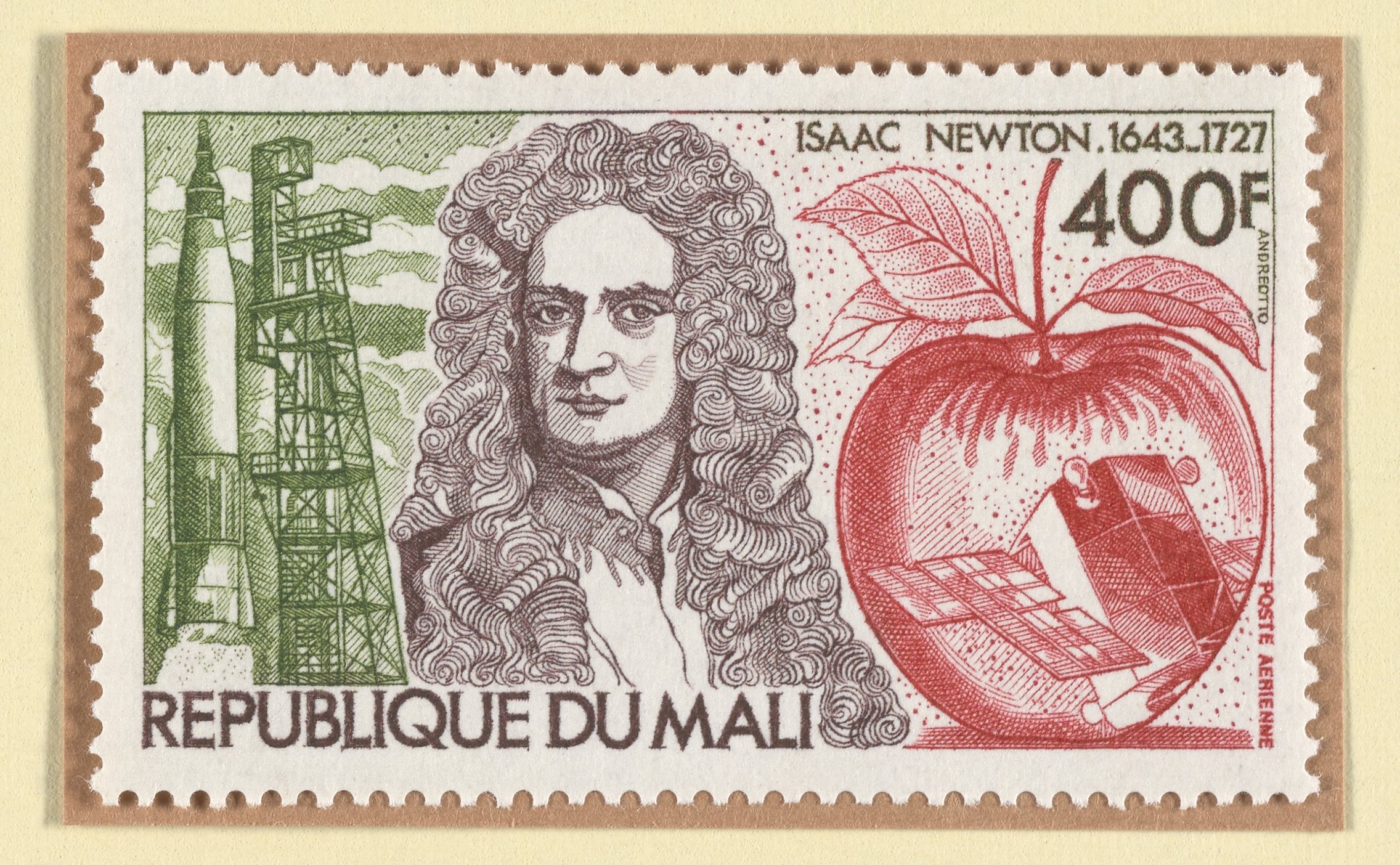 Andreotto, Claude. “Malian Postage Stamp Commemorating the 250th Anniversary of Isaac Newton's Death.” Mali, 1977. Witco Stamp Collection, Box 1. Science History Institute. Philadelphia. https://digital.sciencehistory.org/works/8910jt66t.