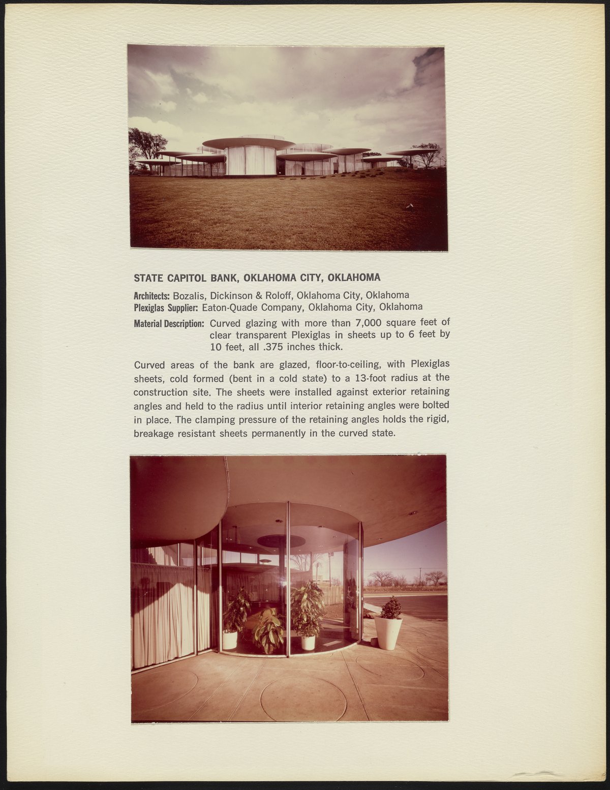State Capitol Bank building featuring curved Plexiglas sheets