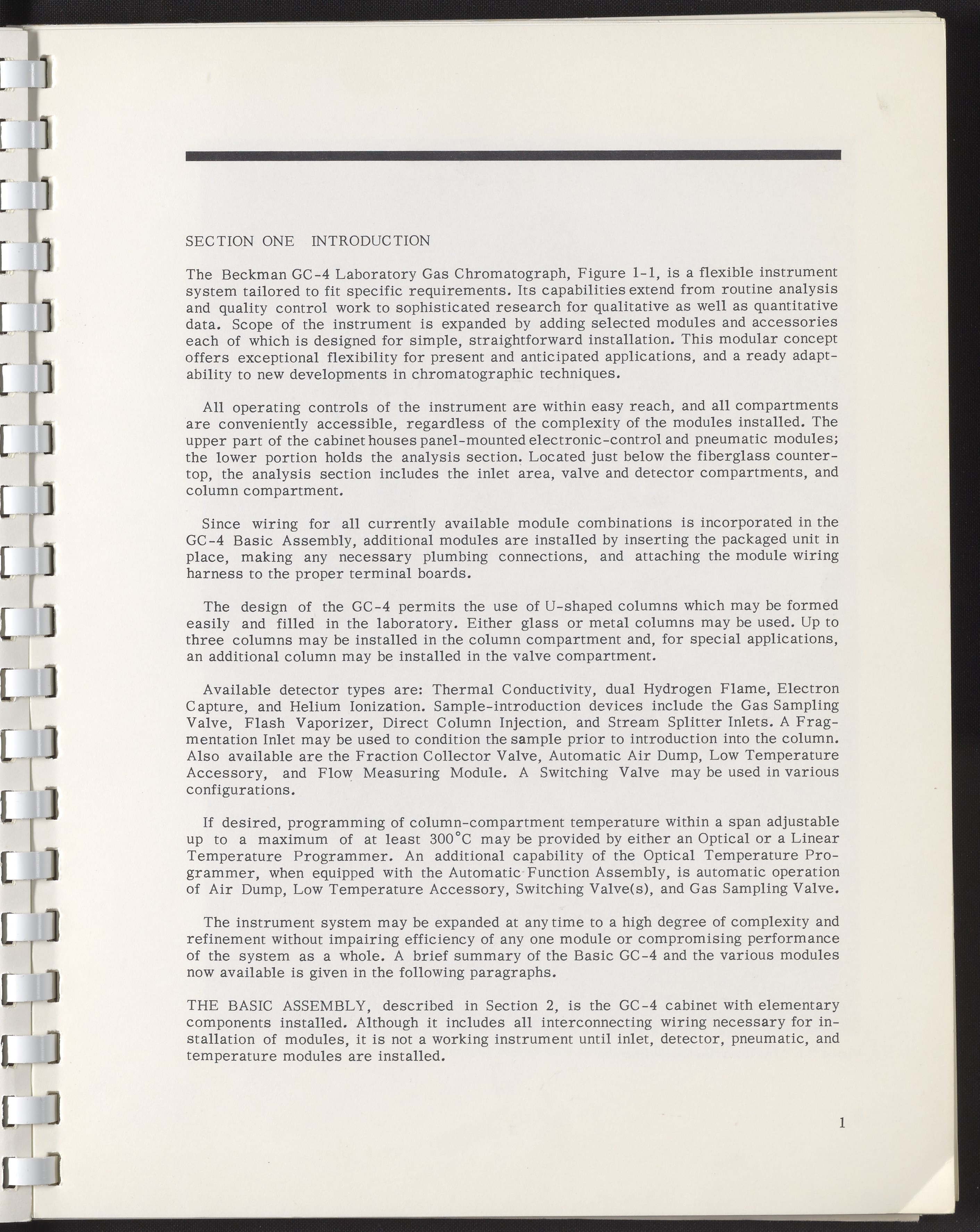Small JPG1200 x 1489px — 208 KBFull-sized JPG2816 x 3494px — 1.2 MBOriginal fileTIFF — 2816 x 3494px — 28.2 MBBeckman Instruments entered the gas chromatograph business in 1956 with the acquisition of the successful Watts Manufacturing Company. Later that year, Beckman Instruments produced its first gas chromatograph, the GC-1, which was intended for laboratory use. Shortly after, Beckman Instruments produced a line of gas chromatographs for industrial use, which offered both automation and customization. These instruments were used by the petroleum industry and in the fight against air pollution.