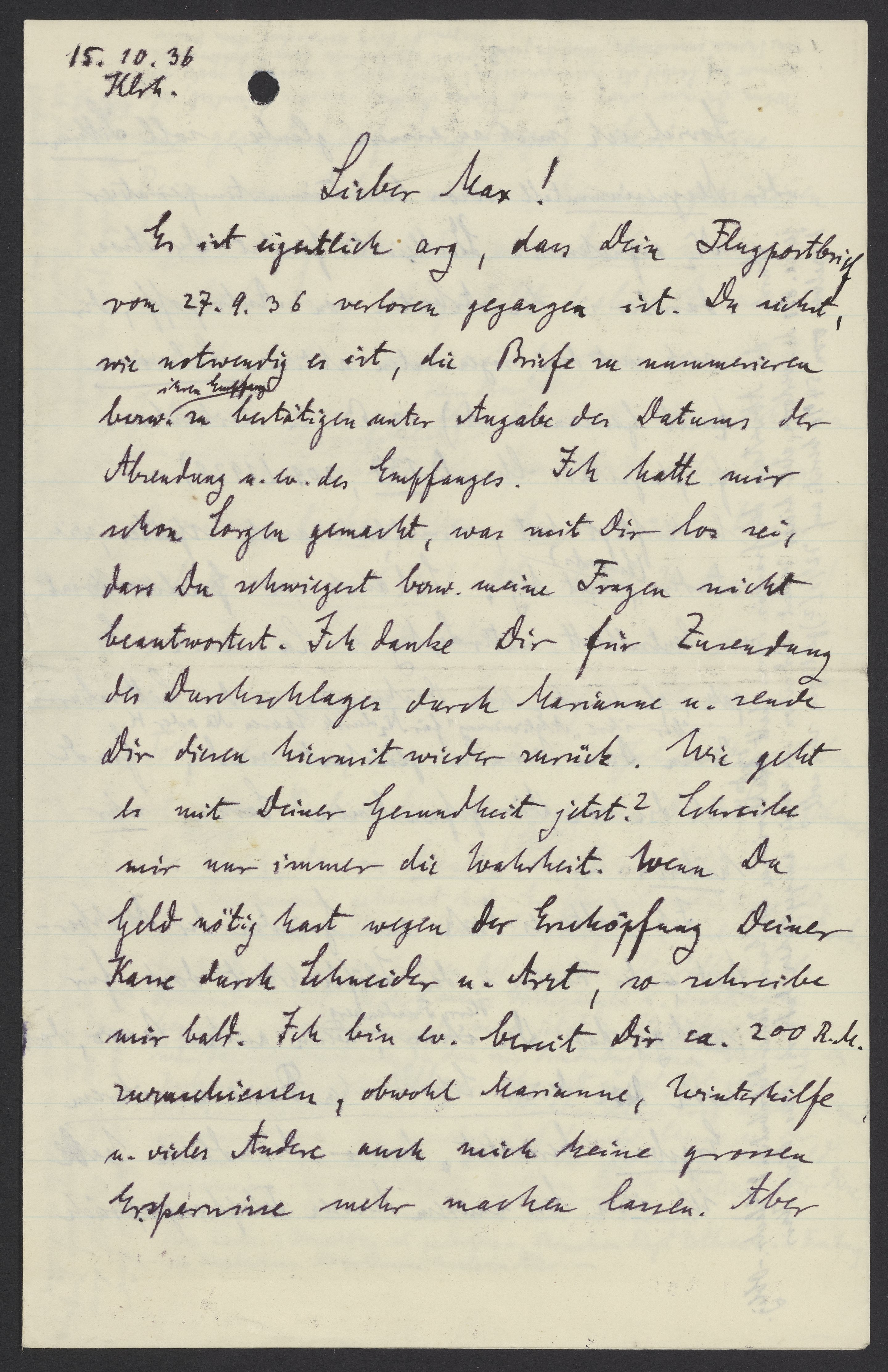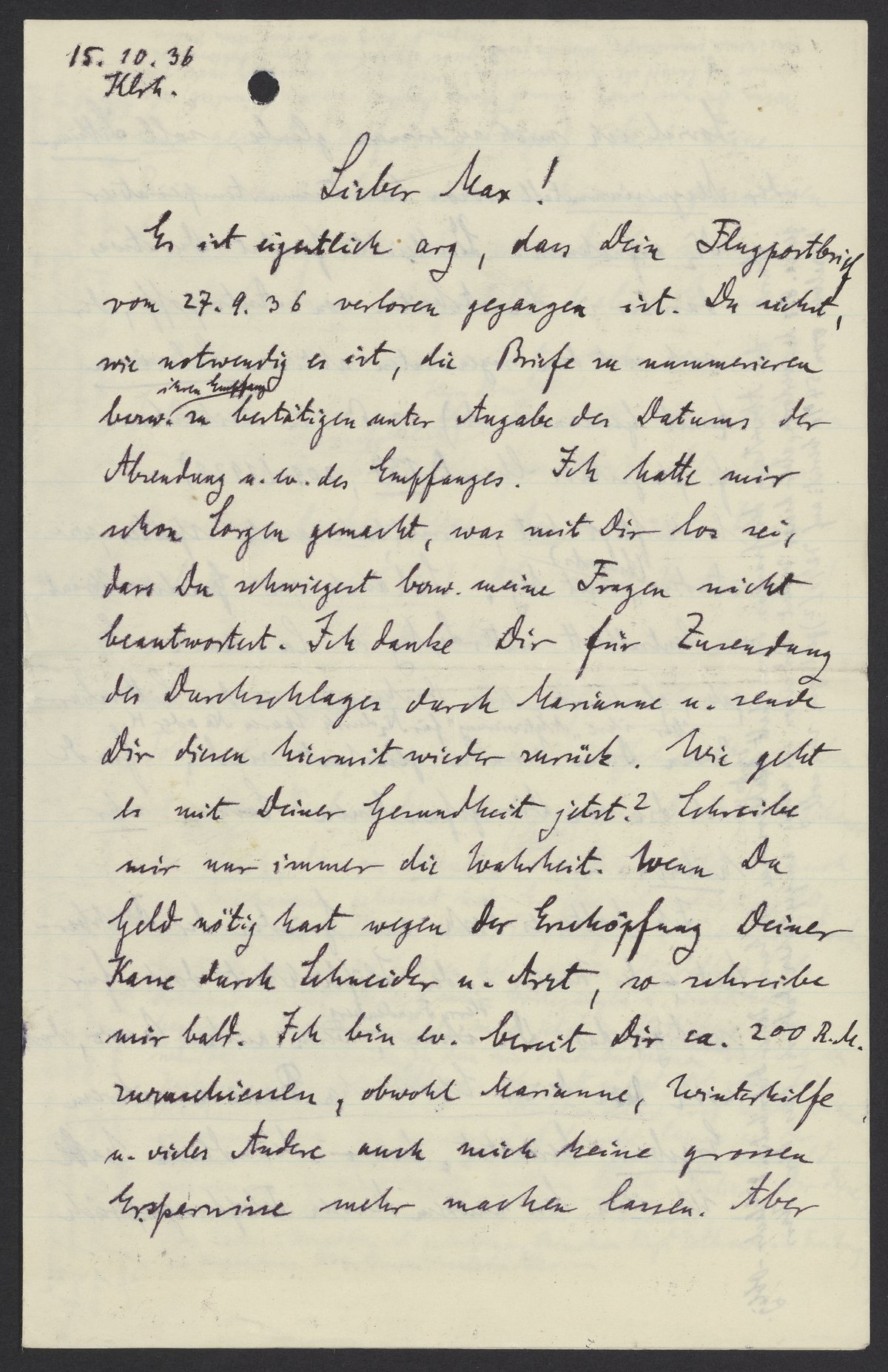 Letter from Georg Bredig to Max Bredig, October 15, 1936