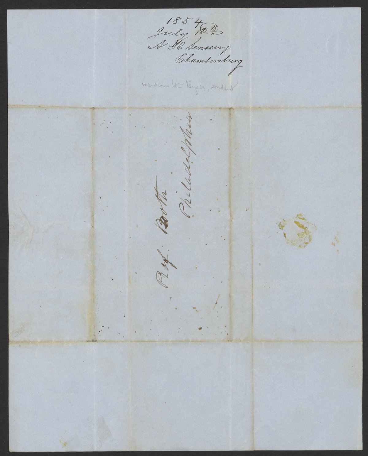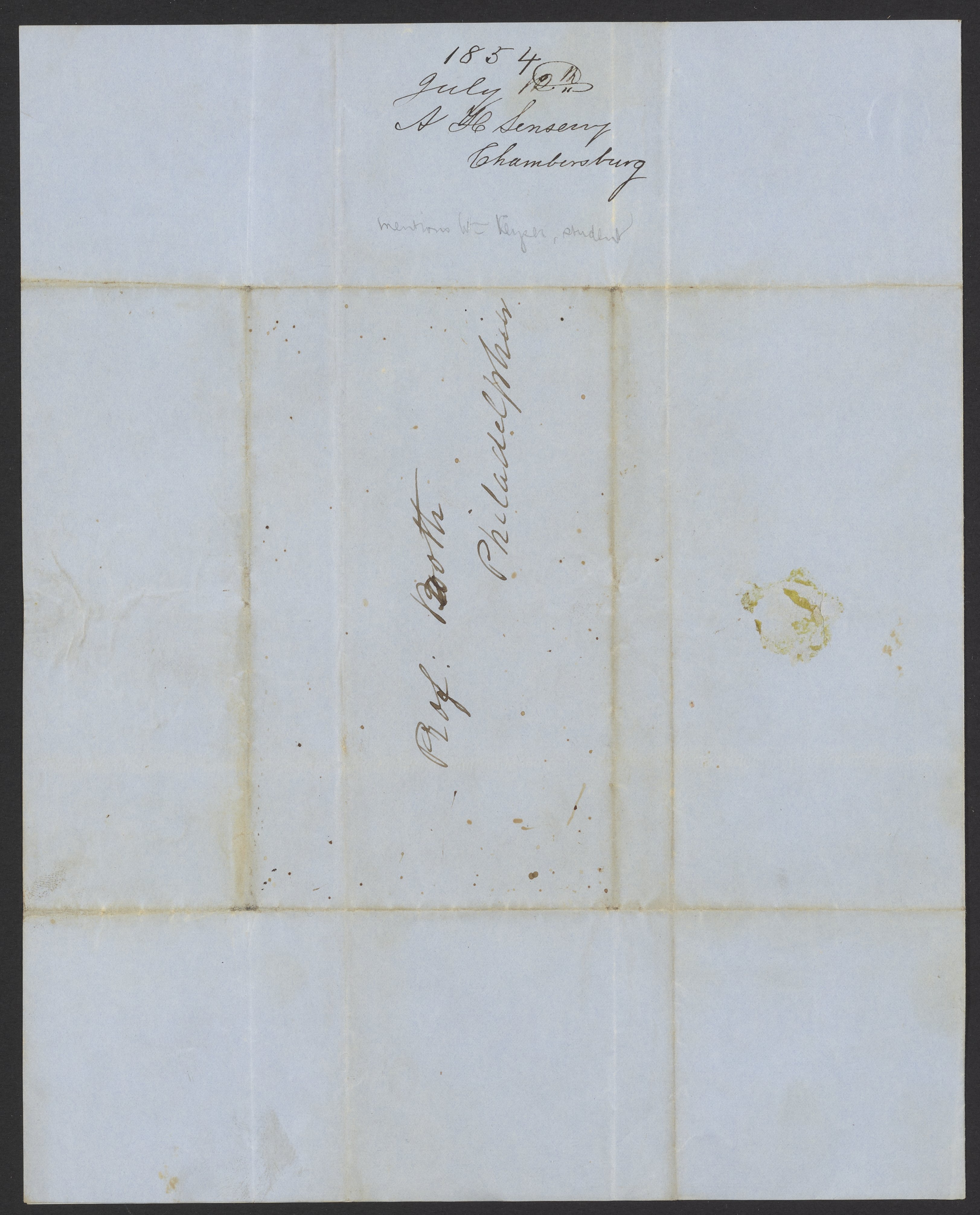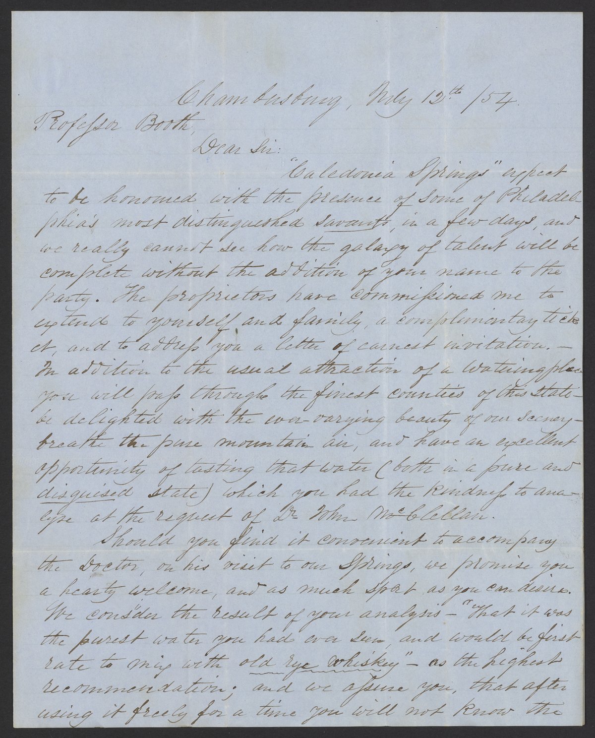 Senserry, A. H. “Letter from A. H. Senserry to James Curtis Booth,” July 12, 1854. Papers of James Curtis Booth, Box 1, Folder 6. Science History Institute. Philadelphia. https://digital.sciencehistory.org/works/8irvxny.