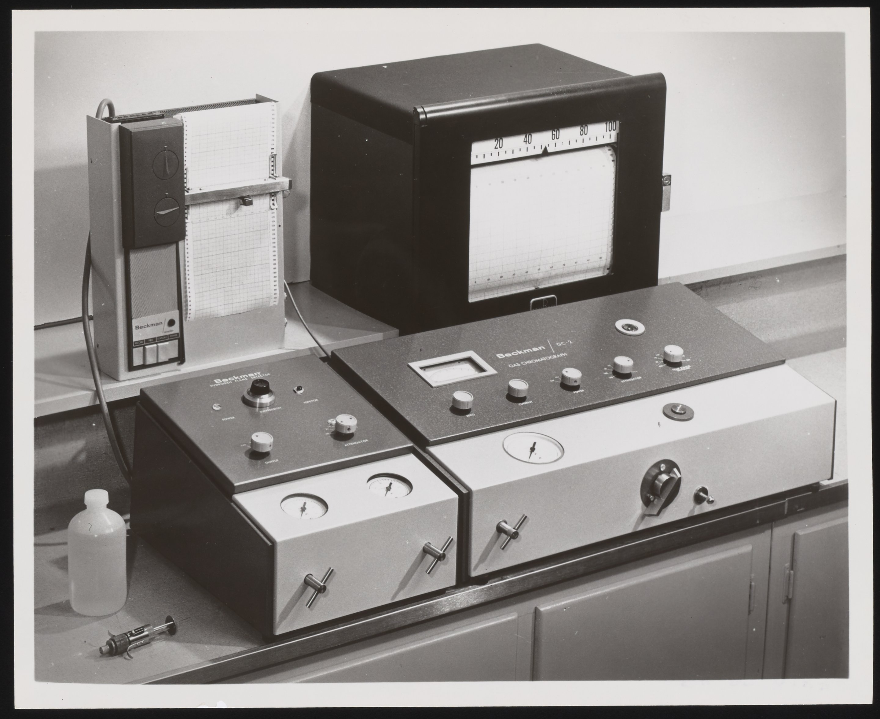 “Beckman Model GC2 Gas Chromatograph,” 1960–1969. Beckman Historical Collection, Box 55, Folder 175. Science History Institute. Philadelphia. https://digital.sciencehistory.org/works/8k71nh17v.