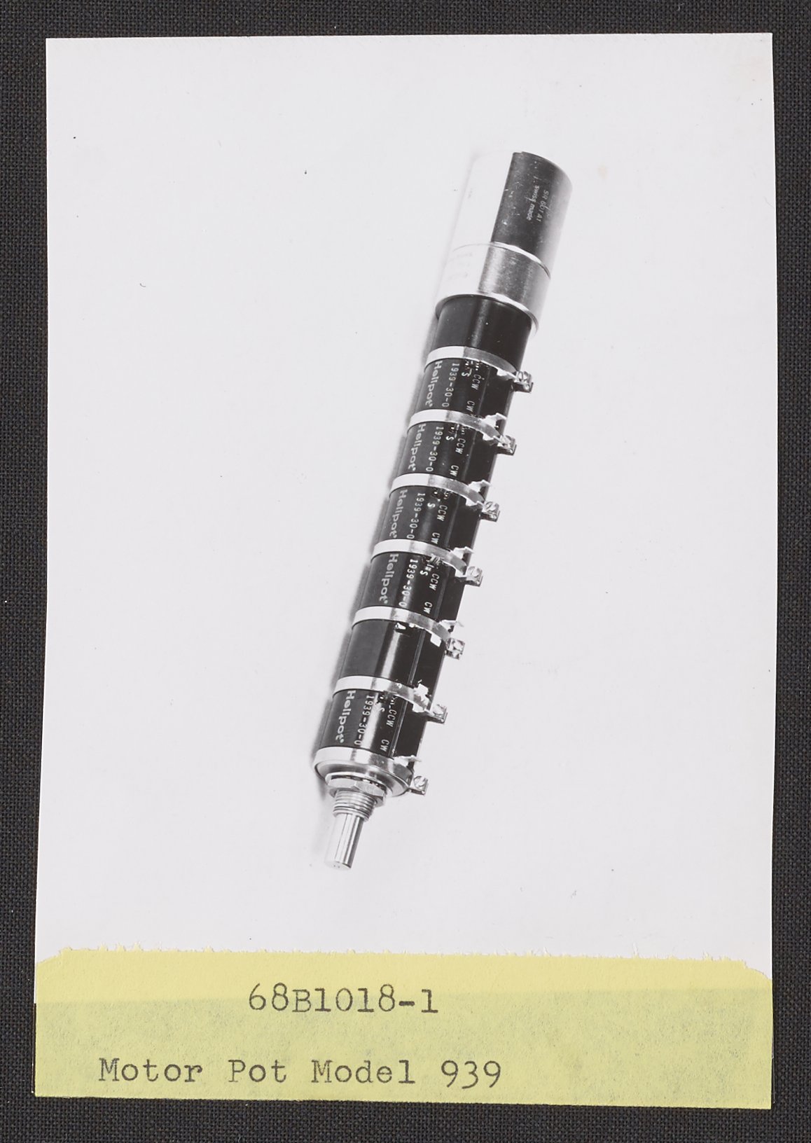 Beckman Instruments Photographic Services Section. “Helipot Motor Potentiometer Model 939,” 1968. Beckman Historical Collection, Box 86. Science History Institute. Philadelphia. https://digital.sciencehistory.org/works/8k71nh63z.