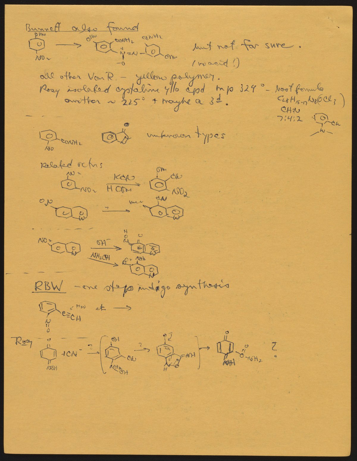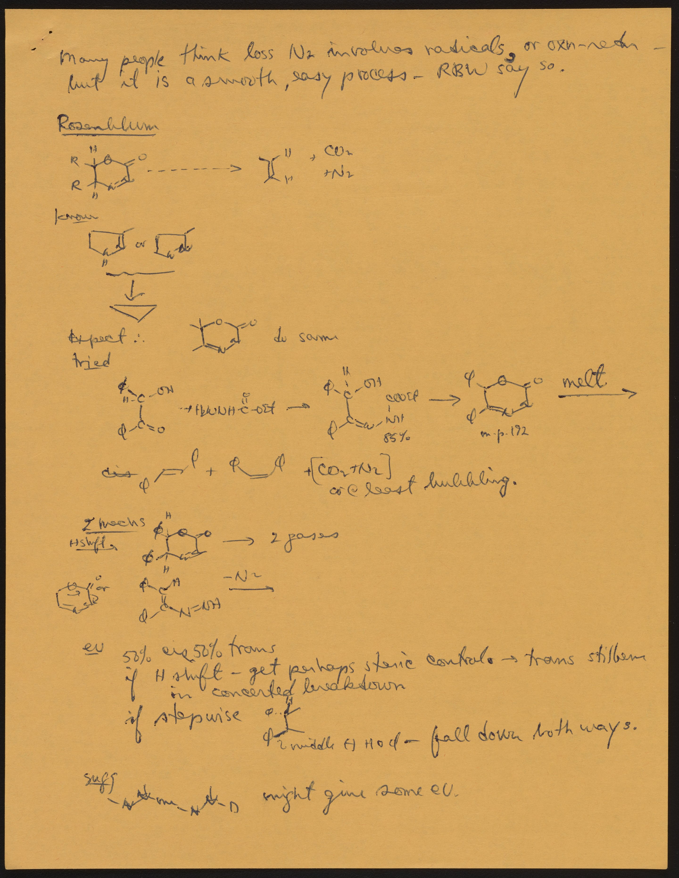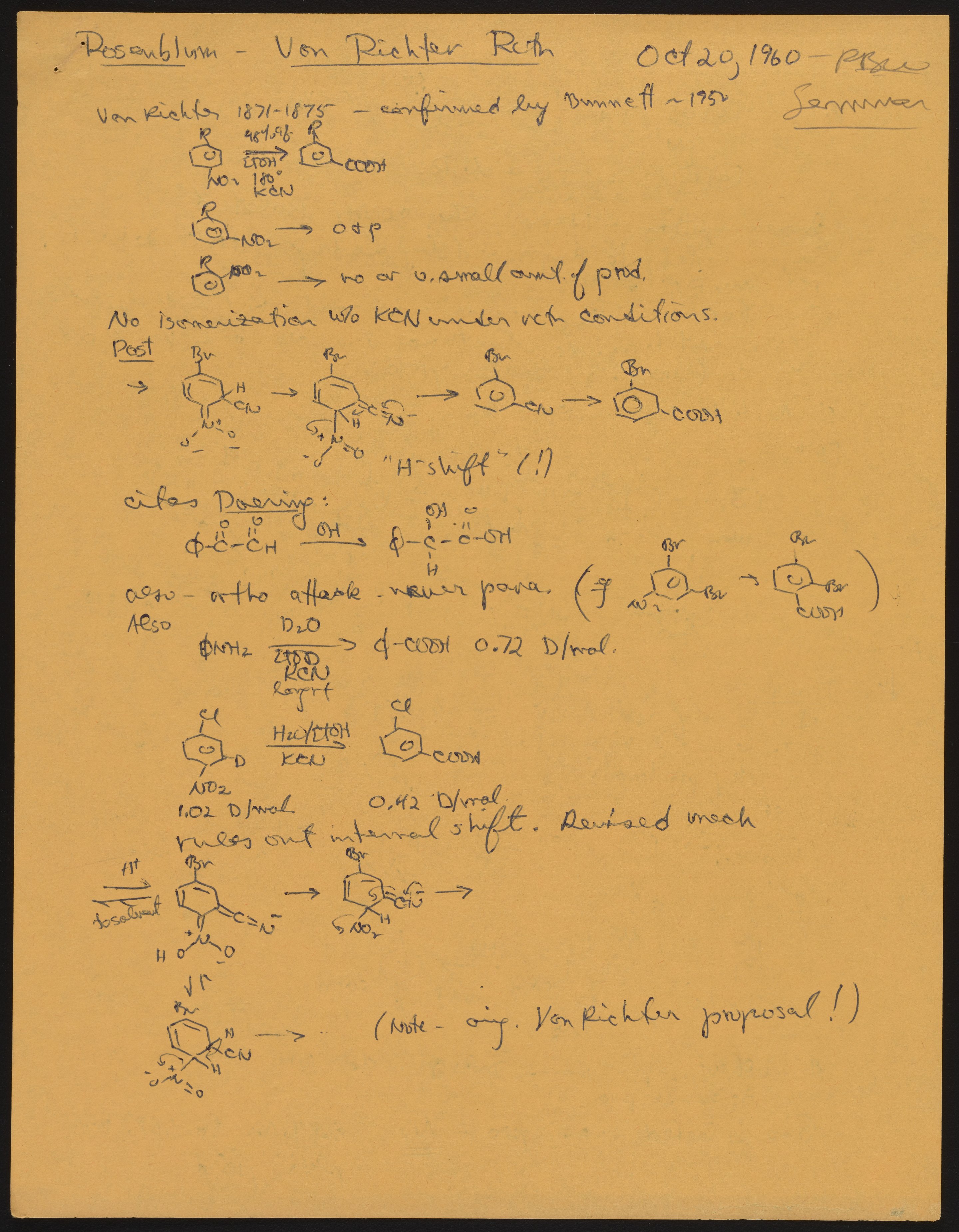 Kohler, Robert E. “R. B. (Robert Burns) Woodward Seminar Entitled ‘Rosenblum - Von Richter [Reaction]".” Notes from R. B. (Robert Burns) Woodward's Seminars, circa 1959–1966. Folder 2. Science History Institute. Philadelphia. https://digital.sciencehistory.org/works/8k71nj325.