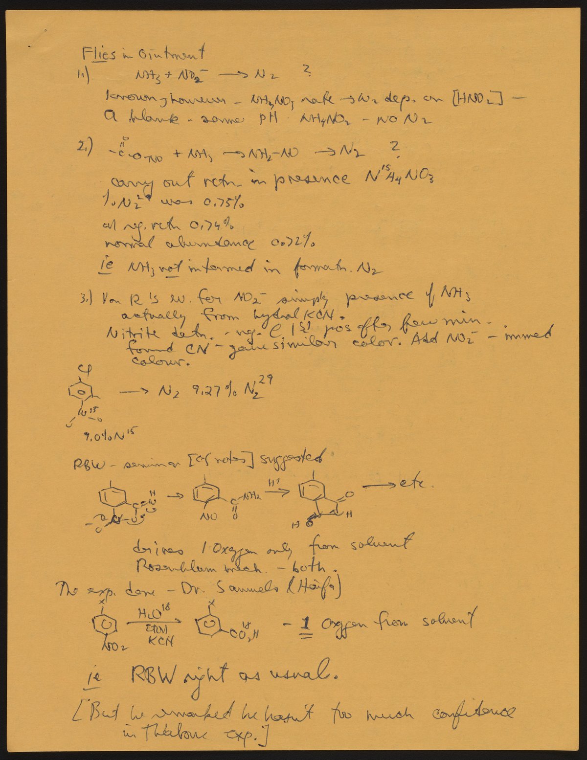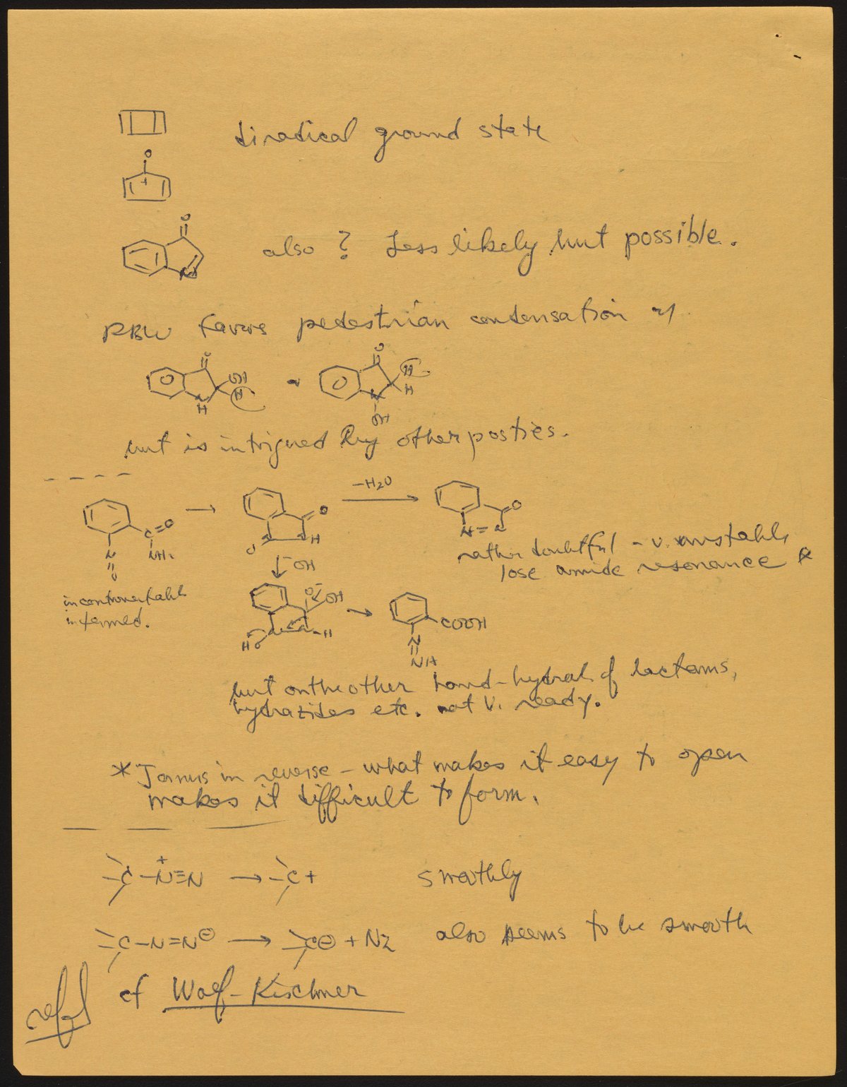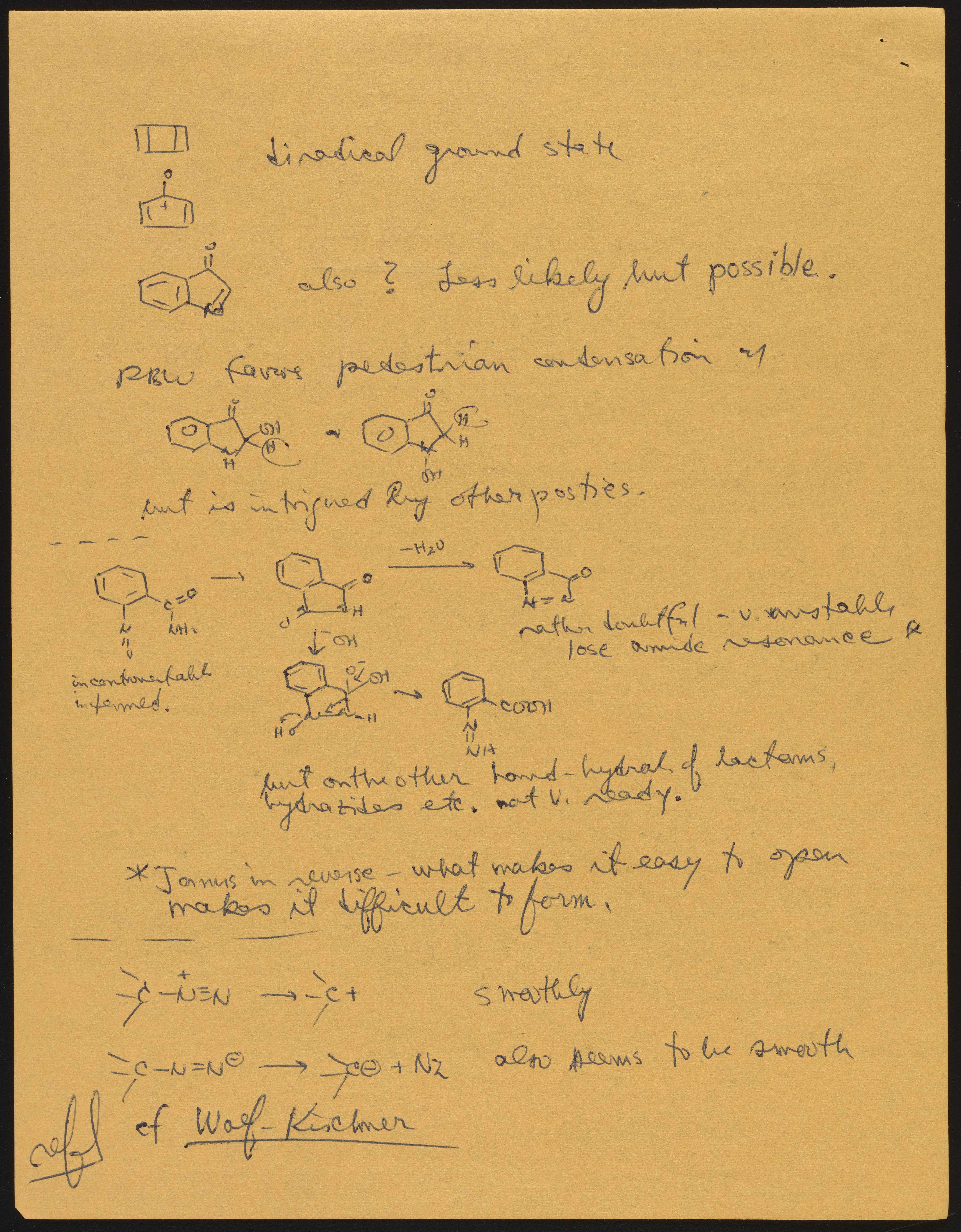 Kohler, Robert E. “R. B. (Robert Burns) Woodward Seminar Entitled ‘Rosenblum - Von Richter [Reaction]".” Notes from R. B. (Robert Burns) Woodward's Seminars, circa 1959–1966. Folder 2. Science History Institute. Philadelphia. https://digital.sciencehistory.org/works/8k71nj325.