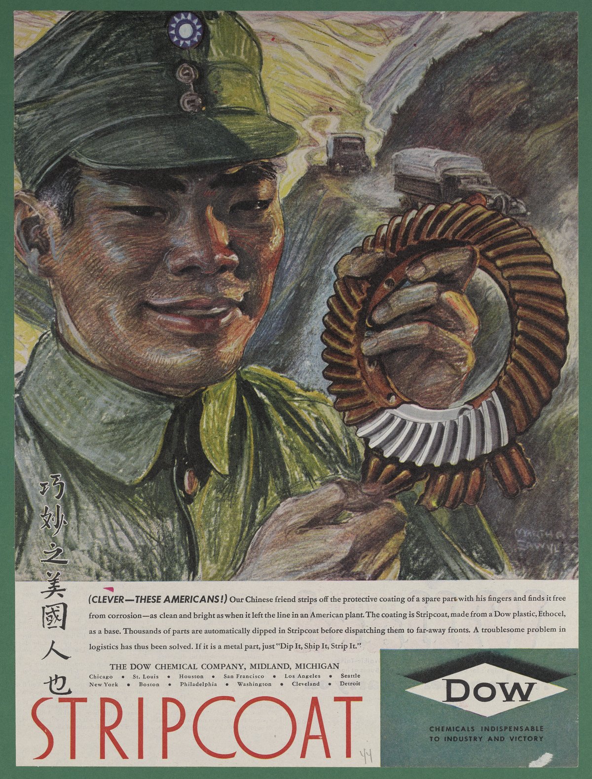 Dow Chemical Company. “Stripcoat,” 1944. Advertisements from the Dow Chemical Historical Collection, Box 3. Science History Institute. Philadelphia. https://digital.sciencehistory.org/works/8lhy3ya.