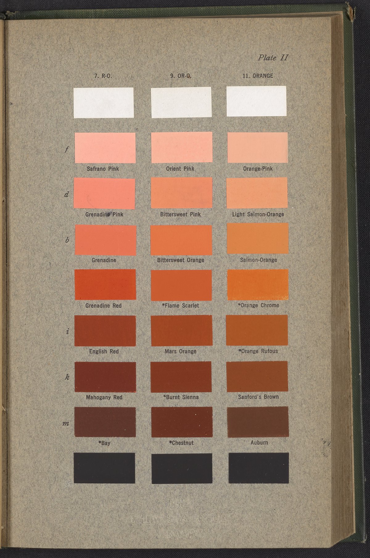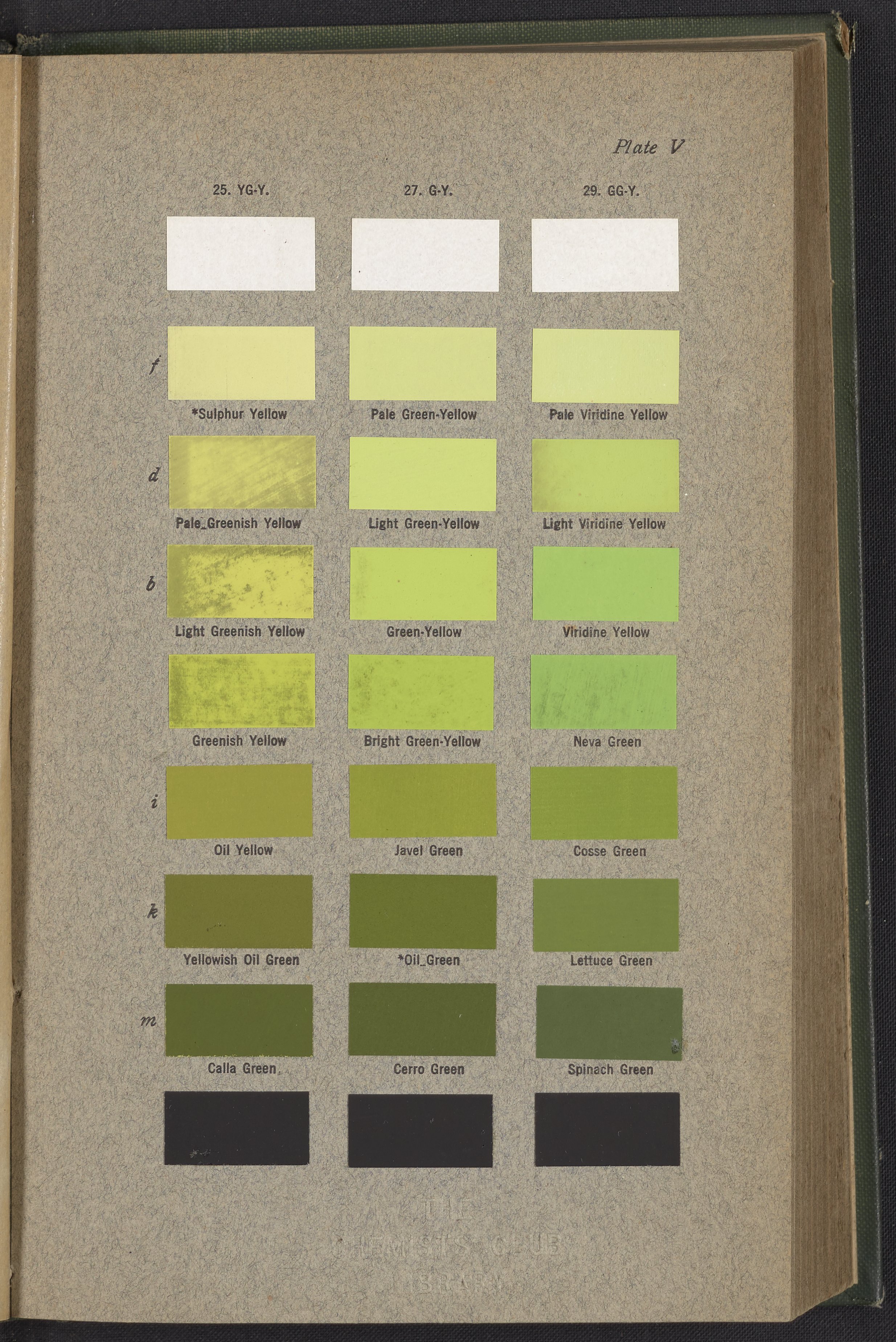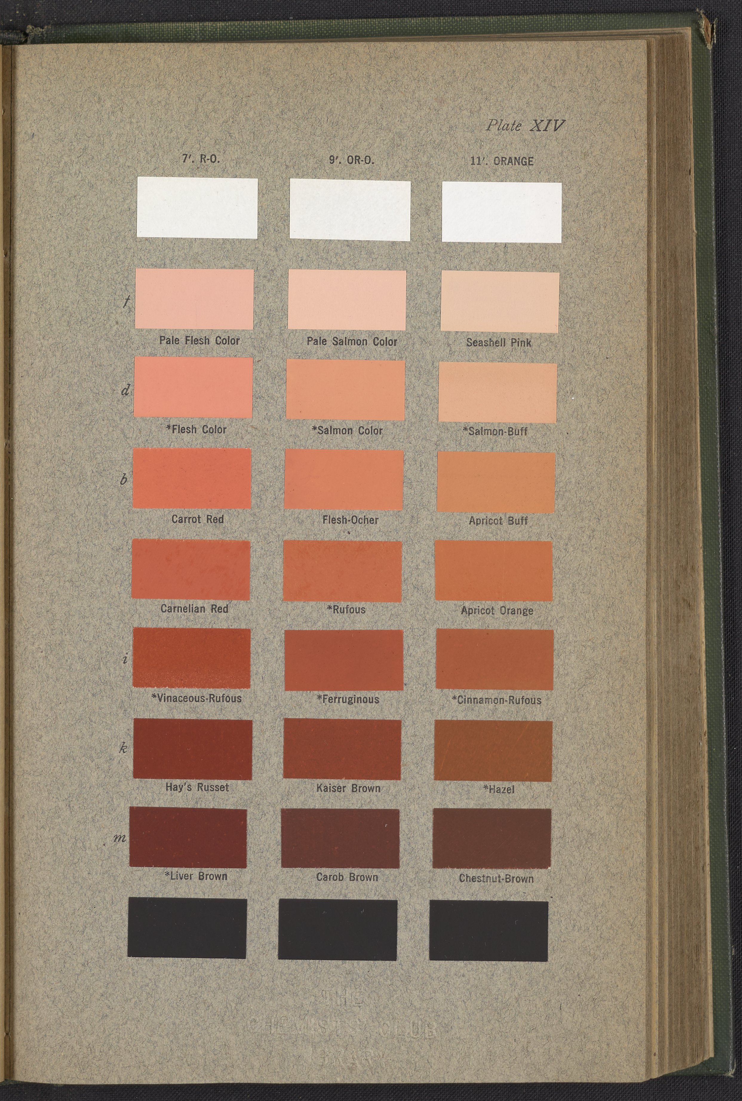 Ridgway, Robert. “Color Standards and Nomenclature.” Washington (D.C.): Robert Ridgway, 1912. QC495 .R53 1912. Science History Institute. Philadelphia. https://digital.sciencehistory.org/works/8mibc4w.
