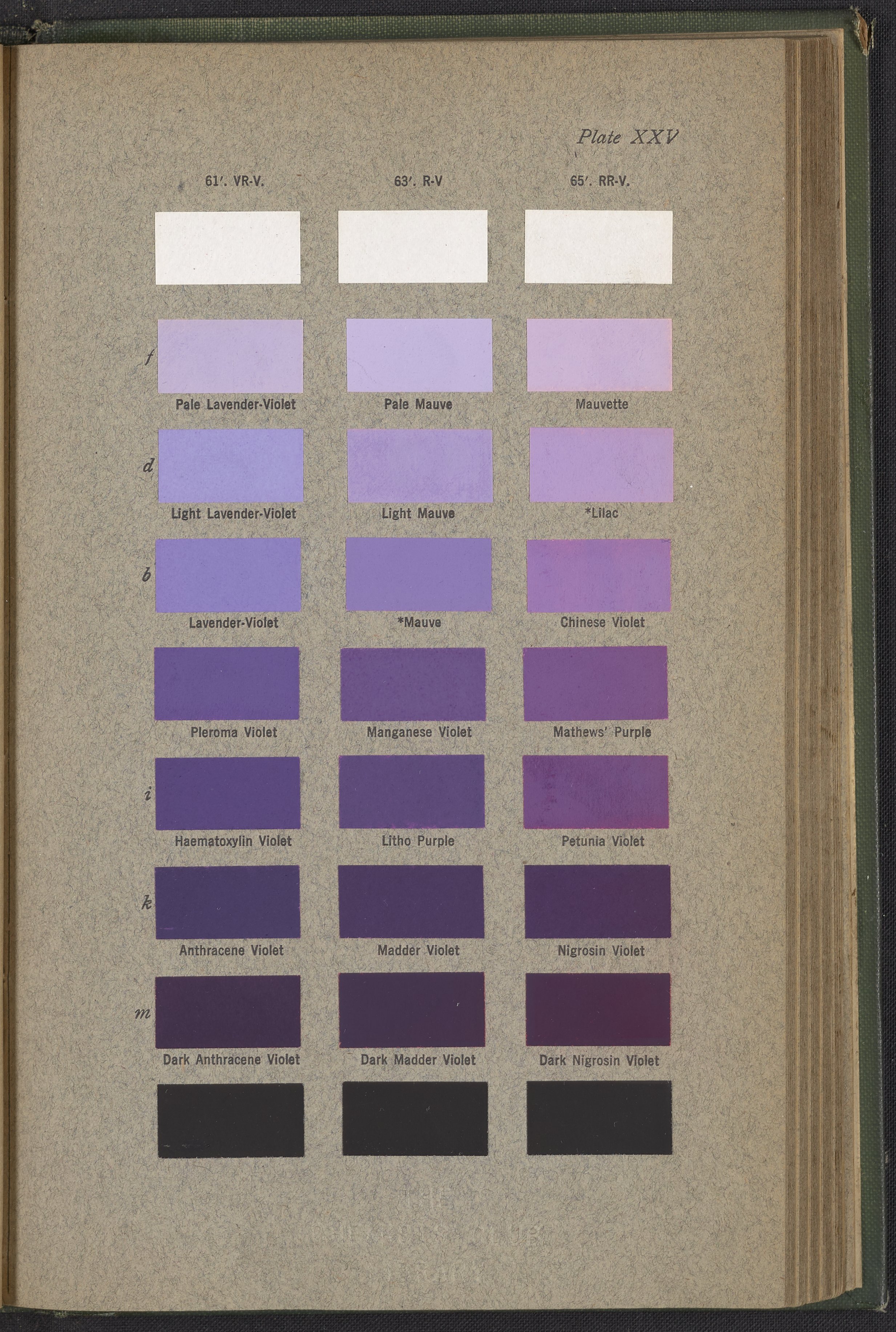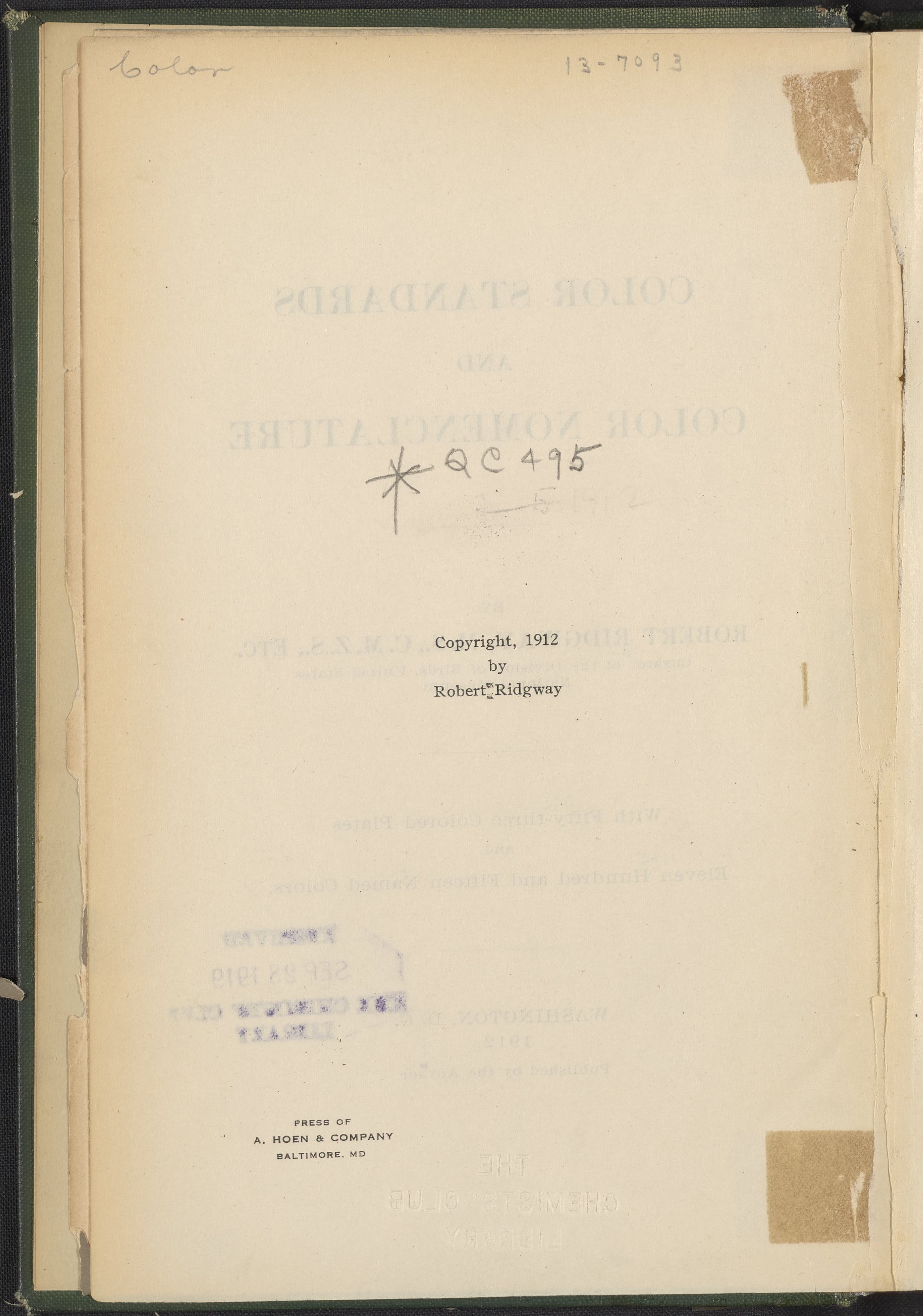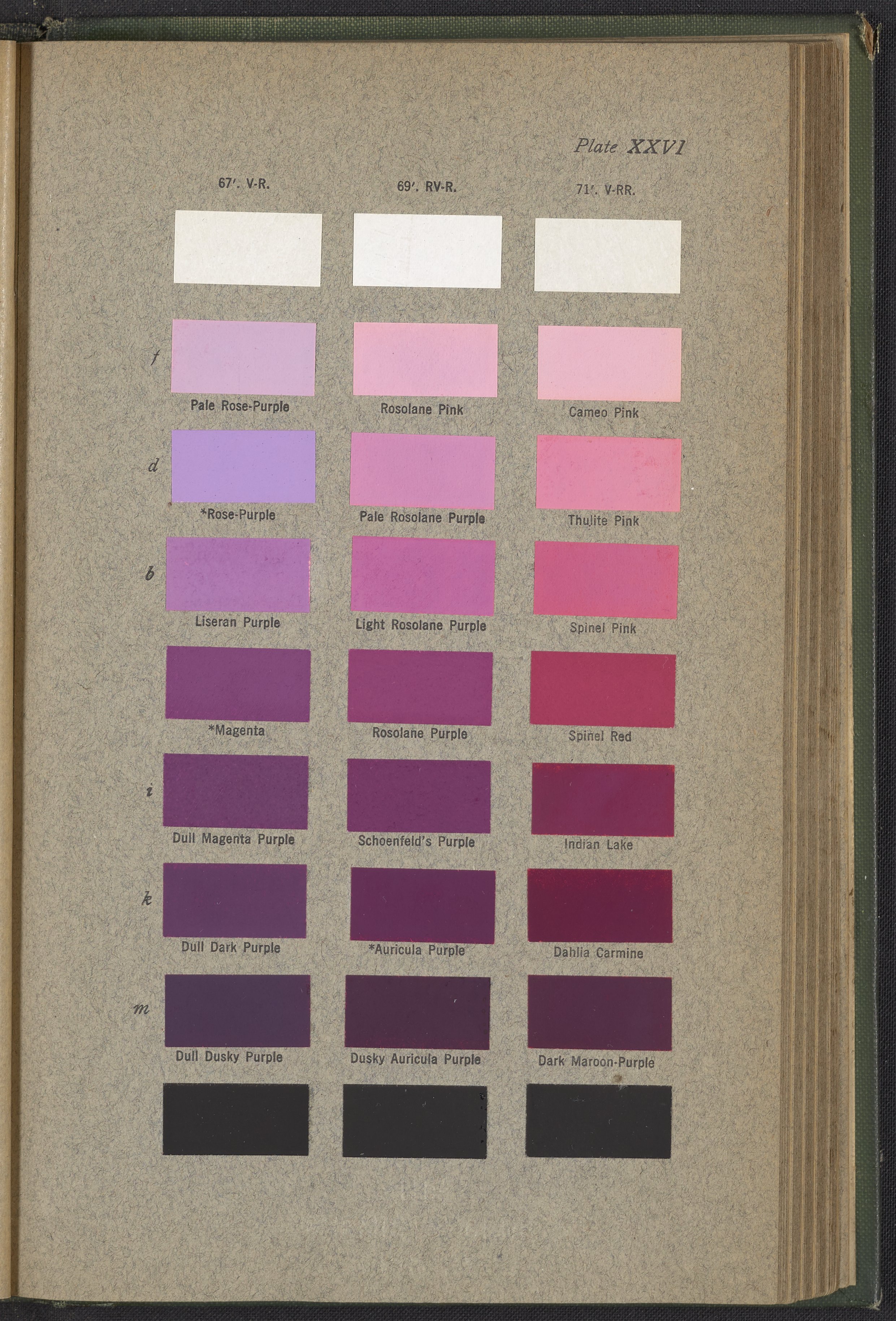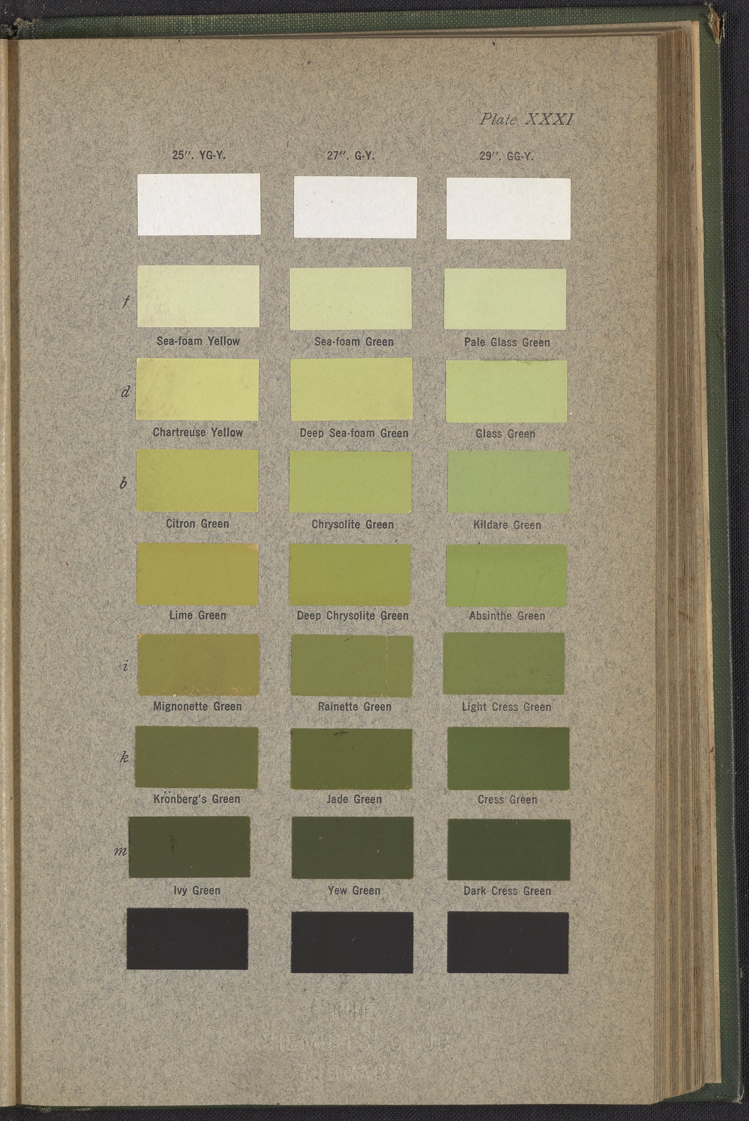 Ridgway, Robert. “Color Standards and Nomenclature.” Washington (D.C.): Robert Ridgway, 1912. QC495 .R53 1912. Science History Institute. Philadelphia. https://digital.sciencehistory.org/works/8mibc4w.
