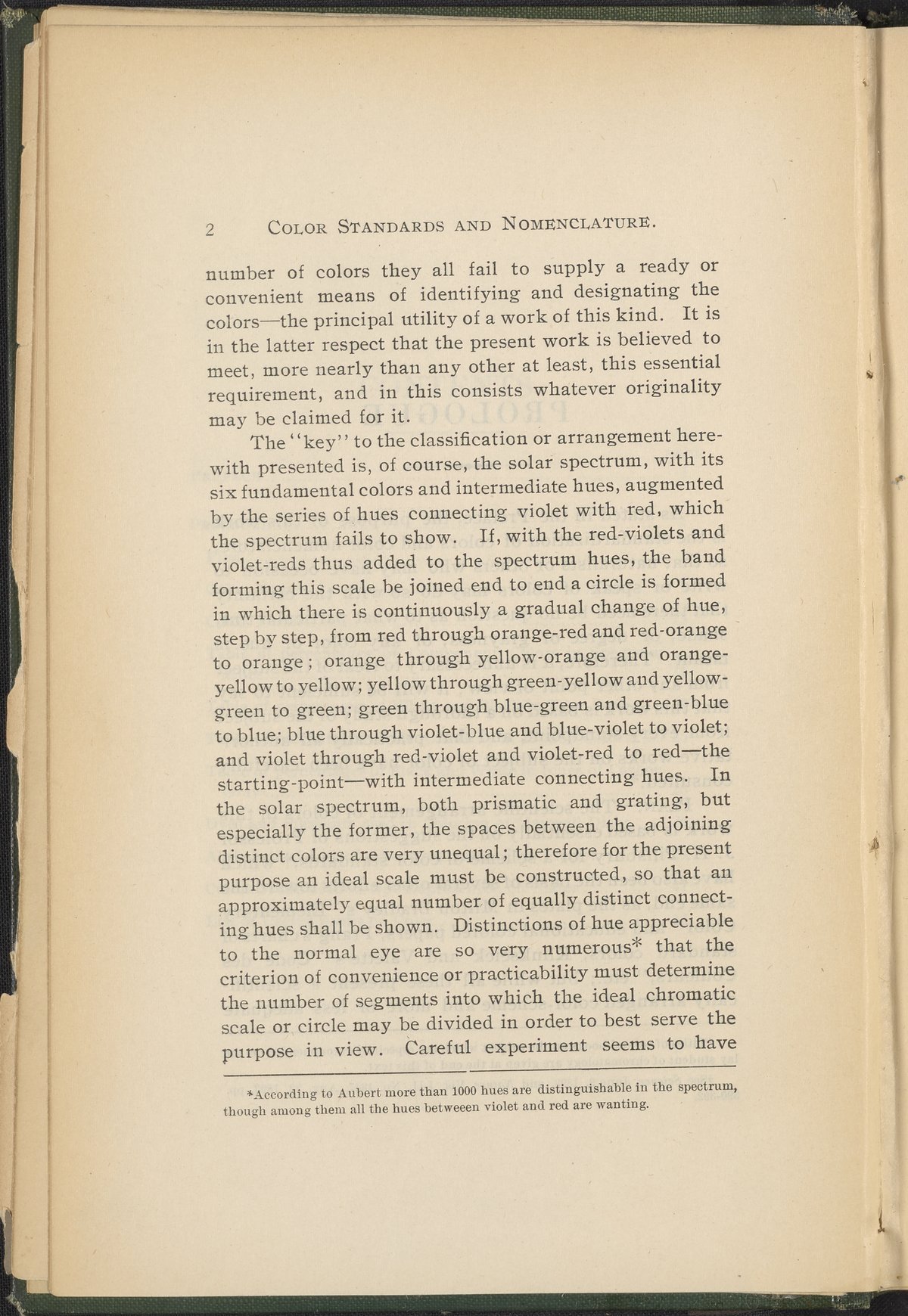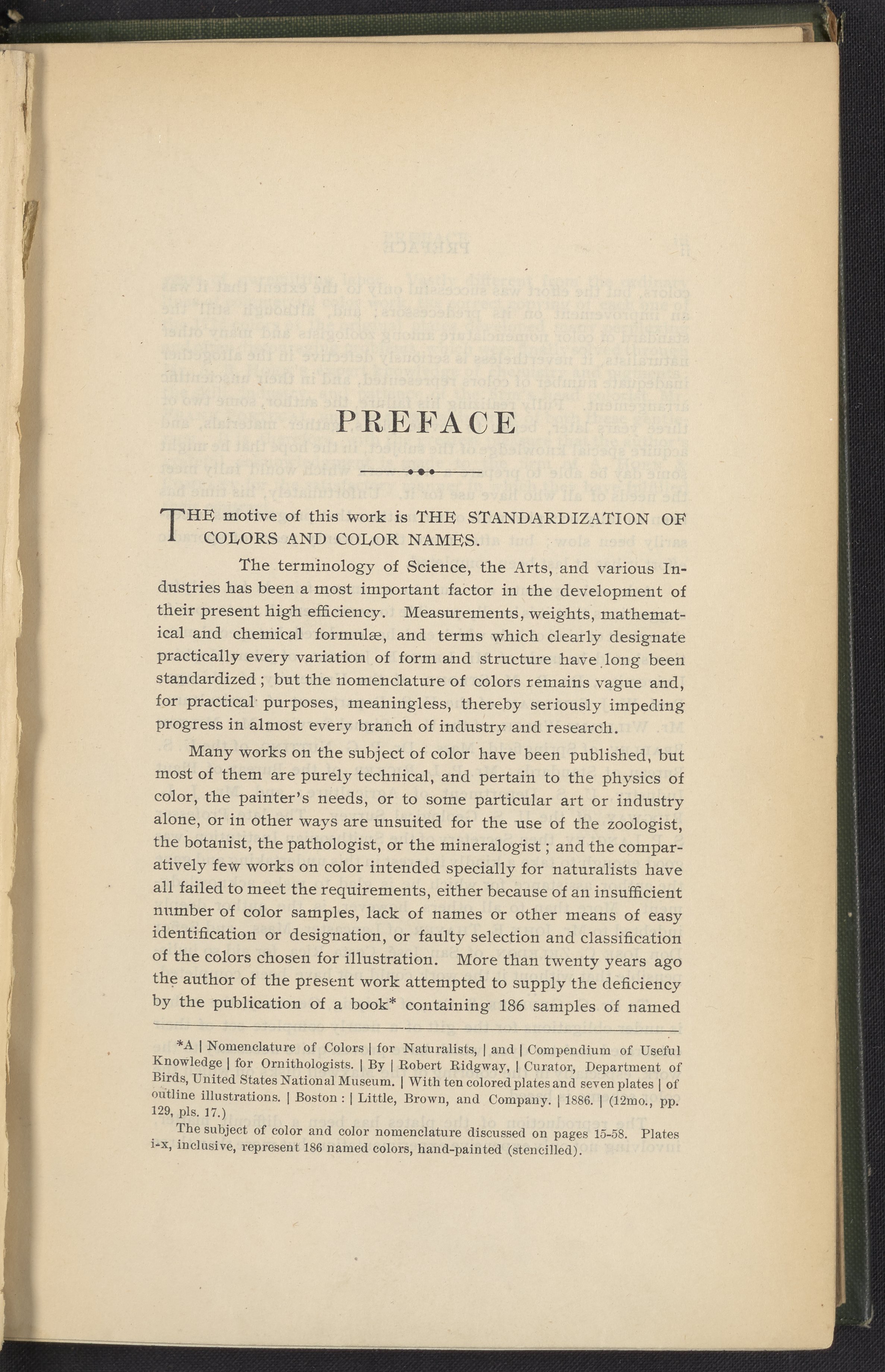 Small JPG1200 x 1746px — 379 KBFull-sized JPG2558 x 3721px — 1.5 MBOriginal fileTIFF — 2558 x 3721px — 27.3 MBVolume written with the intent to apply standardized nomenclature to colors and color names. The work is self-proclaimed as one of the few "modern books on the subject of color" that is not "purely technical... pertaining to the physics of color, the painter's needs, or to some particular art or industry alone..." It is geared towards the naturalist who seeks to classify or illustrate specimens using a standardized understanding of color. The book contains eleven hundred and fifteen color samples, each with a proposed standard name.